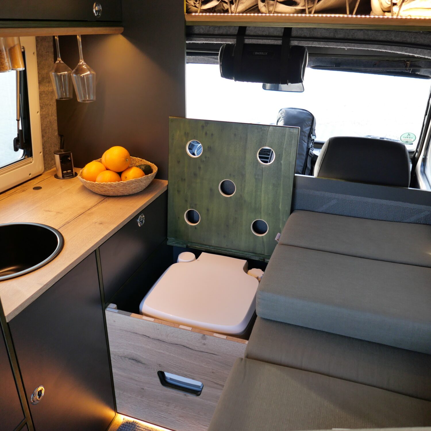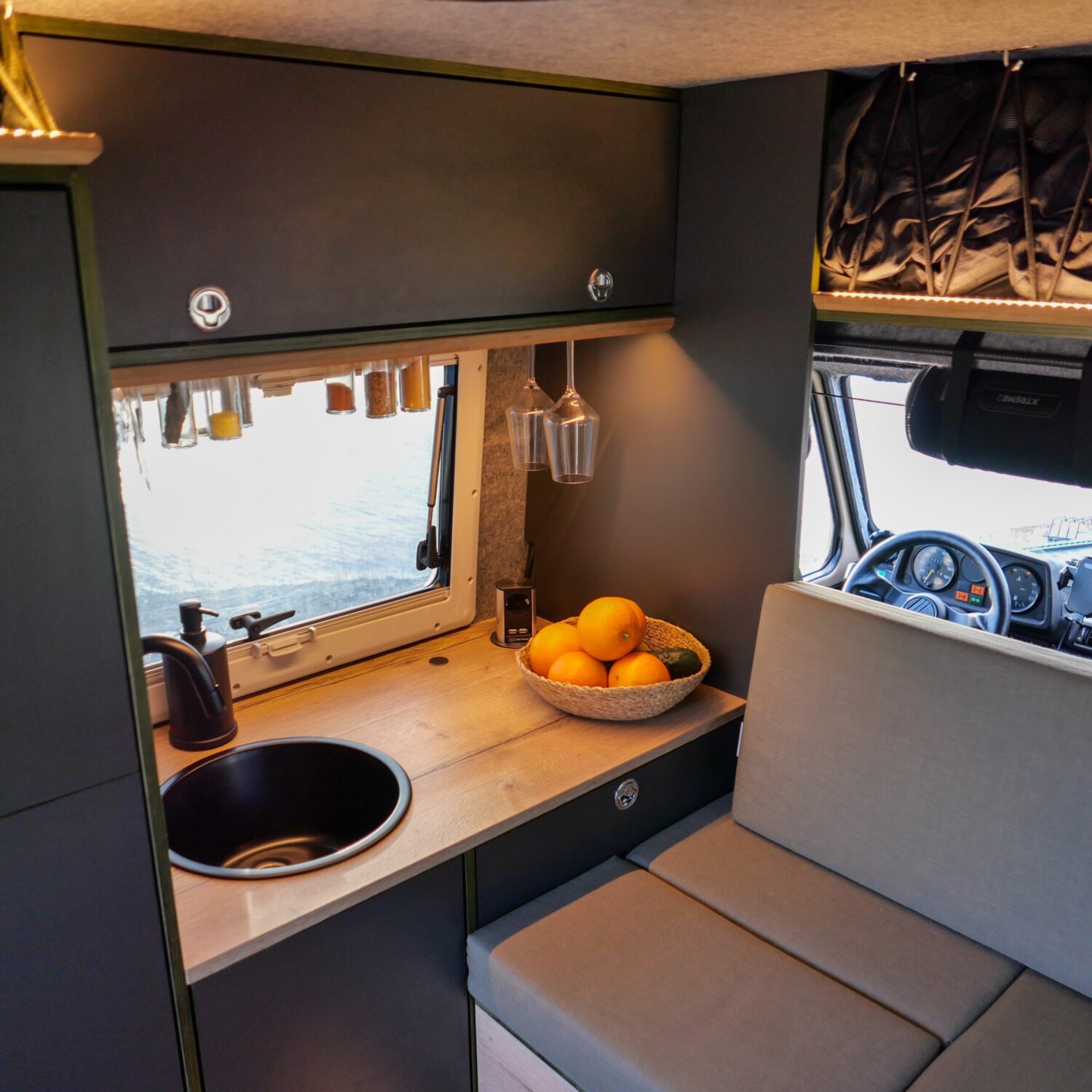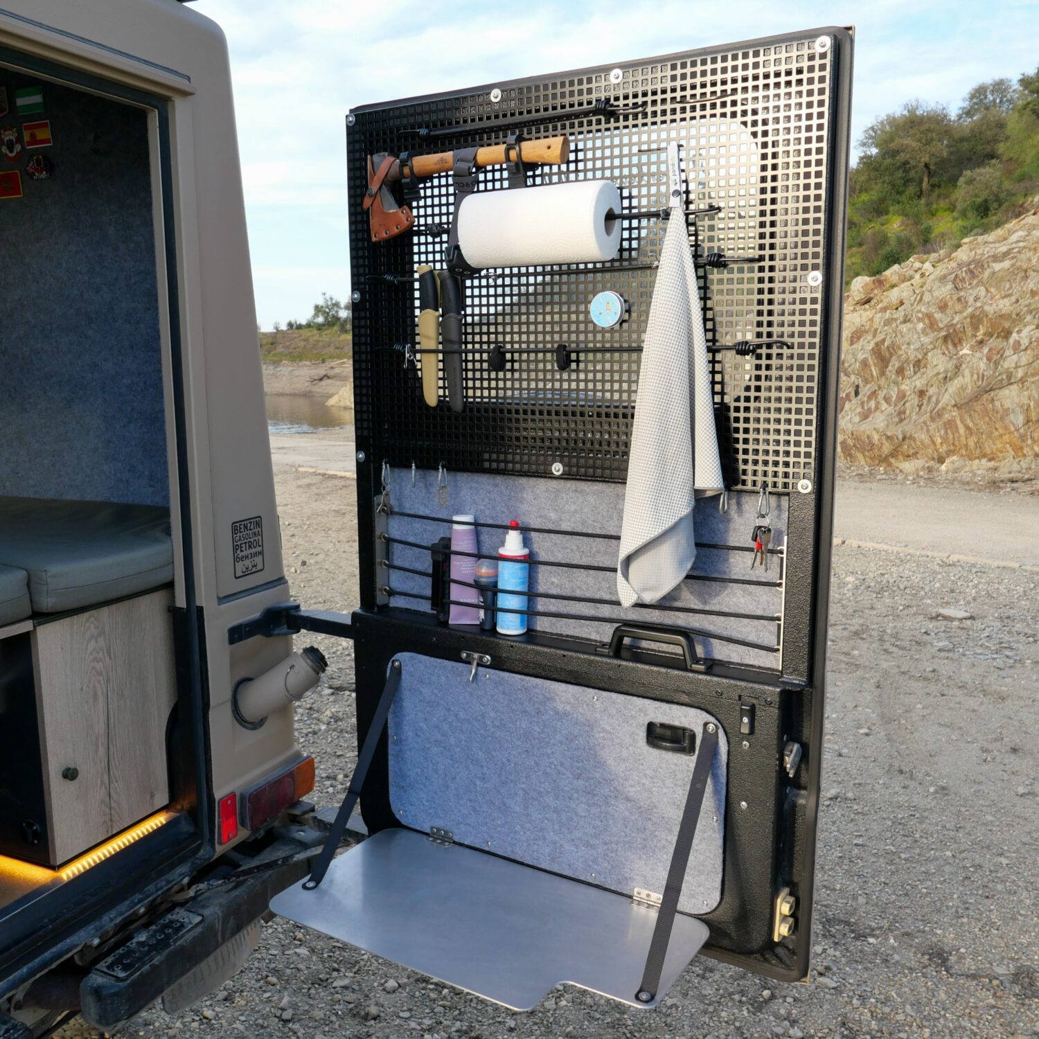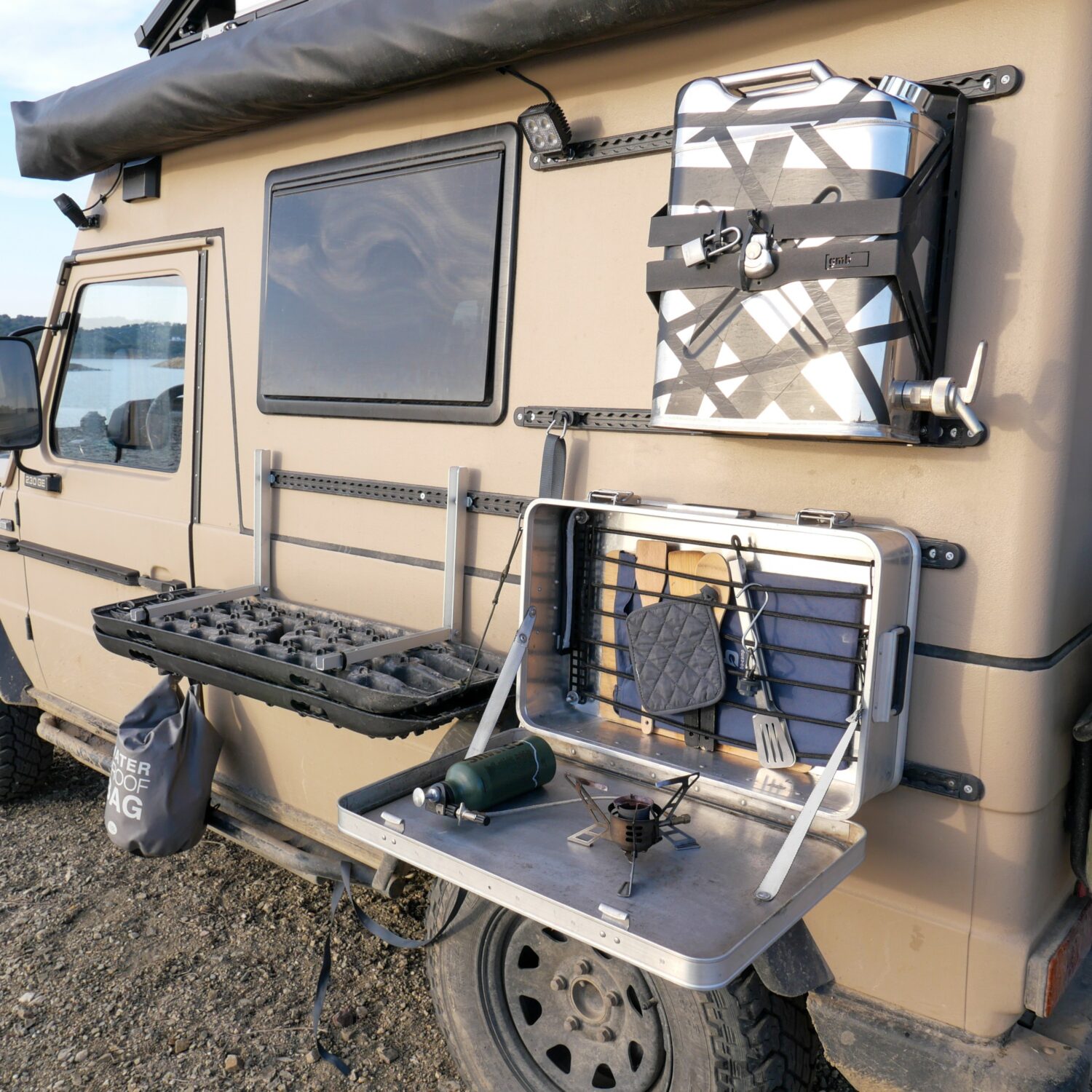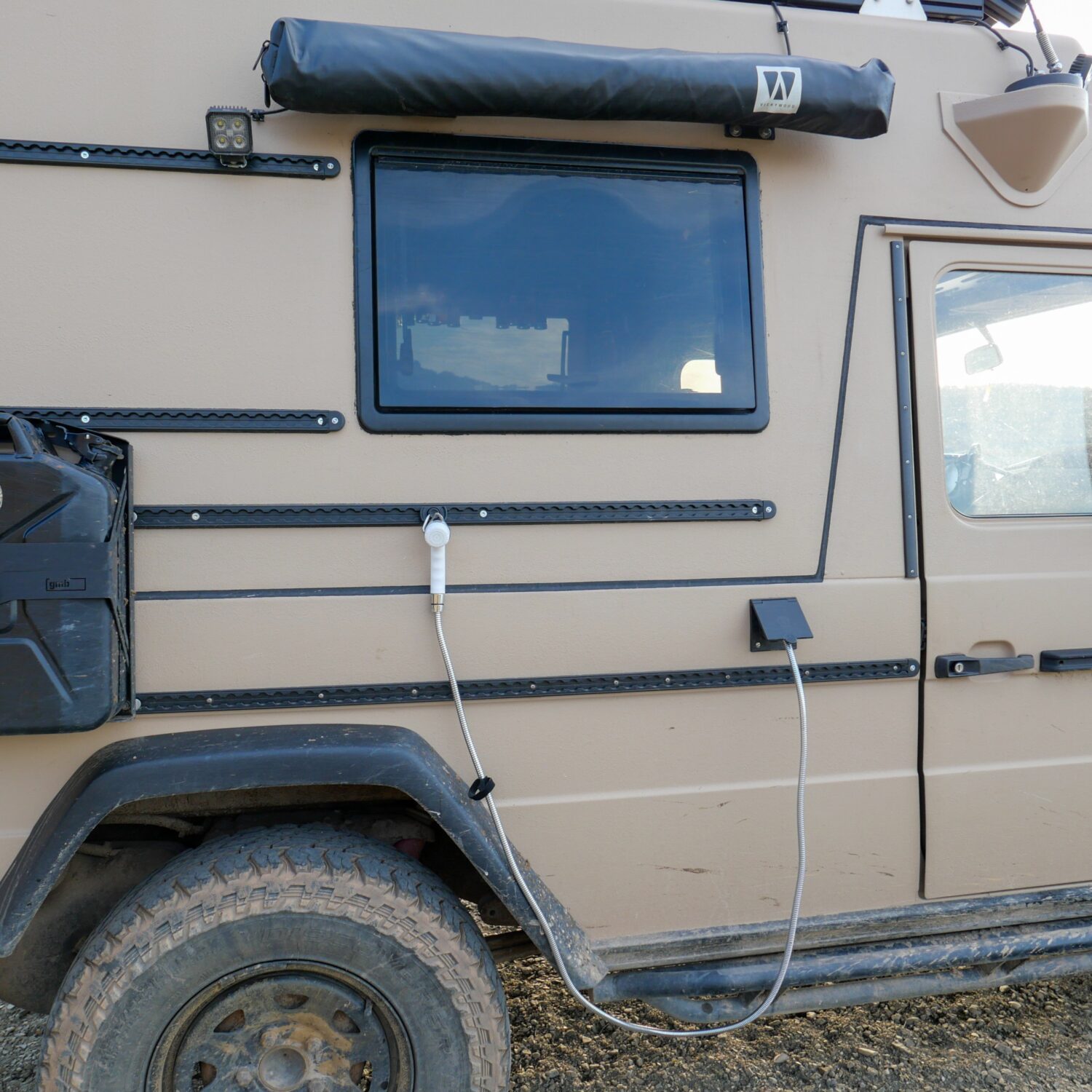 Wir sind Sandra und André, zusammen haben wir in sechs Monaten unseren Puch 230 GE zu einem Abenteuermobil aus- und umgebaut. Unser Puch ist ein ehemaliger Funkwagen des schweizer Militärs. Wir haben ihn so umfangreich umgebaut, dass er nichtmehr als Militärfahrzeug zu erkennen ist. Zusammen mit meinem Onkel habe ich den Innenausbau genau so realisieren können, wie wir uns das vorgestellt und im CAD entworfen haben. Wir haben insgesamt 80 Liter Wasser an Bord und reichlich Stauraum für Lebensmittel, da wir gerne abgelegene Regionen bereisen. Unsre 75ah Lithium Batterie wird durch unsre 190W Solaranlage gespeist.
