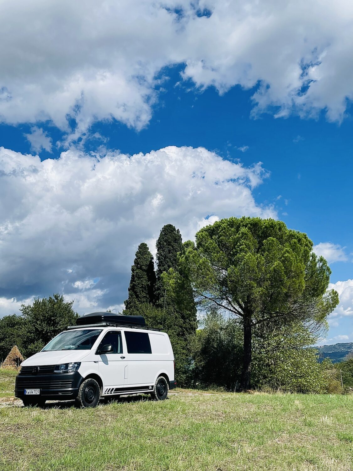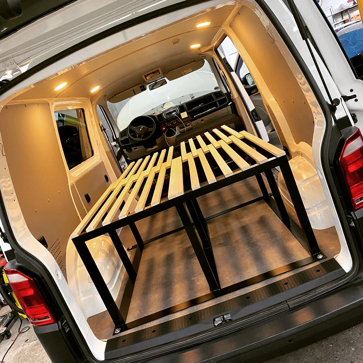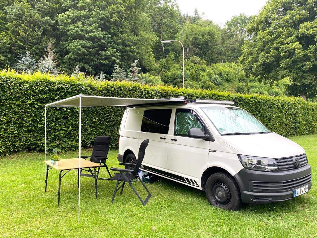 Ehemaliger Budeswehrbus Erst diente erst für viele Transporte vom Sauerland nach Köln. Dann startete der Ausbau. Aluminium-Bettgestell ca 11-13kg Bodenplatte CNC gefräst & PCV beklebt Innenraum gedämmt Fenster Einbau Seiten & Heckscheiben Dachträger inkl Ligthbar & Reserve Kanister AT-Reifen Orginale LED-Scheinwerfer nachgerüstet Einzelsitze vorne / Drehkonsolen L+R Orginal California Klapptisch innen LED Spots innen