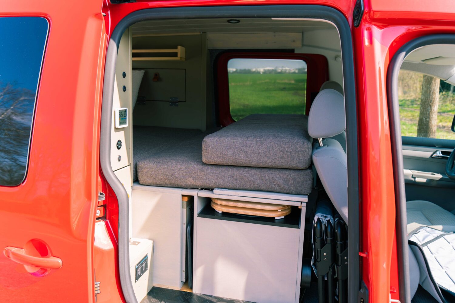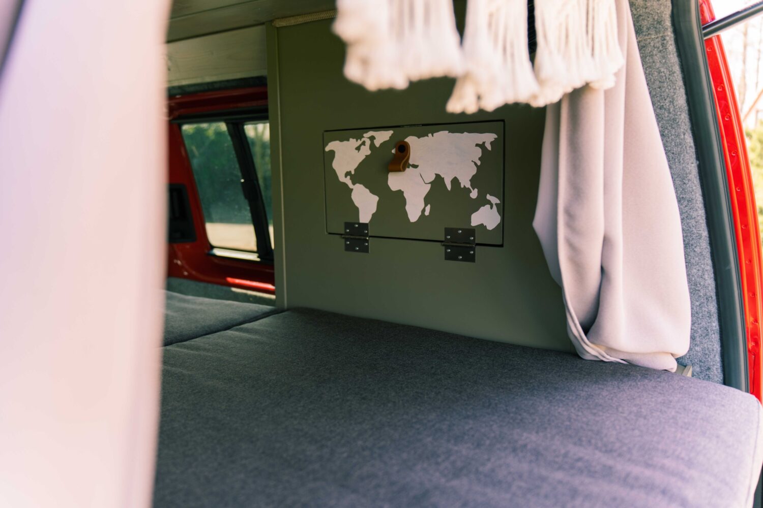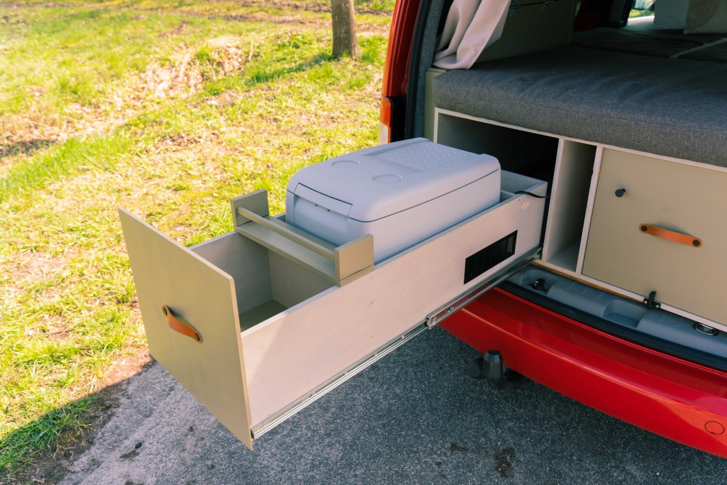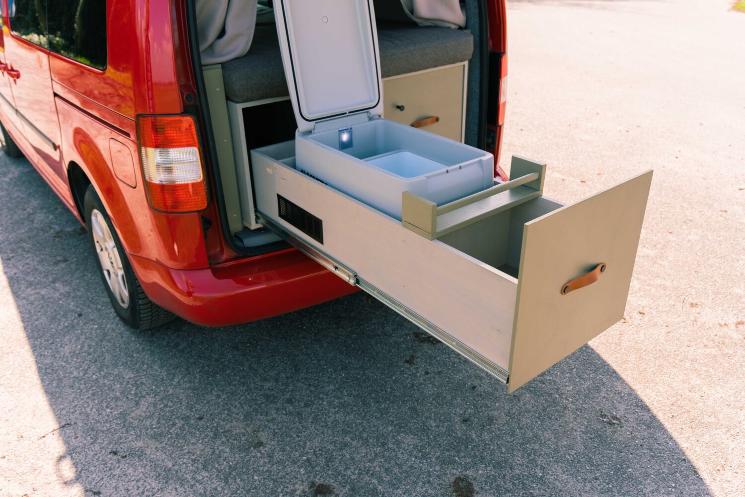 Was hat/kann der Ausbau: -         Bett Konstruktion inkl. Passgenauer Matratze -         Schränke -         Holz Dachhimmel mit 4 Deckenspots -         3 Auszüge -         Tresor / Verschließbare Geheimverstecke -         Trocken- / Trenntoilette o  Trobolo Trenneinsatz o  Behälter von Kildwick -         Strom: 12v& 230v -         Fließend Wasser -         Küchenauszug: o  Ordentlich Platz um für Geschirr / Töpfe etc. o  Kleine Schublade für Besteck o  Platz für einen Campingkocher o  Komplettes Wasser Setup, mit Spüle, Frisch- & Abwassertank -         Kühl- /Aufbewahrungsauszug: o  Dometic CoolFreeze CDF 36 Kompressor-Kühlbox 31l o  Stauraum für alles Was man zum Kochen braucht o  Gewürzregal -         Auszug zur Fahrerseite: o  Dieser Auszug ist perfekt für Eurokisten optimiert -         Dachträger: o  100W Solar Panel o  Dachträger aus Aluprofilen o  Perfekt zum Befestigen von extra Kisten, Stand up Paddleboard, Surfbrett und was das Abenteuerherz noch so wünscht. o  Markise von Ocean Cross 140 x 200cm o  Flaschenöffner :) -         Elektrik: o  Laden über Solar / Solarladeregler o  12v Sicherungskasten o  Spannungsüberwachung und Abschalten aller Verbraucher per Smartphone App o  500 W Ective Wechselrichter 12v auf 230v o  Diverse 12v Steckdosen (USB) o  Lichtschalter o  Lampen in der Decke & in der Heckklappe für Beleuchtung beim kochen o  230v Steckdose -         Gimmicks: o  Heckklappenöffnung von innen o  Gardinen Hinten o  Verschließbares Fach hinter dem Fahrersitz o  Verschließbarer „Tresor- unterm Beifahrersitz o  Ventilator für die heißen Tage -         Außerdem mit dabei: o  Project Camper Magnet Thermomatten (Schwarz/Grau) für Vorne und die Seiten  Es gibt garantiert noch so viele Dinge die wir jetzt hier nicht aufgeführt haben, am besten macht man sich mal einen persönlichen Eindruck vom Auto.
