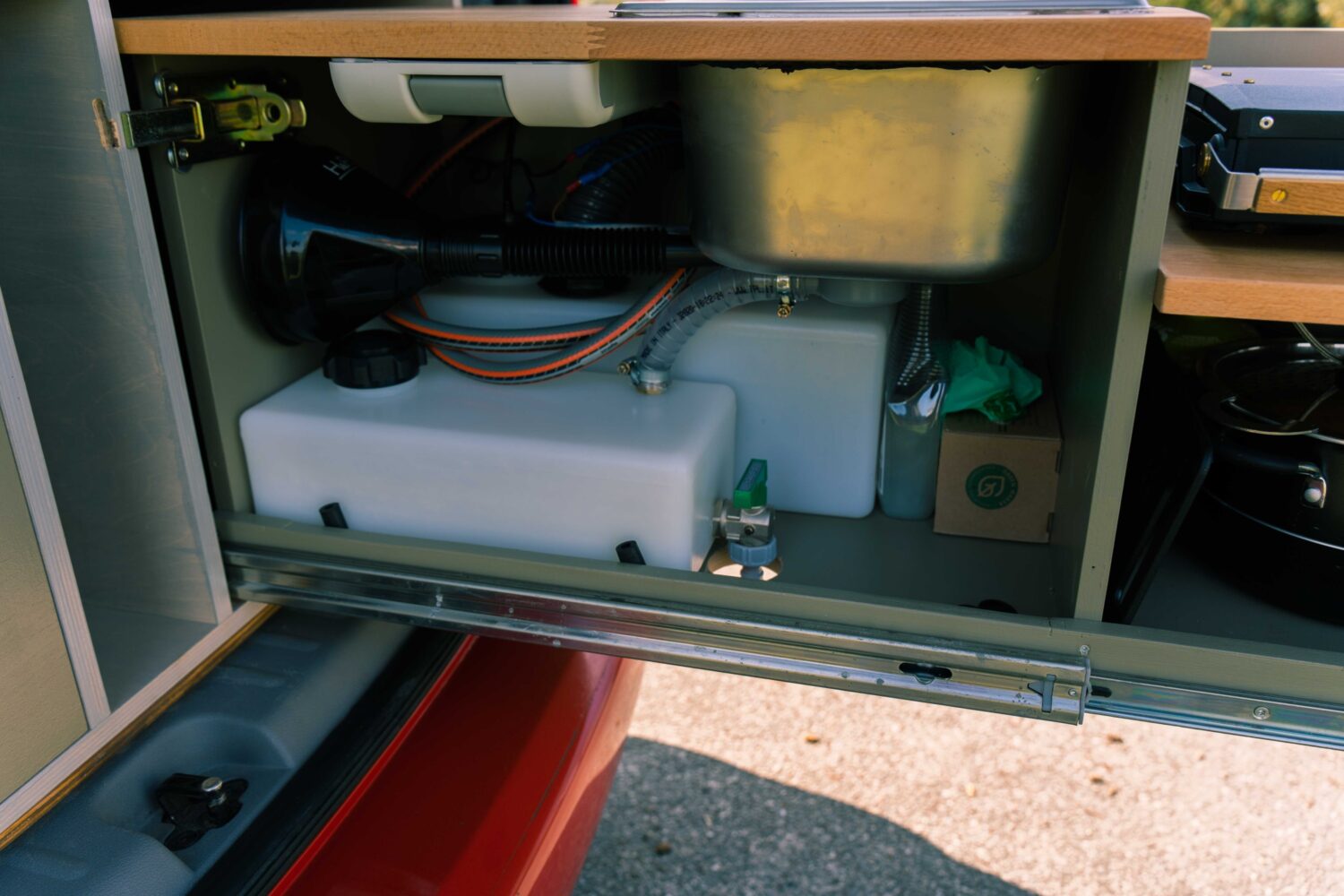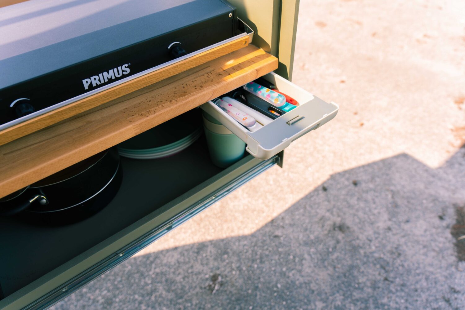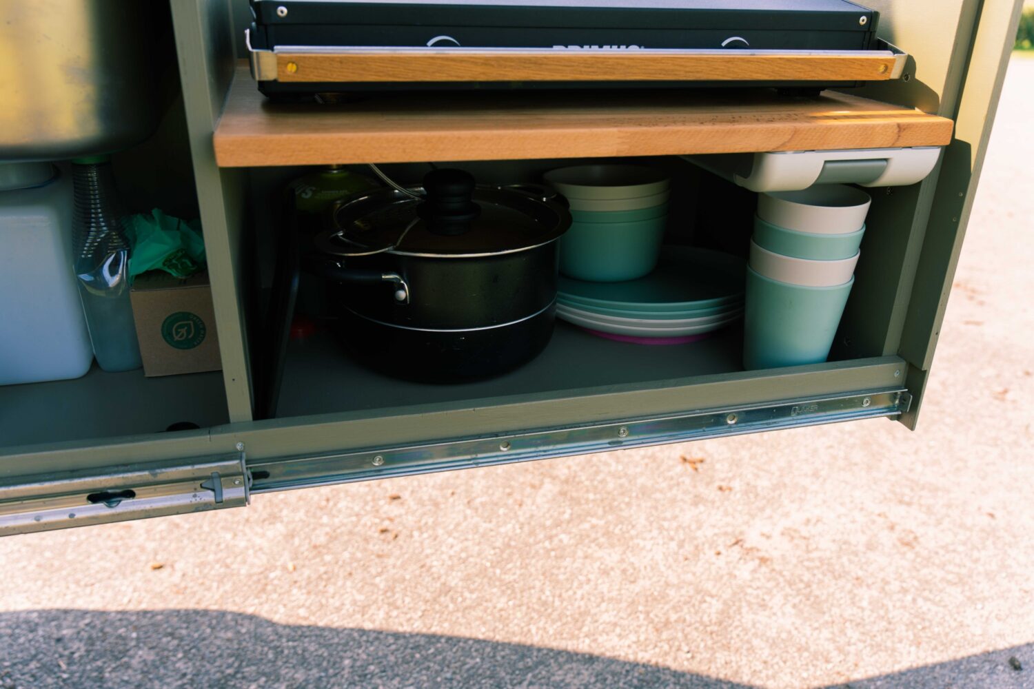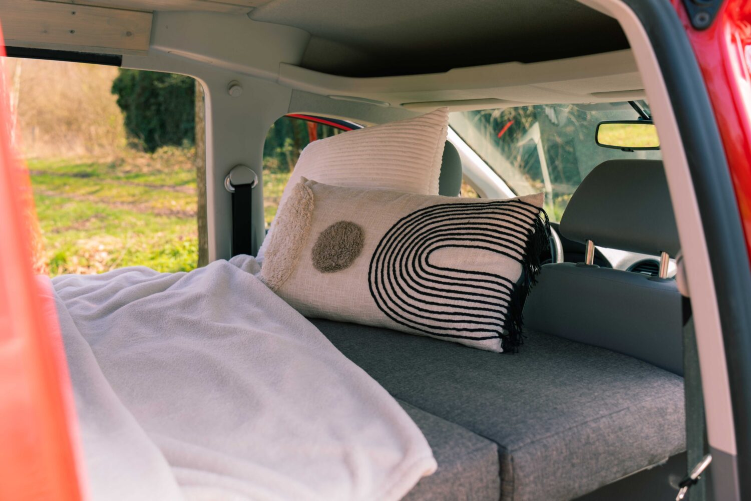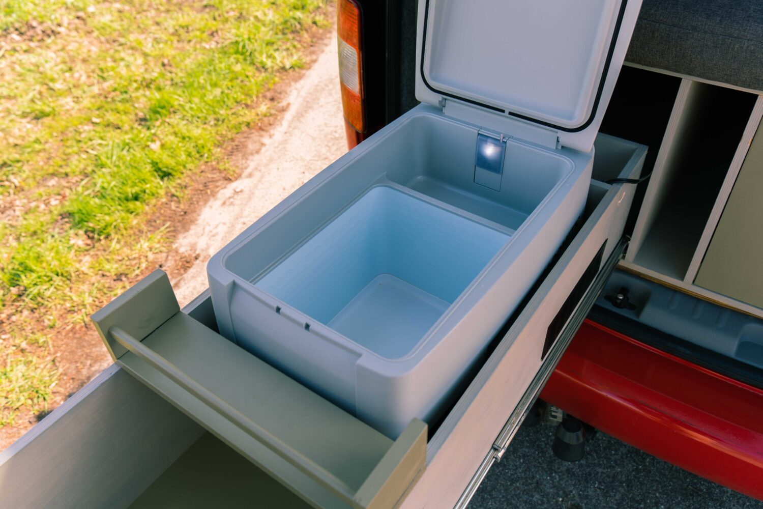 Was hat/kann der Ausbau: -         Bett Konstruktion inkl. Passgenauer Matratze -         Schränke -         Holz Dachhimmel mit 4 Deckenspots -         3 Auszüge -         Tresor / Verschließbare Geheimverstecke -         Trocken- / Trenntoilette o  Trobolo Trenneinsatz o  Behälter von Kildwick -         Strom: 12v& 230v -         Fließend Wasser -         Küchenauszug: o  Ordentlich Platz um für Geschirr / Töpfe etc. o  Kleine Schublade für Besteck o  Platz für einen Campingkocher o  Komplettes Wasser Setup, mit Spüle, Frisch- & Abwassertank -         Kühl- /Aufbewahrungsauszug: o  Dometic CoolFreeze CDF 36 Kompressor-Kühlbox 31l o  Stauraum für alles Was man zum Kochen braucht o  Gewürzregal -         Auszug zur Fahrerseite: o  Dieser Auszug ist perfekt für Eurokisten optimiert -         Dachträger: o  100W Solar Panel o  Dachträger aus Aluprofilen o  Perfekt zum Befestigen von extra Kisten, Stand up Paddleboard, Surfbrett und was das Abenteuerherz noch so wünscht. o  Markise von Ocean Cross 140 x 200cm o  Flaschenöffner :) -         Elektrik: o  Laden über Solar / Solarladeregler o  12v Sicherungskasten o  Spannungsüberwachung und Abschalten aller Verbraucher per Smartphone App o  500 W Ective Wechselrichter 12v auf 230v o  Diverse 12v Steckdosen (USB) o  Lichtschalter o  Lampen in der Decke & in der Heckklappe für Beleuchtung beim kochen o  230v Steckdose -         Gimmicks: o  Heckklappenöffnung von innen o  Gardinen Hinten o  Verschließbares Fach hinter dem Fahrersitz o  Verschließbarer „Tresor- unterm Beifahrersitz o  Ventilator für die heißen Tage -         Außerdem mit dabei: o  Project Camper Magnet Thermomatten (Schwarz/Grau) für Vorne und die Seiten  Es gibt garantiert noch so viele Dinge die wir jetzt hier nicht aufgeführt haben, am besten macht man sich mal einen persönlichen Eindruck vom Auto.