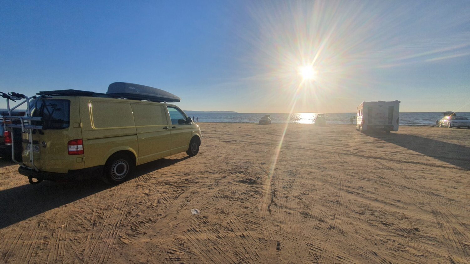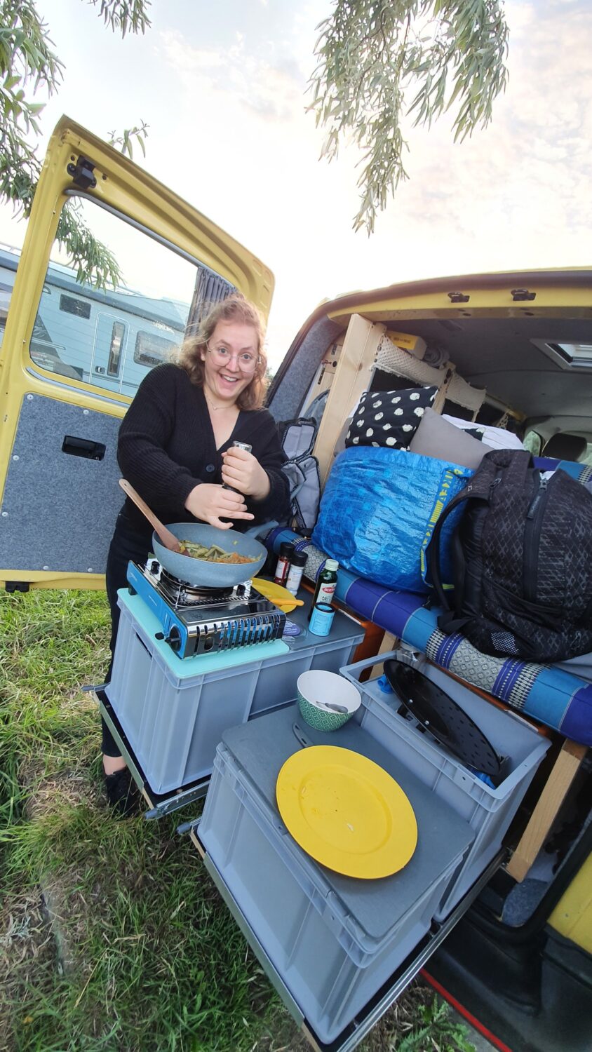 Wir haben unser Küken im Sommer 2021 als Transporter von einem Gas-Wasser-Installateuer besichtigt, waren sofort in die Farbe verliebt und starteten noch am Kauftag mit dem Umbau zum Camper. Der Sommerurlaub kam früher als geplant, also gab es den ersten Ausflug mit einem Halb-Ausgebauten Bus. Nach einer kurzen Erholung konnten wir den Umbau fertigstellen. Anfang 2022 haben wir noch einen Dachträger mit Solaranlage und Dachbox für unsere SUPs montiert und konnten so richtig mit Ausflügen, Urlauben und Festivals durchstarten.