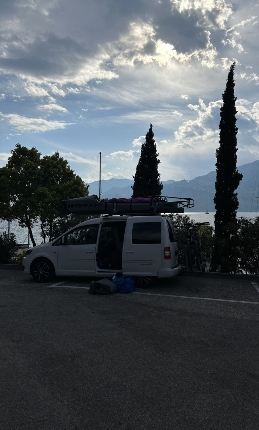 Ich wollte ein Fahrzeug welches nicht zu auffällig ist, da ich bei meinen Segeltrainingslagern oft auf den Vereinsparkplätzen stehe. Im Segelsport Campen viele da es einfach das Billigste und coolste ist. Ich habe Eddy mit 170k Kilometern gekauft und bin bereits mehrere Tausend gefahren um Segel & Surfen zu gehen. Zuletzt am Gardasee davor in Dänemark.