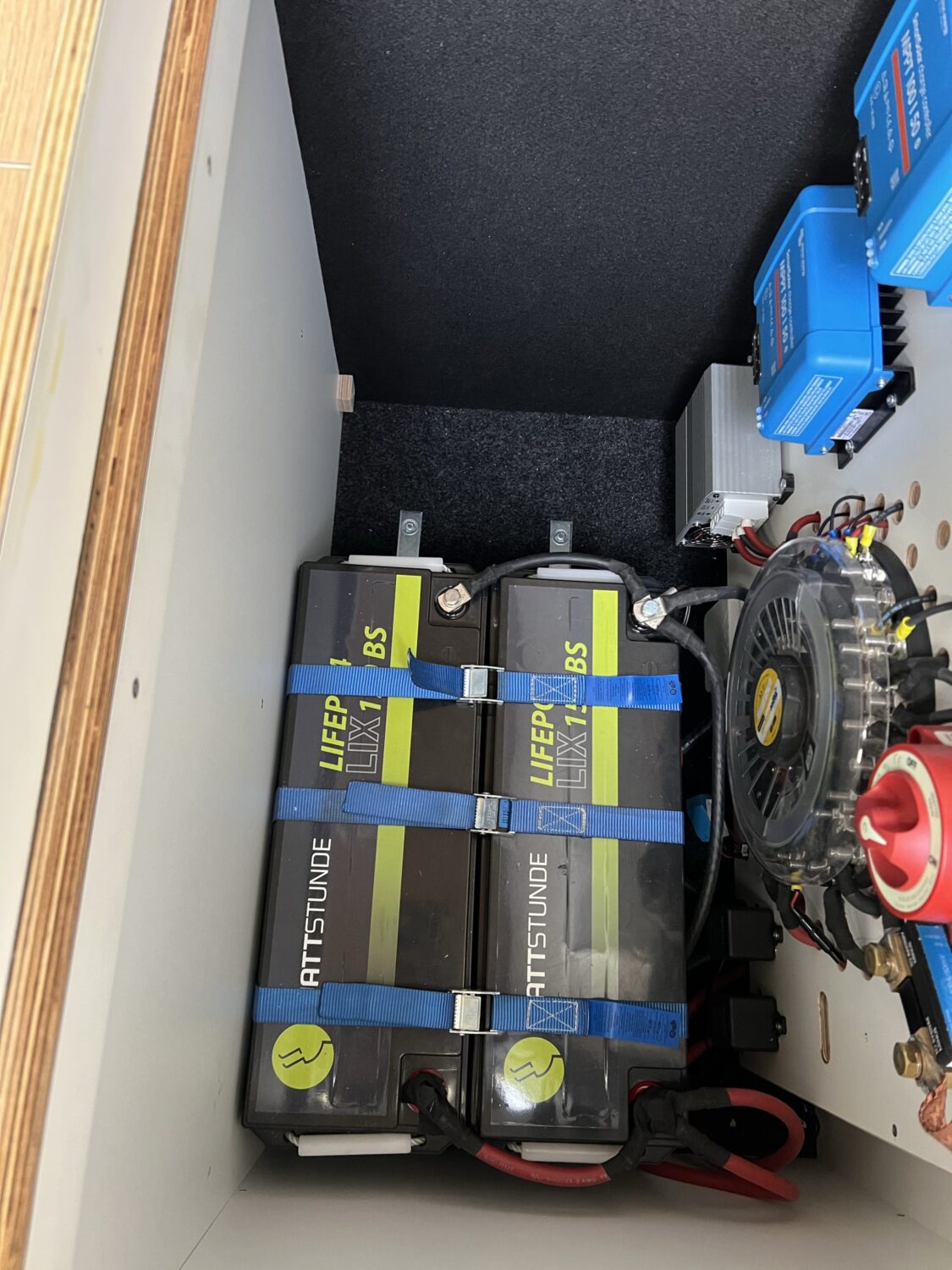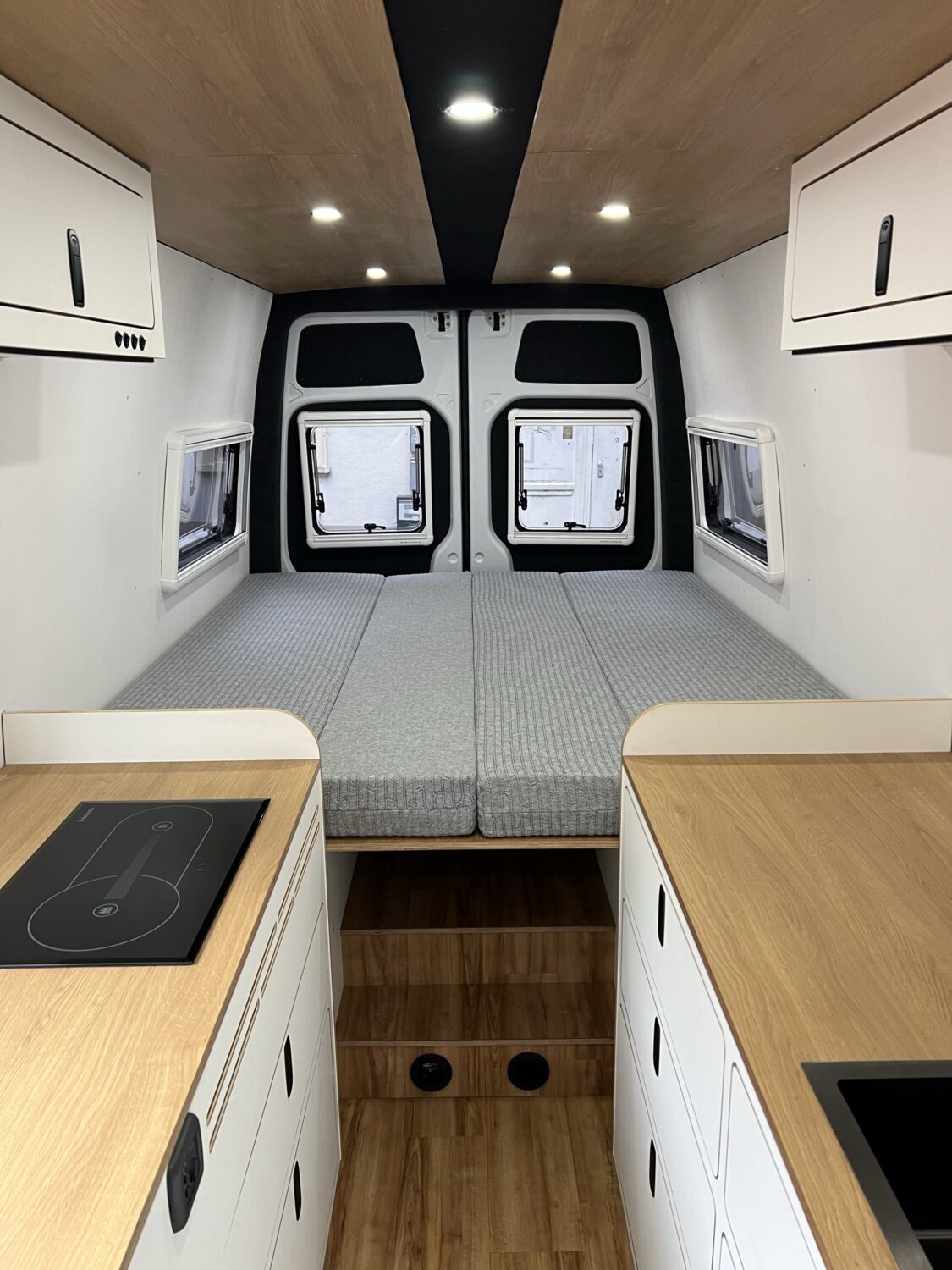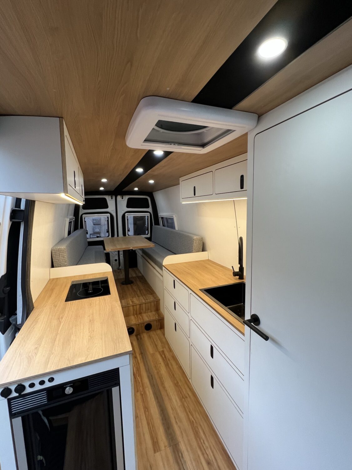 Für den Energiespeicher sorgen 2x #wattstunde 150 Ah LiFePO4 Batterien. Die Ladung mit Solarenergie übernehmen 4x 175 Wp Hochleistungsmodule von #wattstunde in Verbindung mit Victron Ladereglern. Während der Fahrt wird die Ladung der Batterien außerdem mit einem Votronic 1212-50 Ladebooster optimiert. Die Inneneinrichtung in Leichtbau wurde von uns basierend auf den Wünschen und Bedürfnissen der Kunden konzipiert. Frischwasser an Board wird ausreichend in einem 90 Liter Wassertank über dem Radkasten gespeichert. Ein 6L Boiler, der über Strom und die Wärme der Heizungen arbeitet sorgt für Warmwasser unterwegs. Um das Abwasser von Waschbecken und Dusche bequem zwischenzuspeichern und zu entsorgen, wird es über eine Zerhackerpumpe zum 65 Liter Abwassertank im Heck gepumpt. Damit der Innenraum Hell genug wird, haben wir LED Spots und LED Streifen eingebaut. Für angenehme Temperaturen im Innenraum wurden 2x Autoterm Air 2D Heizungen verbaut, außerdem wurde das gesamte Fahrzeug Schall und Wärme gedämmt. Die sichtbaren Teile der Karosserie sowie ein Teil der Verkleidungsteile wurden gefilzt. Es wurden 4 Ausstellfenster und eine Dachluke mit Ventilator + Fernbedienung eingebaut. Wenn du weitere Infos über uns und unsere Arbeit haben möchtest, mach dich an die Tasten: www.solutionsfornomads.de https://www.instagram.com/solutionsfornomads/