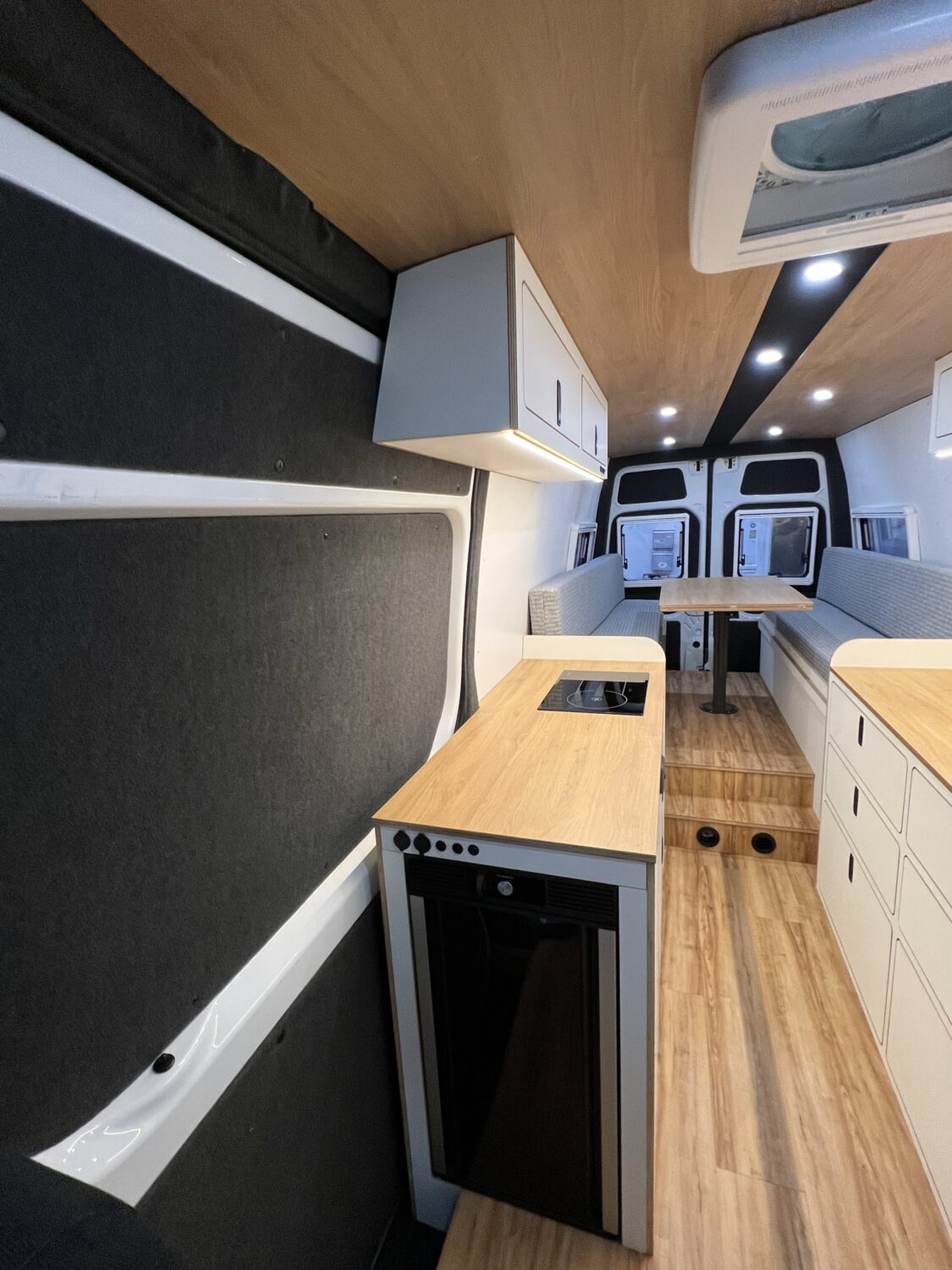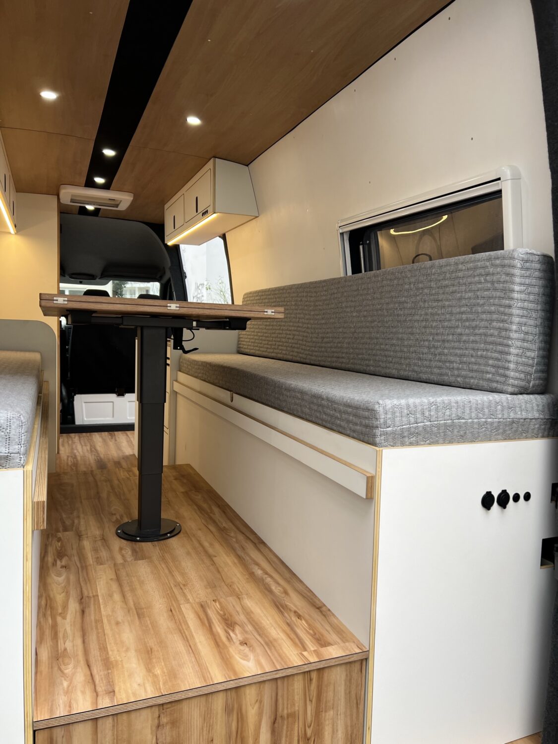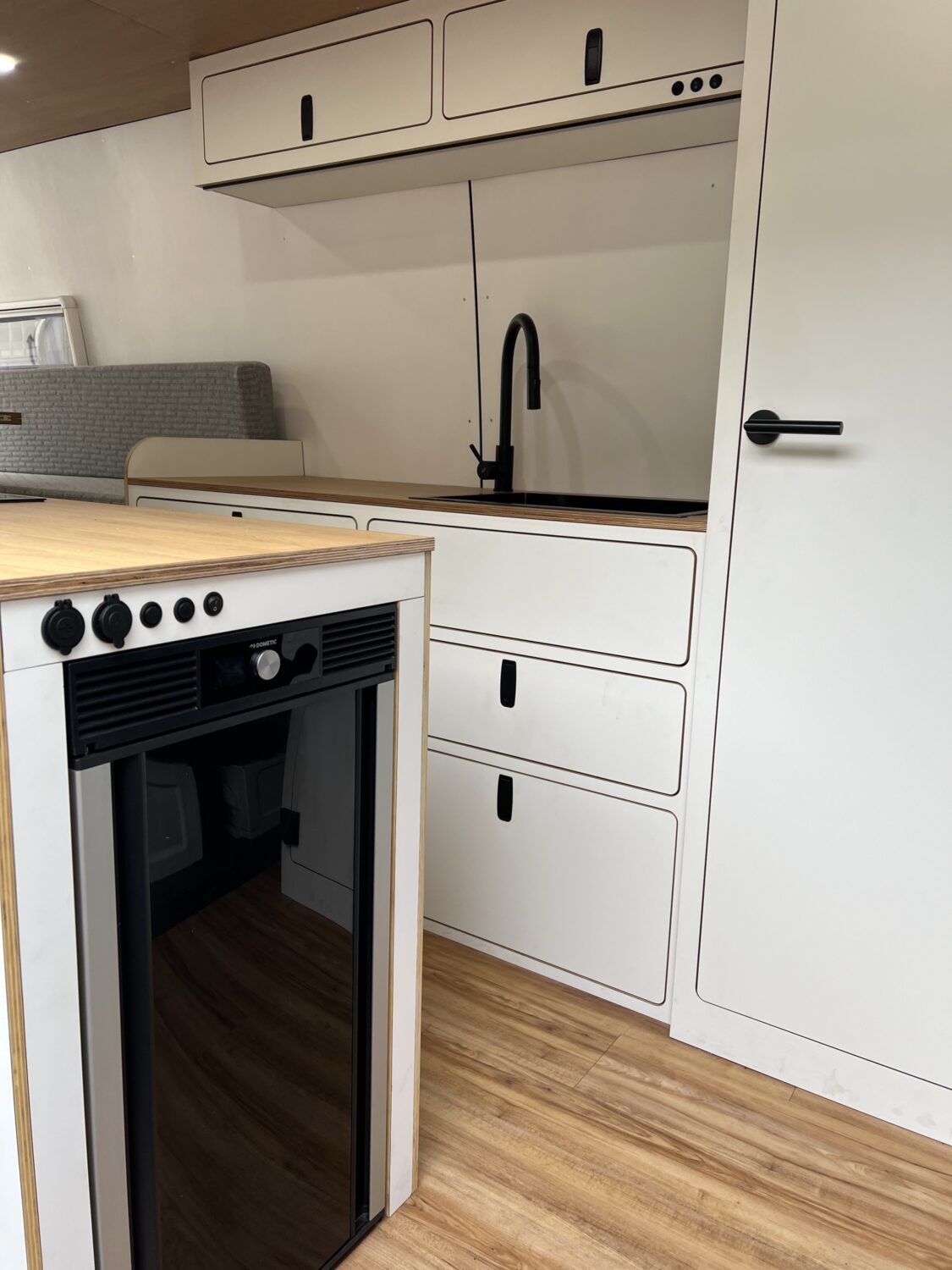 Für den Energiespeicher sorgen 2x #wattstunde 150 Ah LiFePO4 Batterien. Die Ladung mit Solarenergie übernehmen 4x 175 Wp Hochleistungsmodule von #wattstunde in Verbindung mit Victron Ladereglern. Während der Fahrt wird die Ladung der Batterien außerdem mit einem Votronic 1212-50 Ladebooster optimiert. Die Inneneinrichtung in Leichtbau wurde von uns basierend auf den Wünschen und Bedürfnissen der Kunden konzipiert. Frischwasser an Board wird ausreichend in einem 90 Liter Wassertank über dem Radkasten gespeichert. Ein 6L Boiler, der über Strom und die Wärme der Heizungen arbeitet sorgt für Warmwasser unterwegs. Um das Abwasser von Waschbecken und Dusche bequem zwischenzuspeichern und zu entsorgen, wird es über eine Zerhackerpumpe zum 65 Liter Abwassertank im Heck gepumpt. Damit der Innenraum Hell genug wird, haben wir LED Spots und LED Streifen eingebaut. Für angenehme Temperaturen im Innenraum wurden 2x Autoterm Air 2D Heizungen verbaut, außerdem wurde das gesamte Fahrzeug Schall und Wärme gedämmt. Die sichtbaren Teile der Karosserie sowie ein Teil der Verkleidungsteile wurden gefilzt. Es wurden 4 Ausstellfenster und eine Dachluke mit Ventilator + Fernbedienung eingebaut. Wenn du weitere Infos über uns und unsere Arbeit haben möchtest, mach dich an die Tasten: www.solutionsfornomads.de https://www.instagram.com/solutionsfornomads/