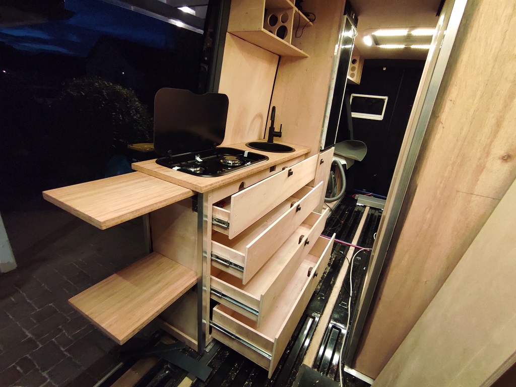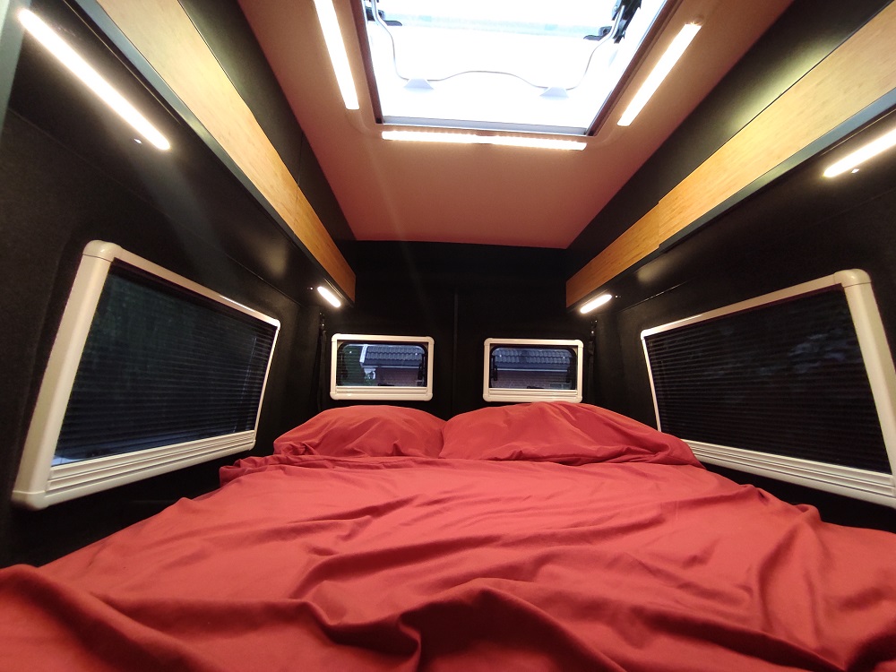 Neu-Fahrzeug bestellt 03.2021, Übergabe 02.2022, Ausbauzeit 03.2023 bis 03.2023. Aktuell habe ich nicht ganz 35000€ reingesteckt und bin eigentlich fertig. Auf die Preise habe ich nicht so geachtet, Qualität, Funktionalität und Gewicht (Queenplay ;-)) waren mir wichtiger. Alle Einbauten wie Fenster, Isolierung, Möbelbau (geschraubt und geleimt), Wasser, Dusche, Trenntoilette, Elektrik (Votronic), Akku 280Ah Selbstbau, Solar, Gas und Heizung habe ich selbst durchgeführt. Nur die Zweier-Sitzbank musste ich einbauen lassen, dafür aber gleich mit TÜV. Elektrik und Gas habe ich dann von Fachleuten nur abnehmen lassen und damit ohne Probleme TÜV bekommen. Ergebnis: Ein Fahrzeug genau nach meinen Wünschen und alles da, wo ich es brauche. Eigentlich für Zwei aber mit 4 Sitzplätzen, wo ich die Zweier-Sitzbank einfach rausnehmen kann. Gewicht bei der TÜV-Abnahme 3140 Kg (voller Dieseltank 93l, voller Wassertank 160l, Alu-Gas voll 16 Kg, Zweiersitzbank 55 Kg, inkl, Fahrer 75 Kg). Für den Fall, Diebstahl oder Unfall, haben wir ein Wertgutachten (200€) erstellen lassen und einen Marktwert von 145000€ erreicht.