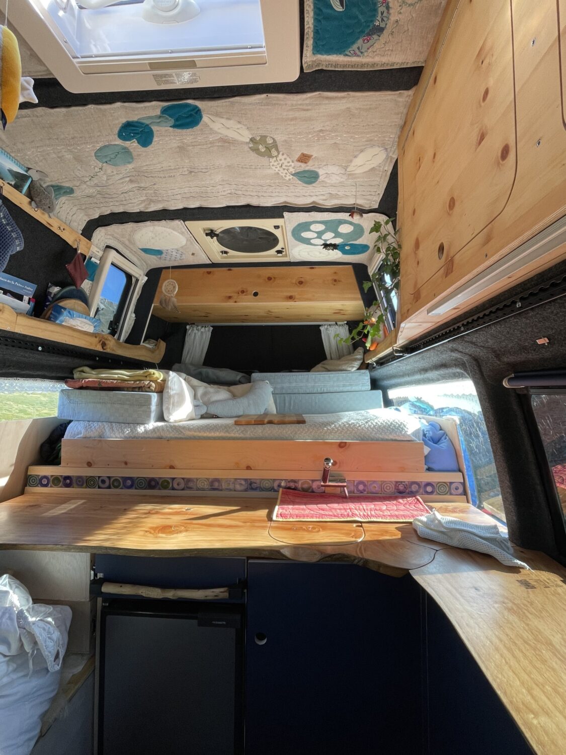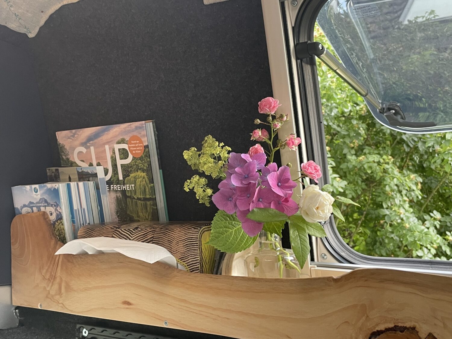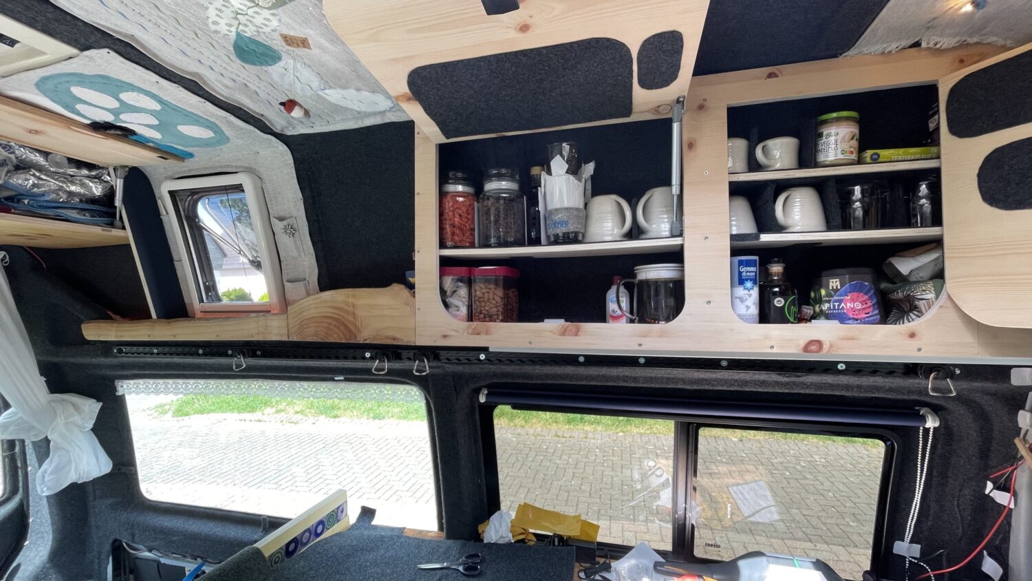 Ausbau Dauer 6 Monate Anfangs wenn Zeit war Am Schluss 4 Wochen fulltime Es war ein Behördenlaborfahrzeug der immerhin einen Maxifan in der Decke und Standheizung hatte . Ansonsten haben wir alles von Grund auf neu gemacht, neue Bodenplatte, Armaflex, Filz, danach Komplettausbau mit Heki plus drei Ausstellfenster im Hochdach Kein Gas, dafür 200 Ah LiFePo 4 Batterie, mit 2x 80W Solarpanels auf den Dach, Ladebooster , ein Multiplus von Victron ( 230 V Aussensteckdose)) ermöglicht und das Kochen mit Induktion, 6Liter Boiler macht das warme Wasser für Aussendusche und Waschbecken. Ausbau mit Küchenzeile/ Dometic KompressorKühlschrank ,festverbauter 70 L Frischwassertank, 20 L Abwasser, Trelino, Wasserfilter von Albfilter im Befüllschlauch von Aussen, Vordach und Dach über den Heckflügeltüren selbstgemacht Bettkonstruktion auf Schwerlastauszügen hinten aus dem Auto ausfahrbar Drehsitze mit Safe unter dem Beifahrersitz LED Stripes zur Beleuchtung plus Lichtleisten aus dem Baumarkt für viel Licht Kofferraum unter dem Bett für richtig viel Gepäck , zb SUP s und Euroboxen, Nähmaschine, Werkzeug. Innenausbau komplett mit Queenply Dach von innen isoliert und mit selbstgenähten Pads ausgekleidet. Für die Zukunft soll unser Silberfisch noch eine Auflastung auf 3200 Kilo und eine leichte Höherlegung bekommen. Besonders gefällt uns an unseren Auto die Inneneinrichtung aus Holz und die Spülenplatte aus Epoxyd beschichtetem Zedernholz. Stolz sind wir darauf wirklich alles selbst gemacht zu haben. Wir können mit diesem Equipment 2 Tage komfortabel autark stehen, dann müssen wir entweder fahren oder brauchen Aussenstrom