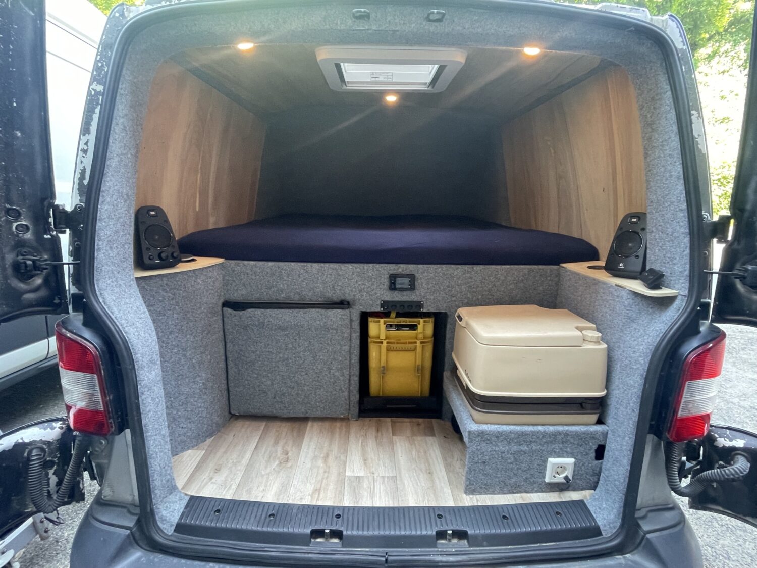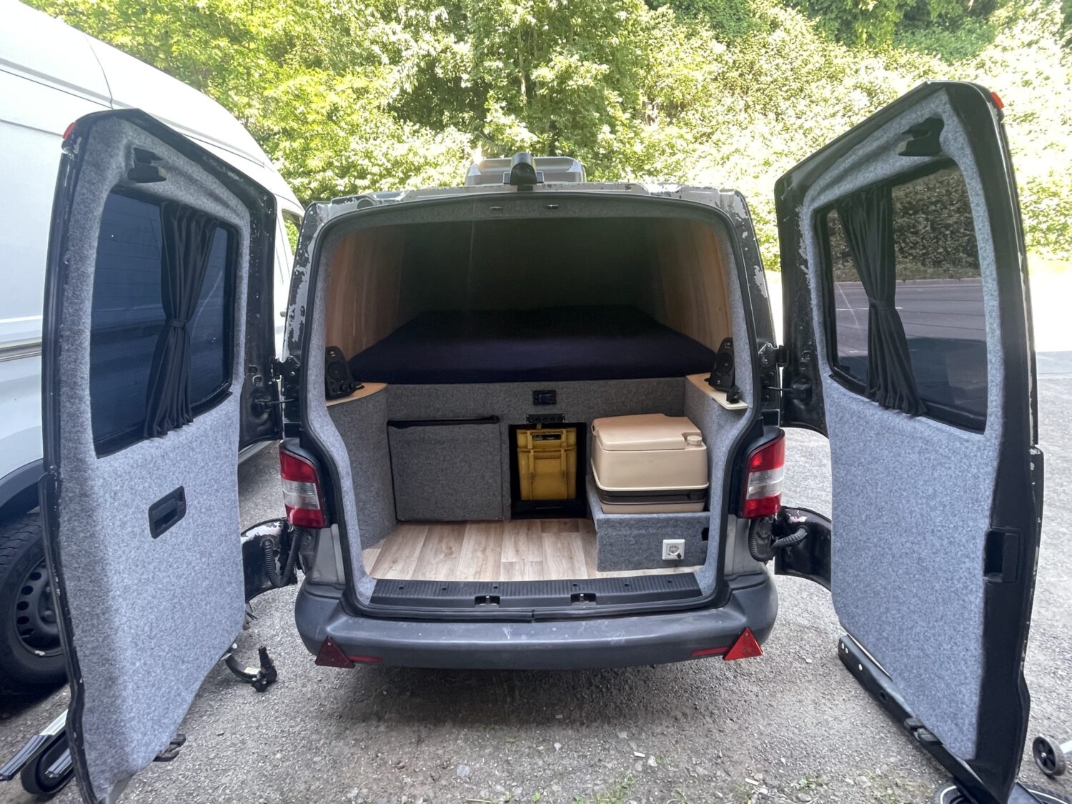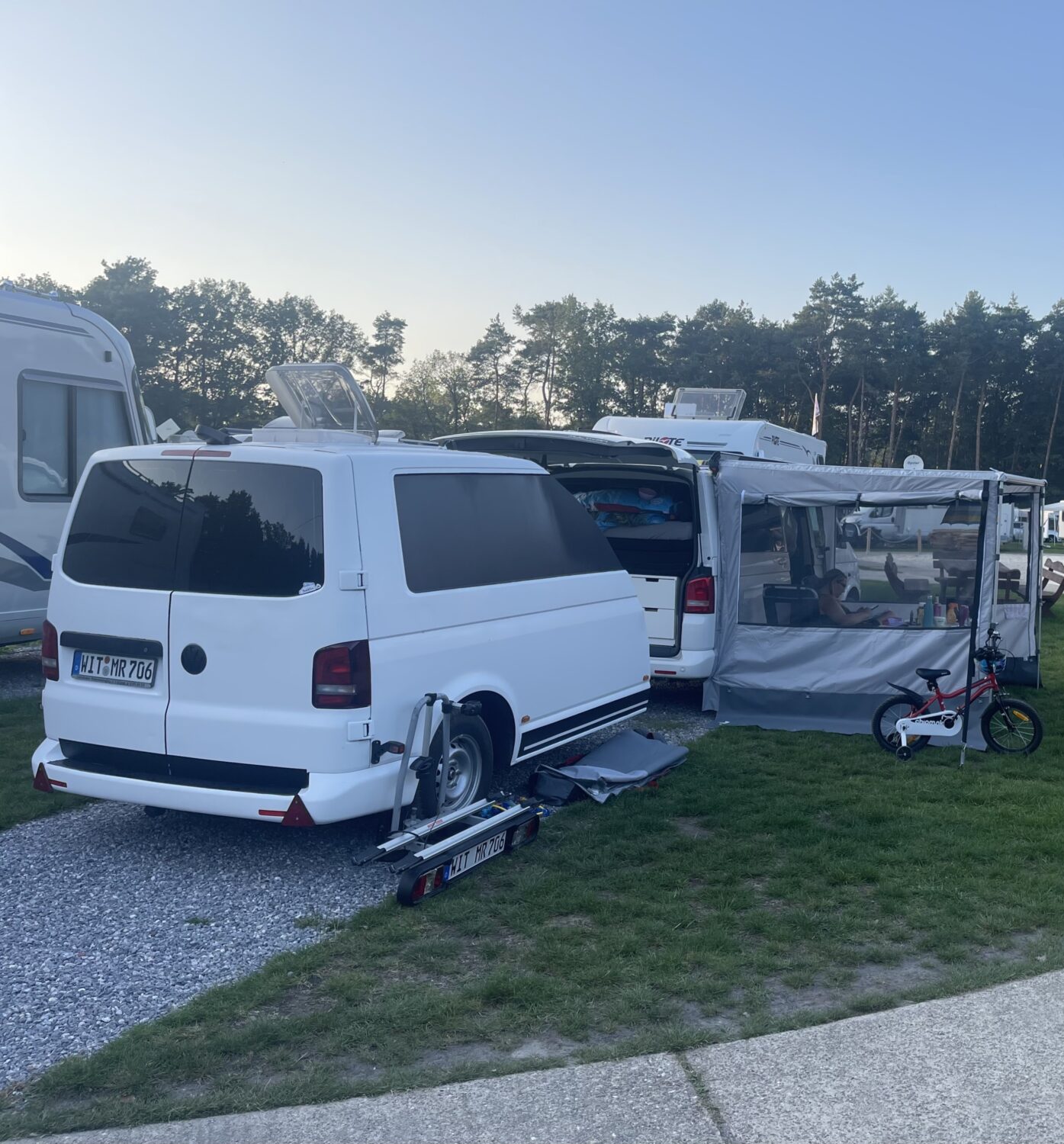 Unser Multi besitzt eine Komode im Heck mit Spüle,Kühlschrank und Stauraum. Er ist von Werk aus mit einer Standheizung ausgestattet hat 130watt Solar auf dem Dach, sowie eine 100ah Lifepo4. Desweiteren viel Kleinkram hat sich im laufe der Zeit angesammelt wie z.B. ein Heckzelt,Outdoor Küche, Deckenmonitor,Markise,Vorzelt, Toilette, Wlan Zweites Bett vorn, Tisch, Stühle und eine Dusche fürs Zelt Hinten. Eigentlich alles was das Herz begehrt für den kleinen Bus. In unserem Kroatien Urlaub bei einem Bierchen ist dann die Idee mit dem Hänger gekommen. Die Karosse haben wir gekauft gehabt. Wir haben dann die Achse getauscht, Ihn Tüv fertig gemacht und zum Schluss ausgebaut. Es war ursprünglich ein T5 Transporter mit Langen Radstand. Er Besitz ein 160x200cm Bett darunter viel Stauraum. Einen Kühlschrank, 300watt Solar, 100ah Lifepo4, Wechselrichter, Dachluke, Standheizung, Toilette sowie eine Anhängerkupplung für den Fahrradträger und eine ordentliche Musikanlage.