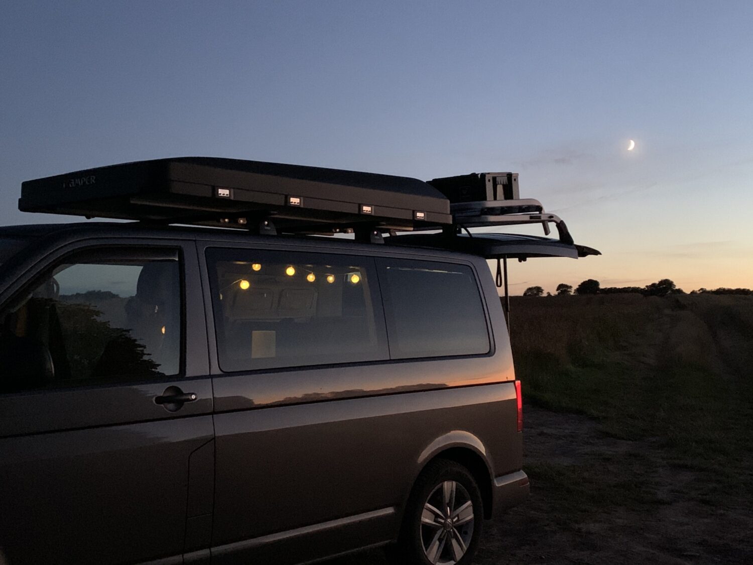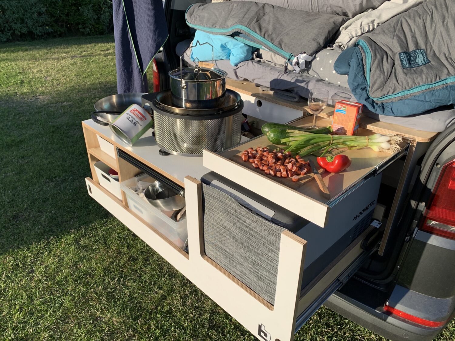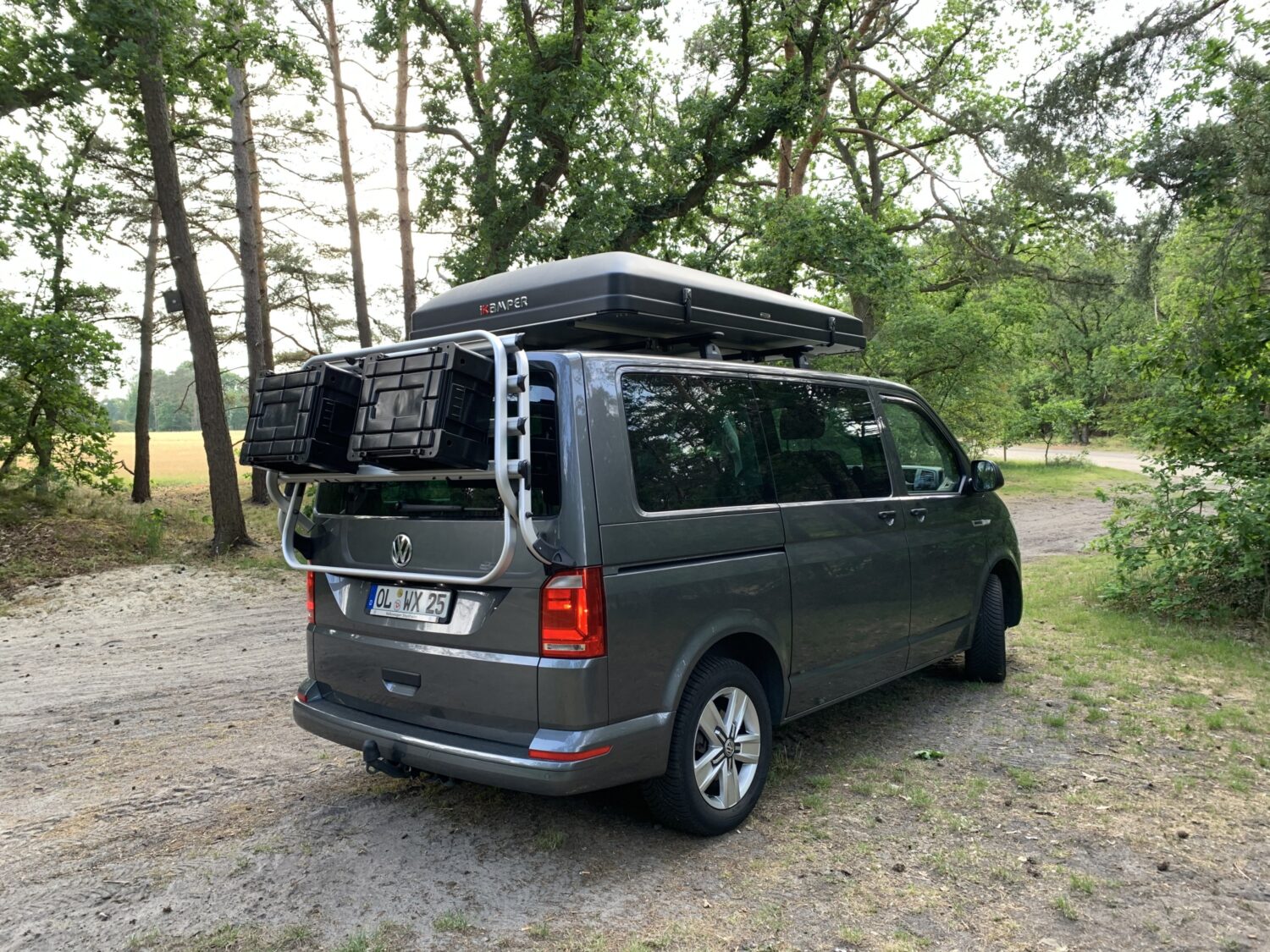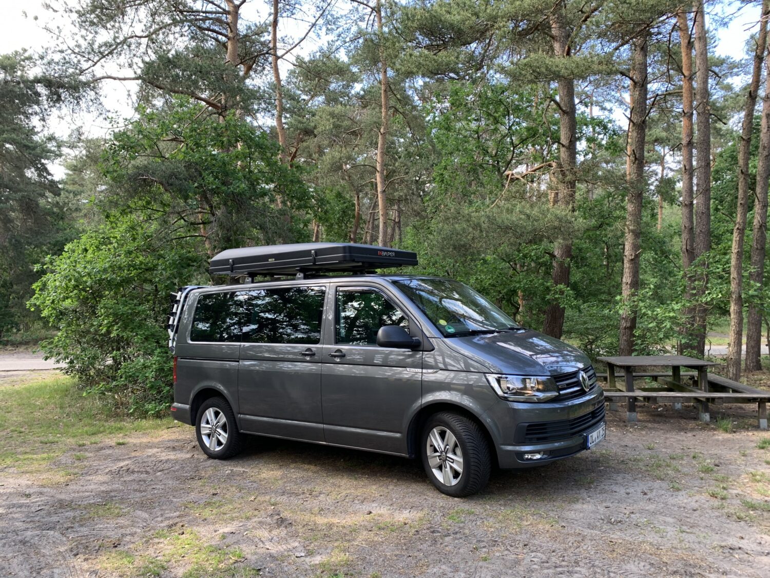 Wir fahren einen Multivan, der im Alltag auch mal mit allen Sitzen seinen Dienst tun muss. Für die kleine Freiheit gibt es eine selbst gebaute Heckküche mit Kompressorbox, Wasser und Kocher. Für die große Freiheit gibt es das iKamper Dachzelt. Es ist unser 6. Bulli und für uns einfach perfekt!