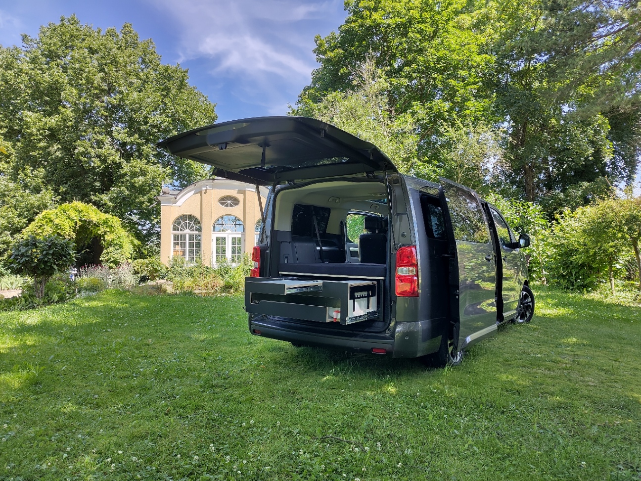 Unser Ausbau ist eine fertige Box der Firma Visu aus Tschechien. Wir nutzen den Elektro Bus im Alltag auch täglich als Pendelfahrzeug und Alltagsgefährt für uns und unsere drei Kinder. Ein fester Ausbau war daher aus Platzgründen nie eine Option.