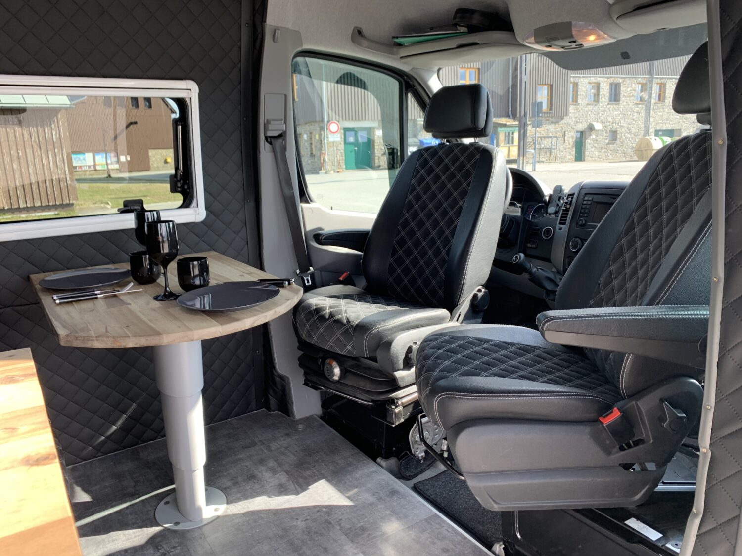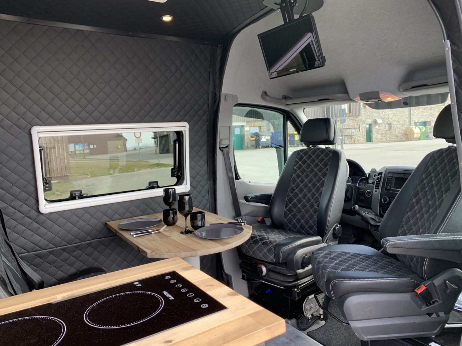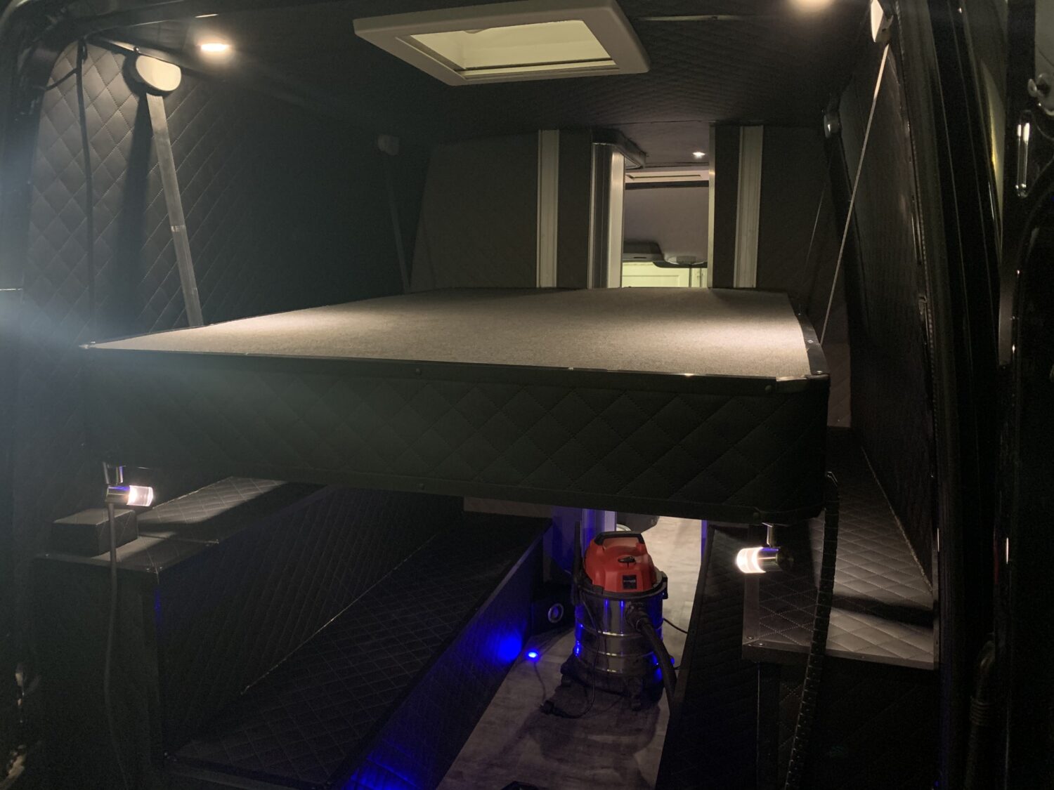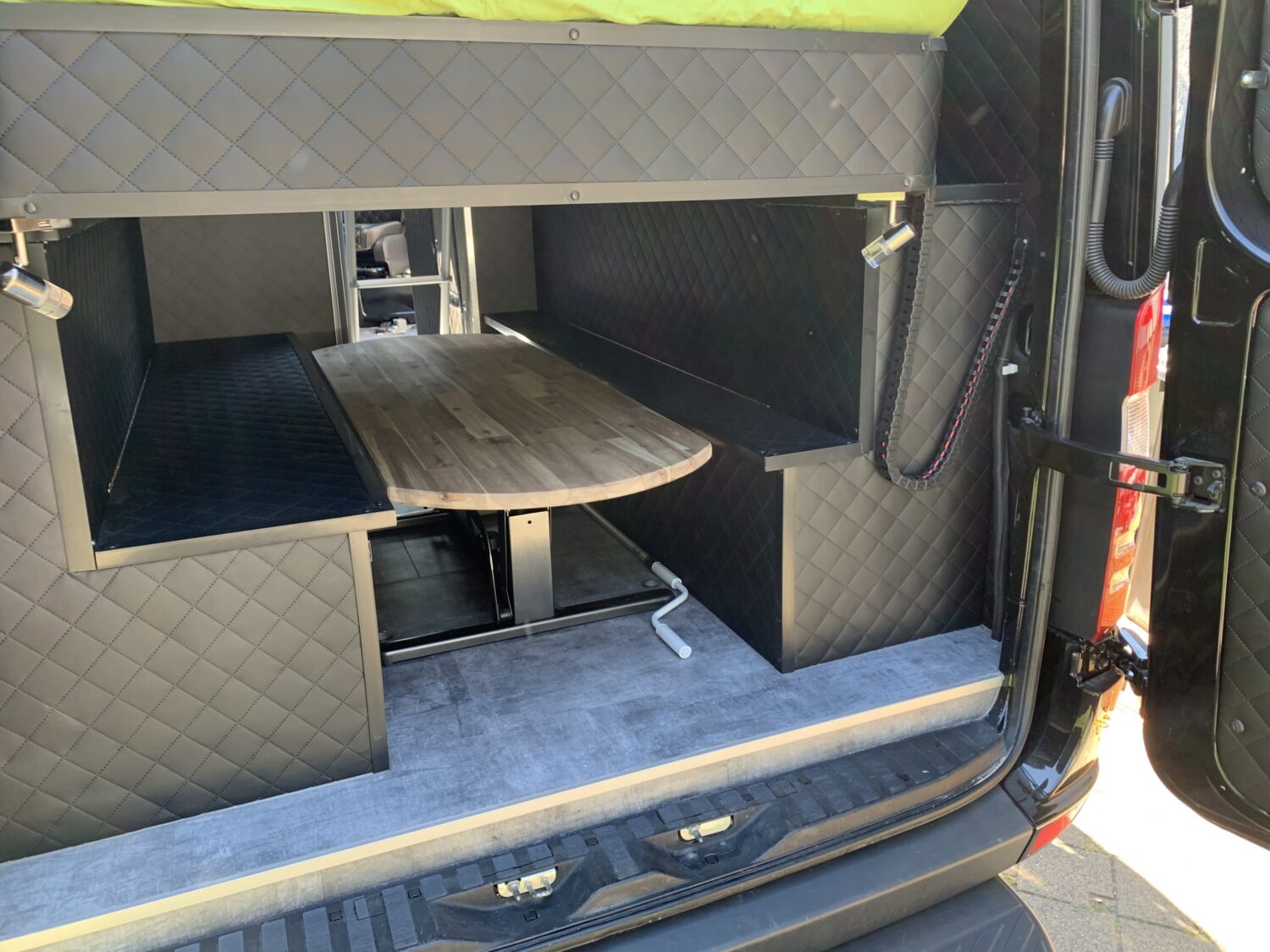 Der Ausbau dauerte 3 Monate. Ich habe ein elektrisches Hubbett und eine Dusche verbaut. Besonders stolz bin ich auf das elektrische Hubbett. Kosten für den Ausbau ca. 23000 Euro.