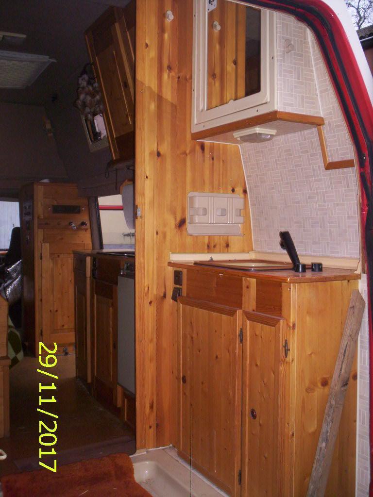 Ausbau durch Firma im Jahre 1993, Naßzelle im Heck über die gesamte Fahrzeugbreite - dient als Zugangsschleuse