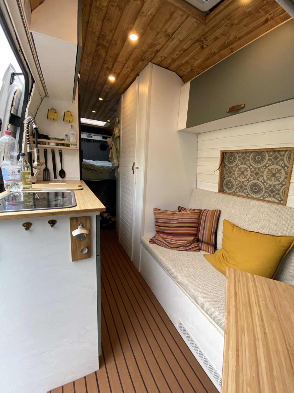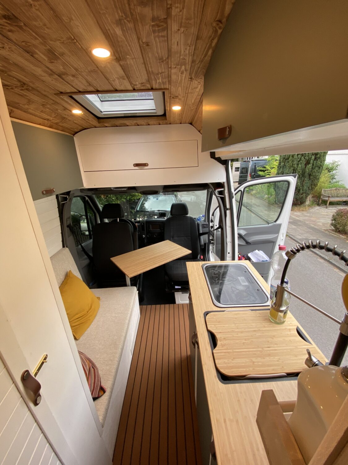 - Van für Reisende über 1,90m ;) - Luftbeheizter Doppelboden - Innenliegender Abwassertank - Nasszelle mit Innendusche und Trenntoilette Ausbau Winter 2019/20 ohne Werkstatt auf der Straße. Ausbau bis Ende 2020 fortlaufend. Für eine passende Folierung konnten wir uns bisher nicht entscheiden...
