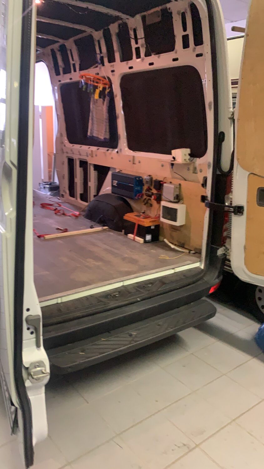 Noch im Bau. Noch lange nicht fertig 😀 Mittlerweile ist die Küche halb fertig das Bettgestell ist verbaut die Elektrik ist endlich fertig und seid Samstag ist die Standheizung verbaut. Es geht vorwärts aber das Licht am Ende des Tunnels ist noch nicht zu sehen.