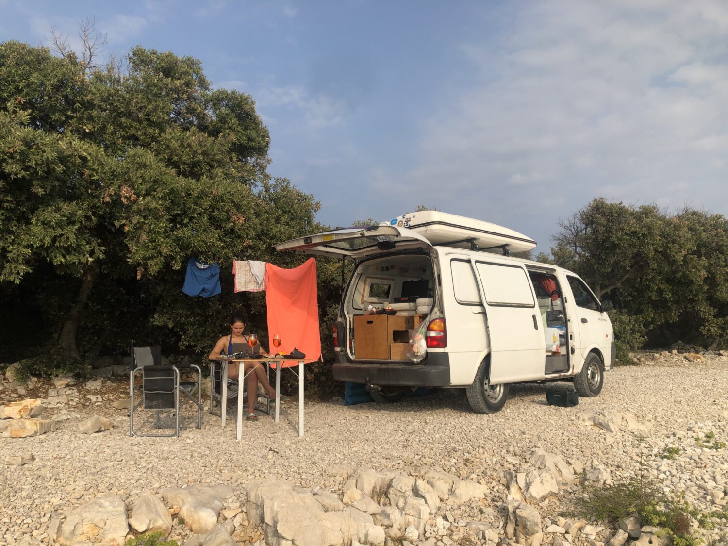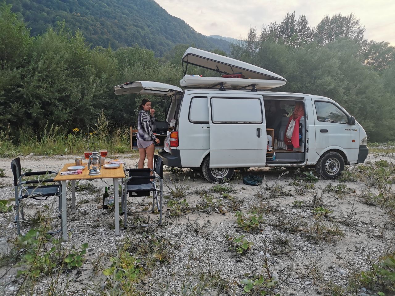 Der Ausbau hat ca 3 Monate gedauert, findet aber natürlich niemals ein Ende. Ich habe ein kleines und ein großes Fenster eingebaut, 110W Solaranlage auf dem Dach. Die Liegefläche misst gemütliche 160x200cm. Aus dem kleinen Transporter ist ein sehr funktionaler und gemütlicher Camper geworden!