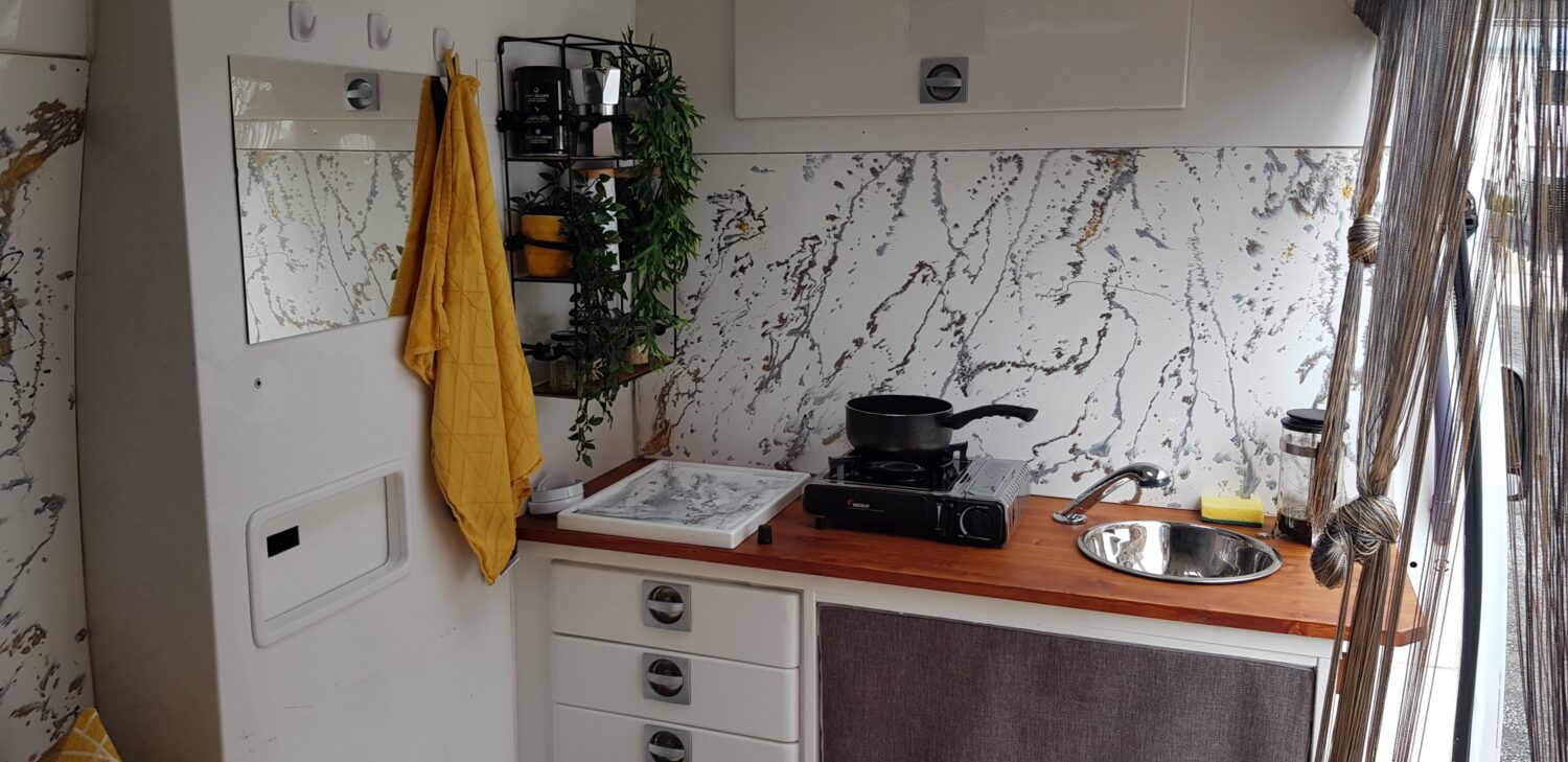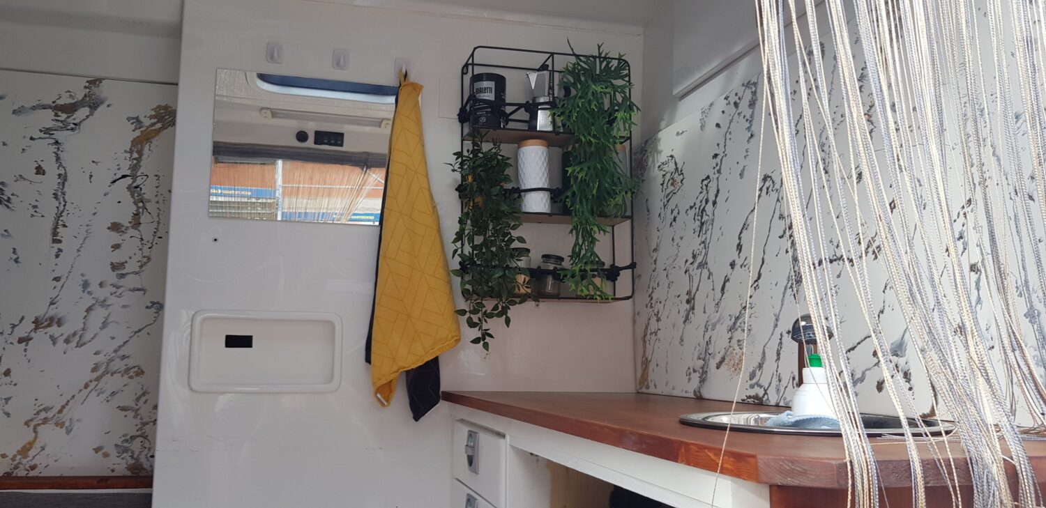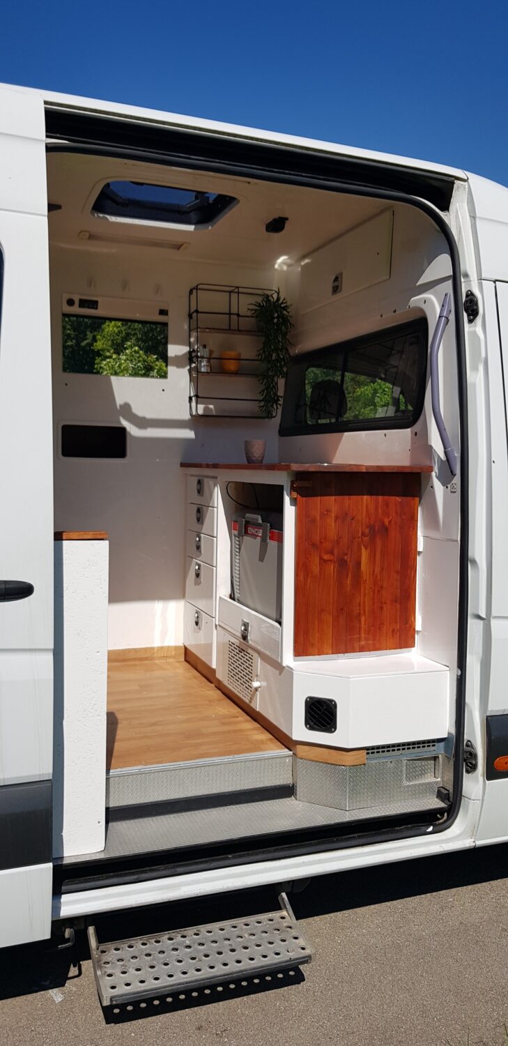 Ich habe den alten Krankenwagen spontan Anfang Februar gekauft. Es war quasi Liebe auf den ersten Blick und sucv etwas Mut. Plötzlich war ich aufgrund von COVID-19 7 Wochen im Home-Office. Ich lebe allein und brauchte definitiv eine Aufgabe! Also war "Honey" genau das richtige Projekt. Mein erster Ausbau und das ganz allein. Mein Umfeld war mehr als überraschend, was ich als Bürolady so handwerklich drauf hab. Besonders stolz bin ich auf meine Bett-Konstruktion, die es erlaubt das Querbett auf eine Gesamtgröße von 175×200cm zu vergrößern.