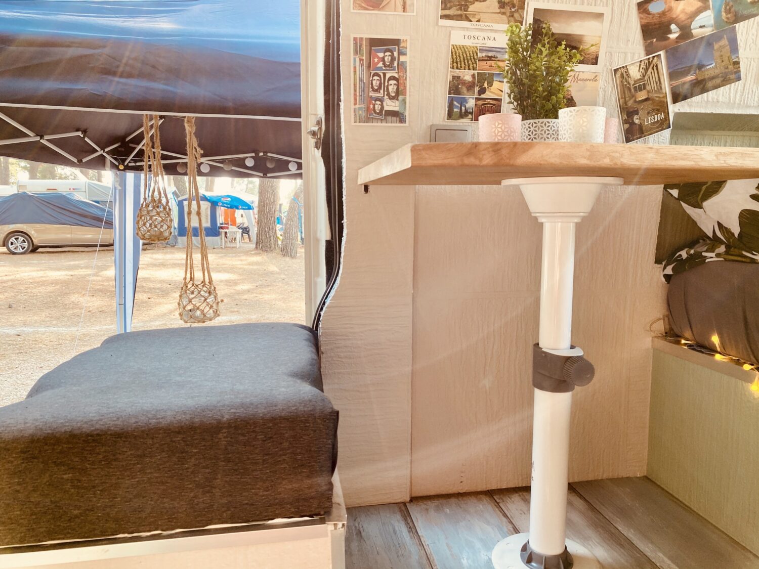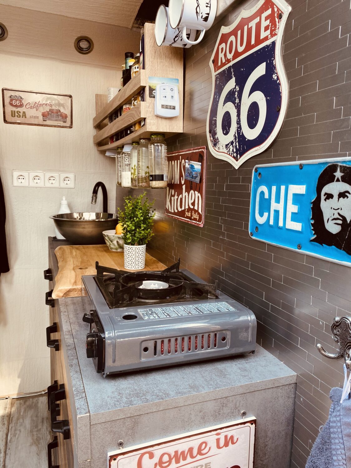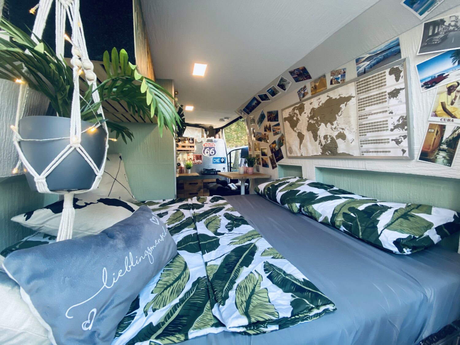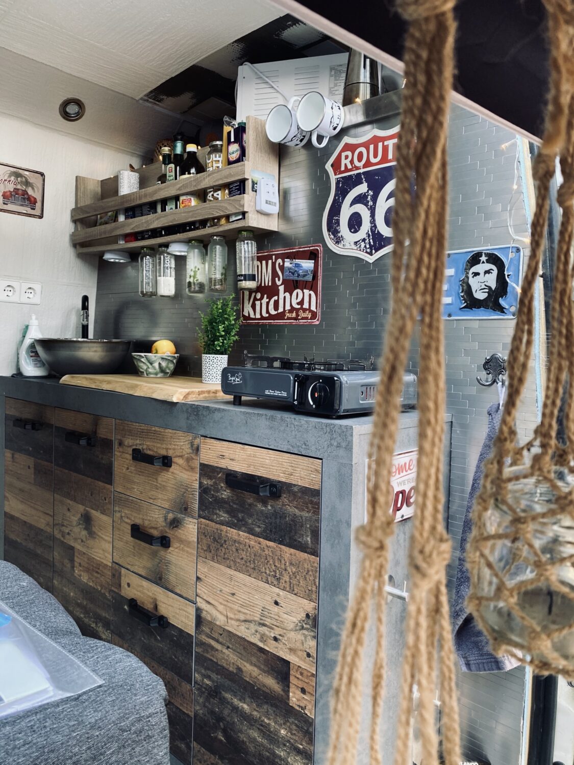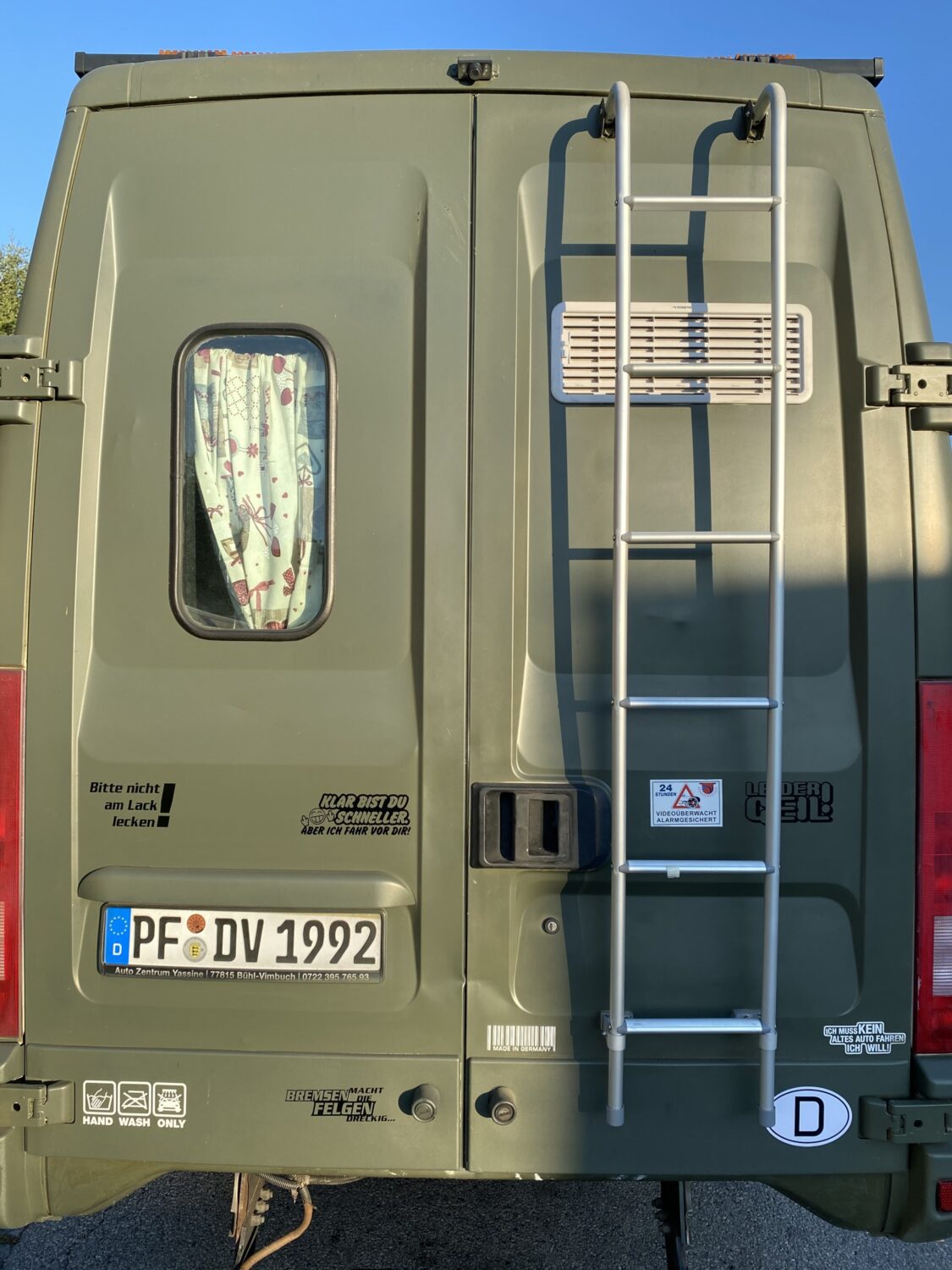 Wir haben bereits seit Februar zweimal ausgebaut. Unser letzter und aktueller Ausbau hat 2 Monate gedauert. Ausstattung: 140x190 Bett, Sitzgarnitur, Tisch, Küche, Bad mit WC und Dusche,TV,Klimaanlage, Dachterrasse,solarko Das besondere am Tisch, man kann diese Garnitur zum kleinen Bettchen umbauen, falls ein kleiner Reisebegleiter dazu kommt :). Wir sind stolz auf unsere Vettlady. Auch wenn wir sie noch nicht so lange haben, bis jetzt hat sie uns nicht im Stich gelassen. Wir haben sie ab und an gut gefordert. Old but Gold :).