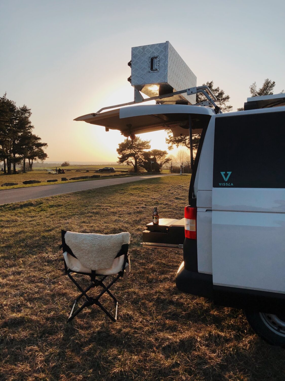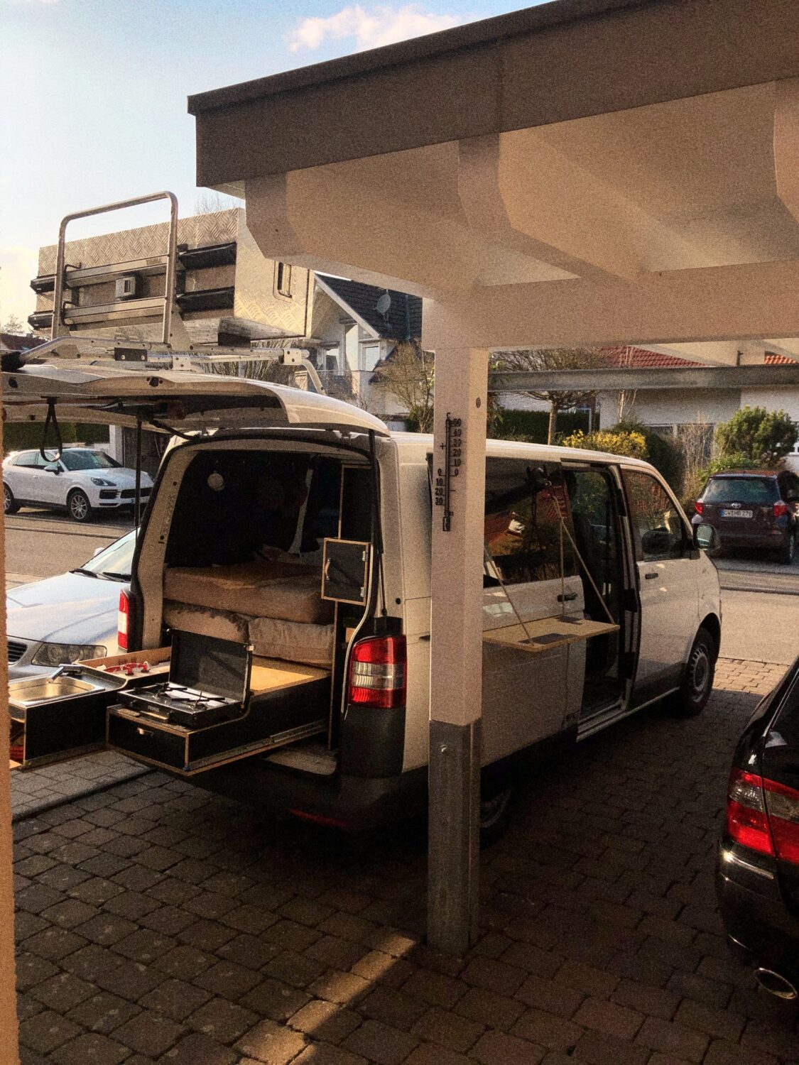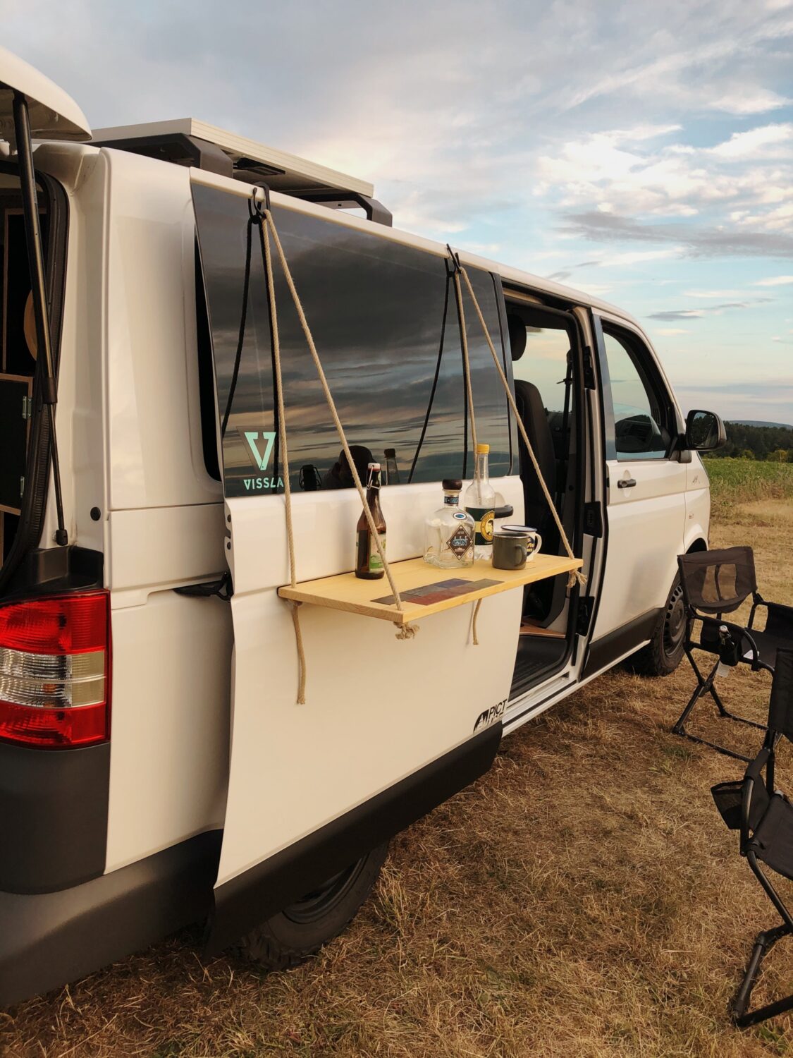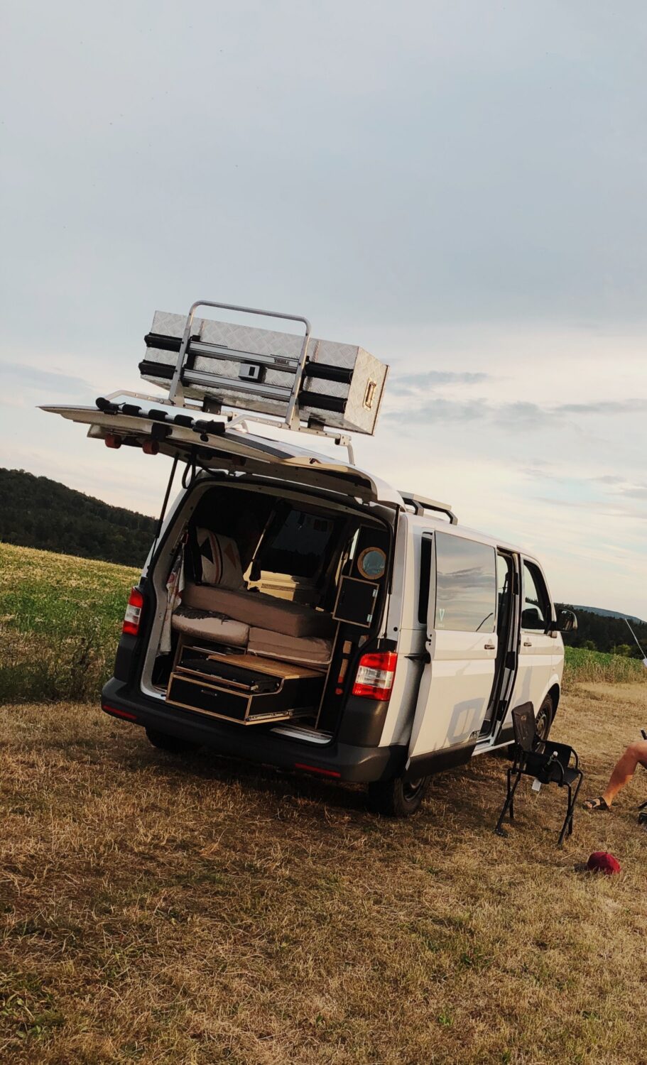 Beamer mit Leinwand Dusche Spüle Heckküche Surfbrett-Halterung Heckbox Hängetisch