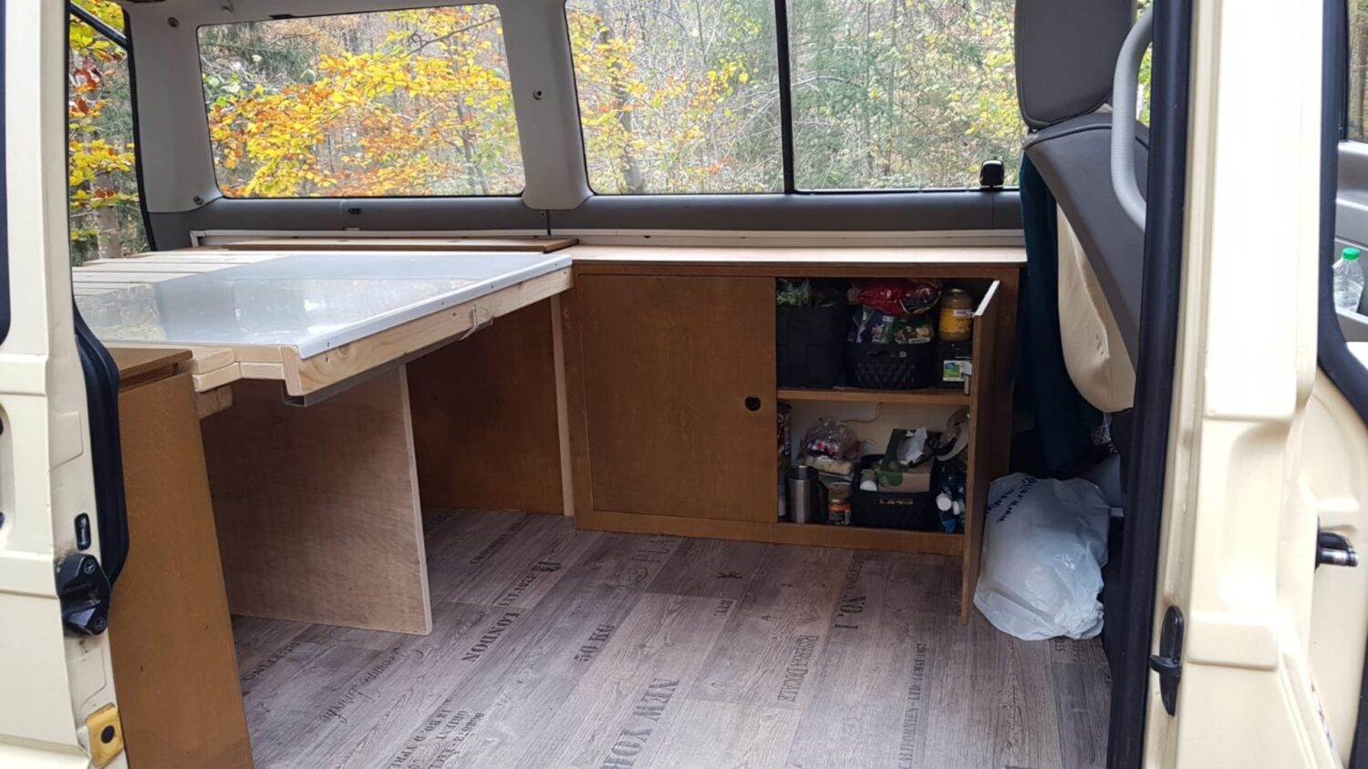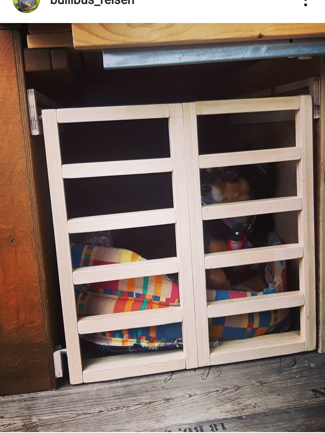 Da mein Budget nicht so groß war 800 €, hat mein Freund alles selbst gemacht, zusammen mit seinem Vater. Dabei war die größte Herausforderung das mein Freund 2.02m groß ist, ich hätte auch quer drin schlafen können zudem musste ein sicherer Platz für 2 Hunde, eingeplant werden.