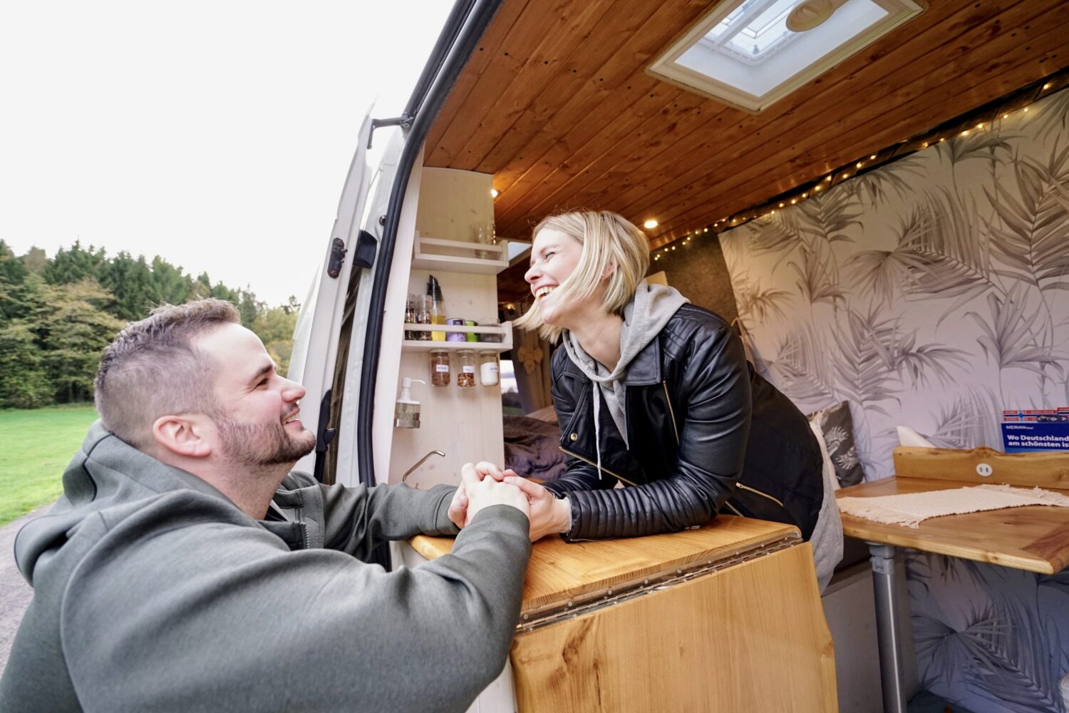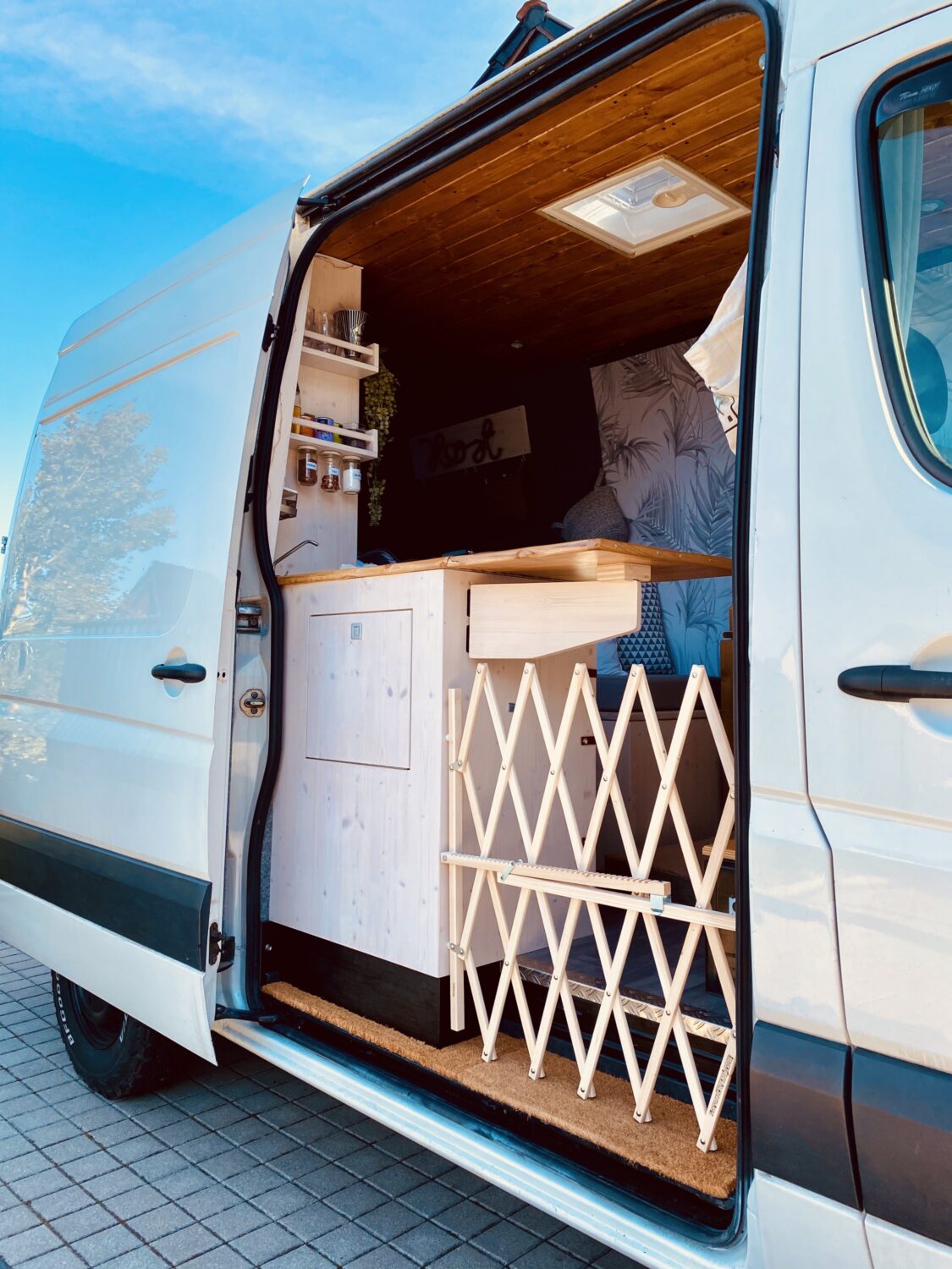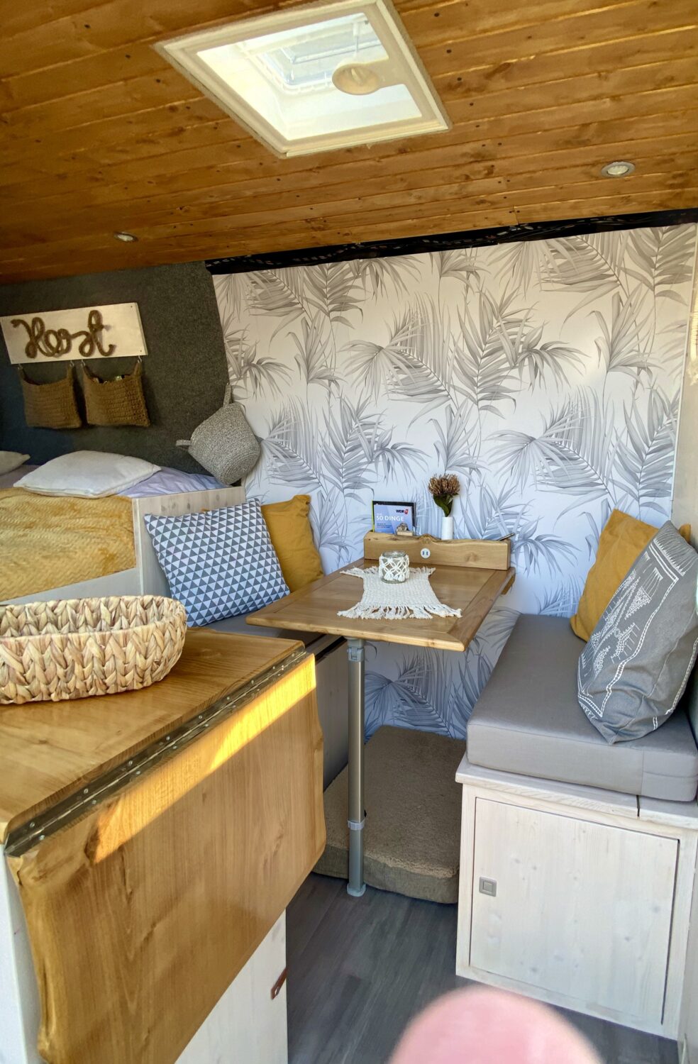 Wir haben 6 Monate gebraucht, viele besondere Holzarbeiten wie die Küchenplatte oder der Tisch, Umbau und Anschaffung um die 20.000€