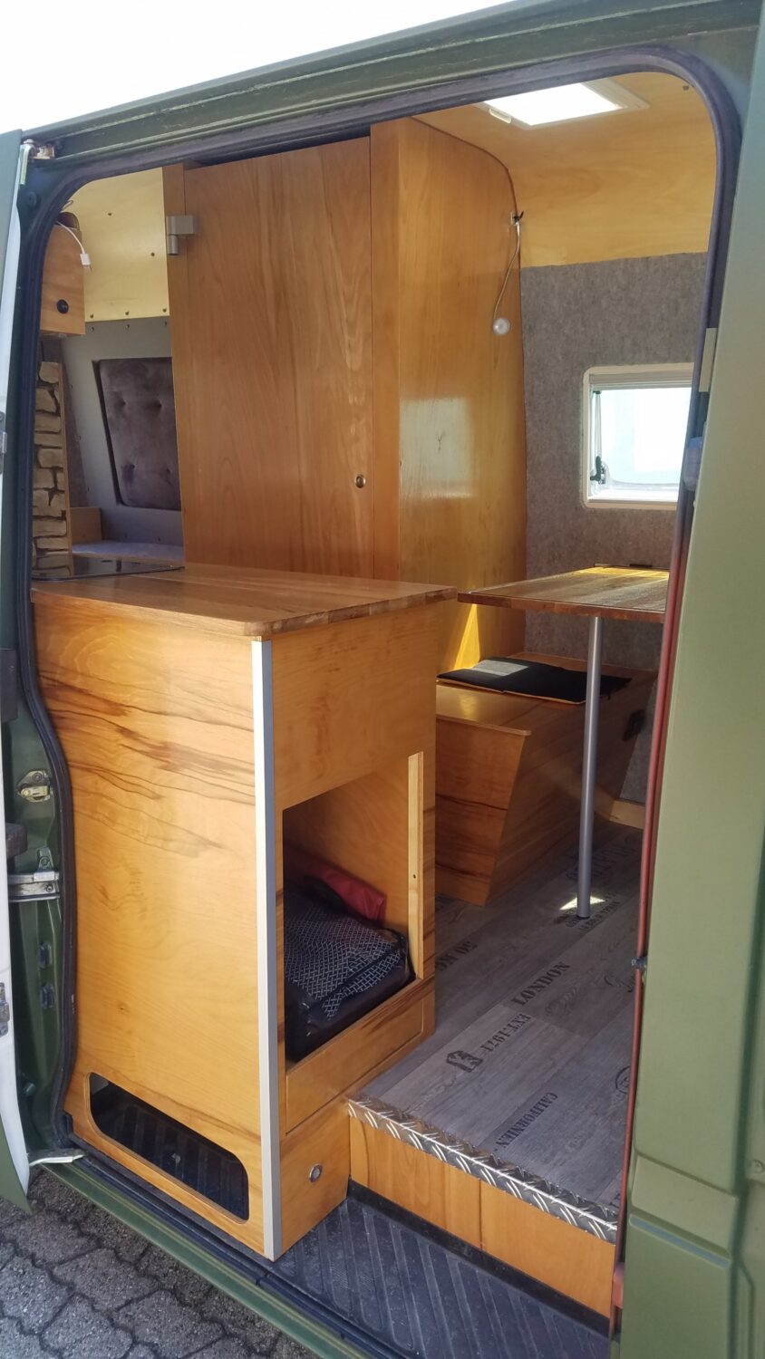 Für den Ausbau habe ich jetzt 2 Jahre gebraucht, Der Camper hat eine Dusche und entspricht im großen und ganzen den Kauffertigen Modellen. Abwassersystem was ein freies Stehen überall erlaubt ( Städten usw.) Großer Frischwassertank 110l mit passenden Abwassertank. Ladefunktion der Boardbatterie über Land und Sonnenernergie sowie Lichtmaschine. Stolz bin ich auf das gesamt Objekt mit seinem Holzlook. Kosten : Sprinter 4000€ Umbau und Zubehör 4500€