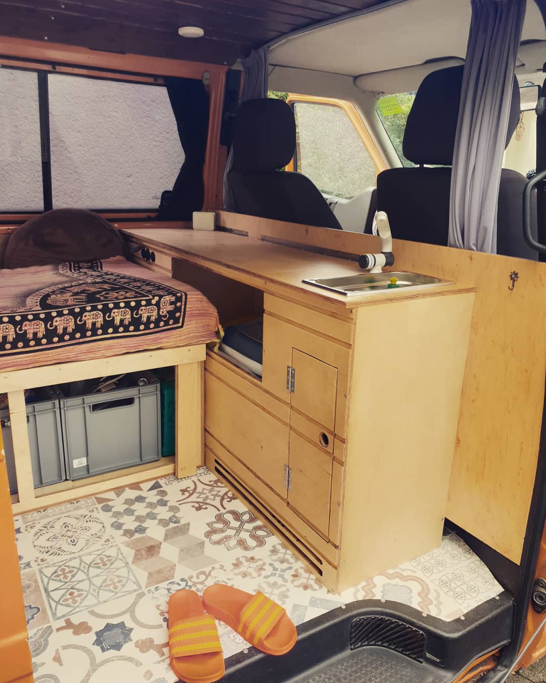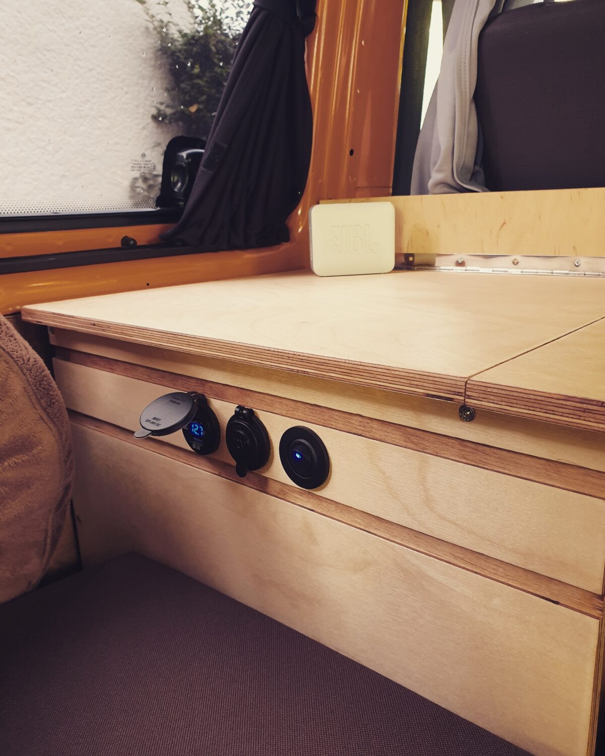 Hallo zusammen :) Wir (Marcel & Jaqui) haben etwa etwa ein bis zwei Monate nur für unseren Ausbau gebraucht. Alles wurde neben dem normalen Job gemacht. Bis zum Ausbau wurde die Basis fit gemacht... Karosserie, Motor usw. Zum Glück kein Rost. TÜV war auch easy. Es wurde erst anständig enddröhnt, isoliert und dann verkleidet. Die Elemente (Bett, Schrank usw) sind aus 12mm Multiplex welches mehrfach geschliffen und geölt wurde. Zur Stromversorgung - sehr einfach! Zweite Batterie, Batteriewächter, Umwandler, Sicherungen usw.. Anschlüsse haben wir für unsere Dometic Kompressor Kühlbox, 12V Tauchpumpe und Anschlüsse zu laden unserer Handys usw. Nach dem Ausbau und den ersten Reisen haben wir unseren Jimi dann auch vom TÜV offizeil als Wohnmobil eintragen lassen. Weitere Infos / Dokumentation zum Ausbau findet ihr bei Instagram (Jimi_t4) High five Marcel