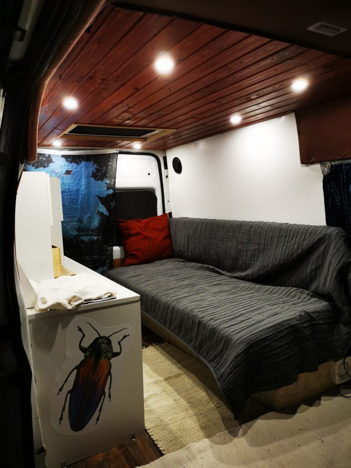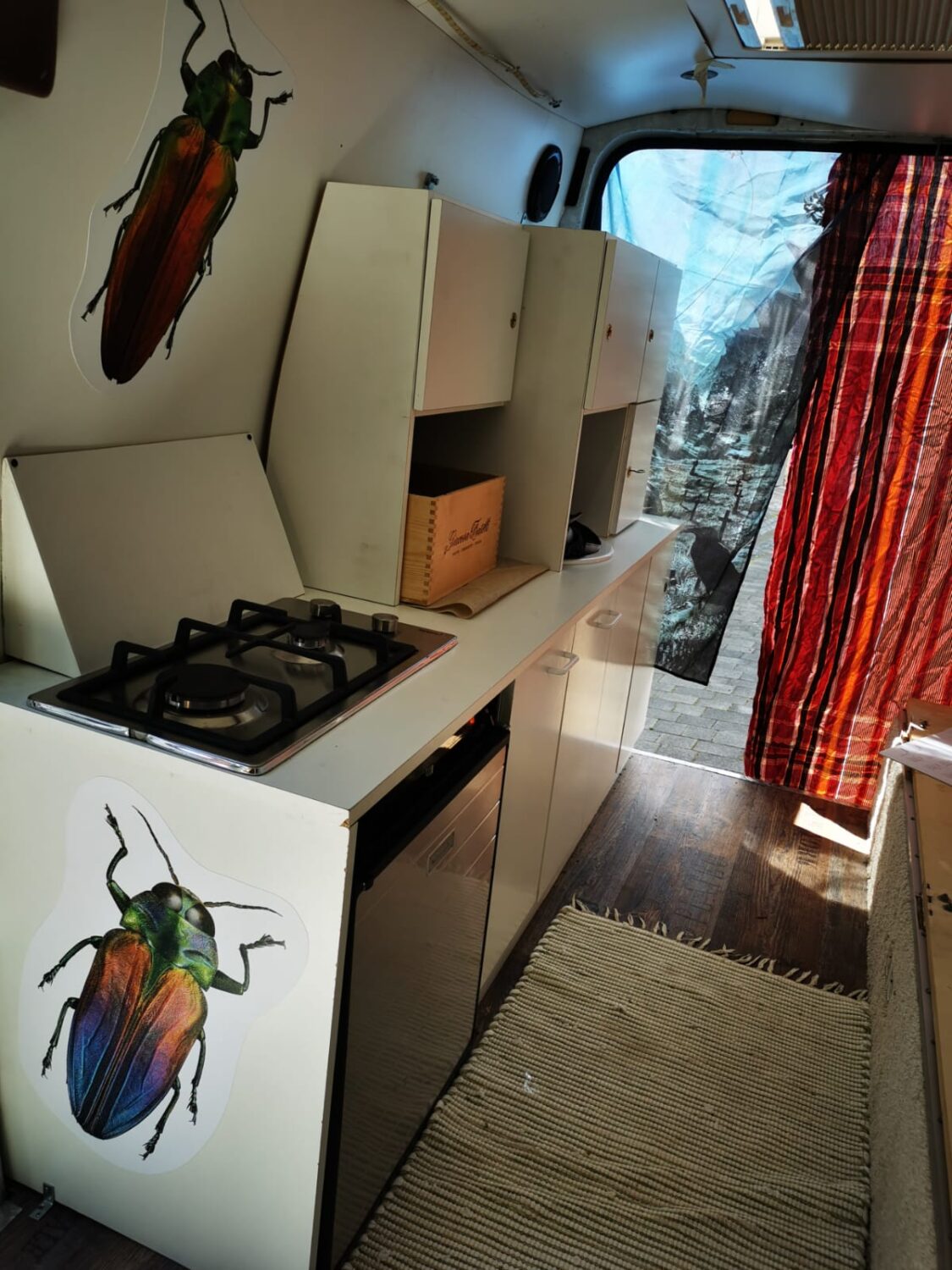 2016 haben wir uns, damals noch zu zweit, entschieden selbst einen Van auszubauen. Leider war da viel jugendlicher Leichtsinn dabei. Das Grundfahrzeug erschien preiswert, zeigte doch leider schnell Mängel auf. Die wurden aber mit viel Geduld behoben und seitdem wird immer weiter optimiert und verschönert. Die Kühe beinhaltet fließend Kaltwasser sowie eine Gasanlage für 2 Platten Herd und Kühlschrank. Das Bett ist zur zeit noch klappbar, soll aber in nächster Zeit umgebaut werden zum Ausziehbett. Hansi ist unser erster Eigenausbau und hat uns viel zeit und Nerven gekostet aber wir durften dabei wahnsinnig viel lernen.