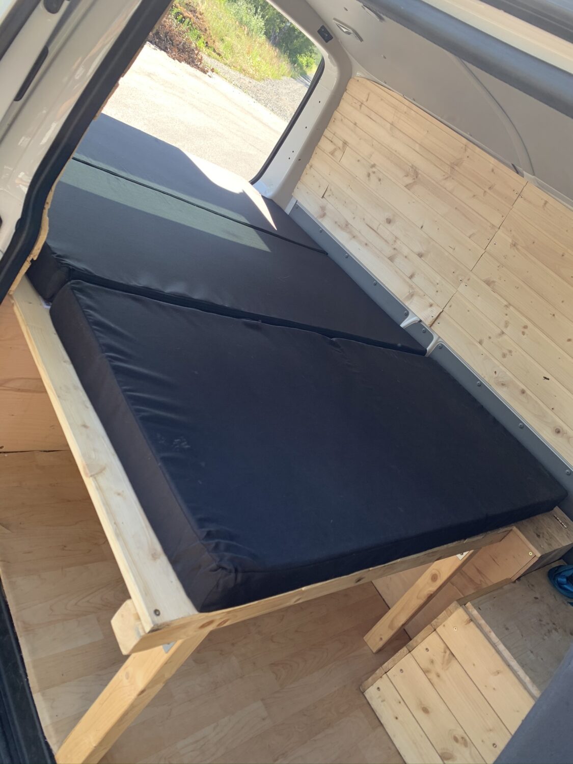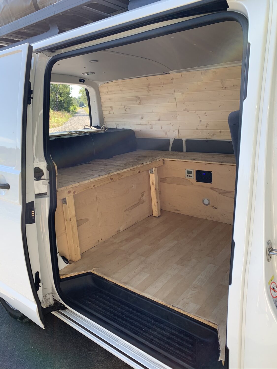 Der Ausbau hat zirka 6 Monate gedauert, verbaut ist eine Solar-Anlage, Dachzelt, 2 Dachkisten, 1 Wassertank, sowie ein Auszug mit Küchenmaterialien. Im Van gibt es ein Bett zum Ausziehen.