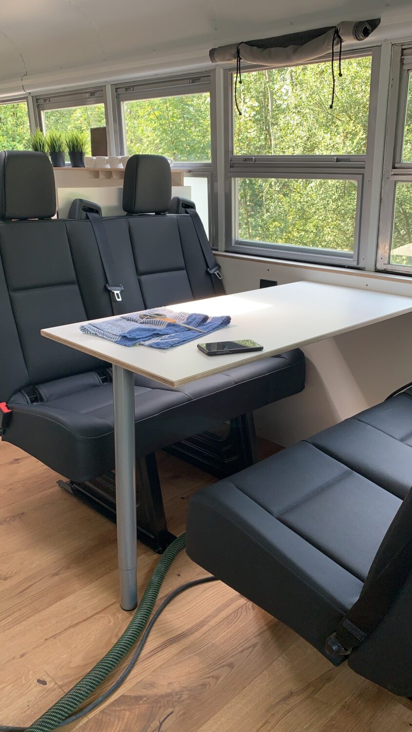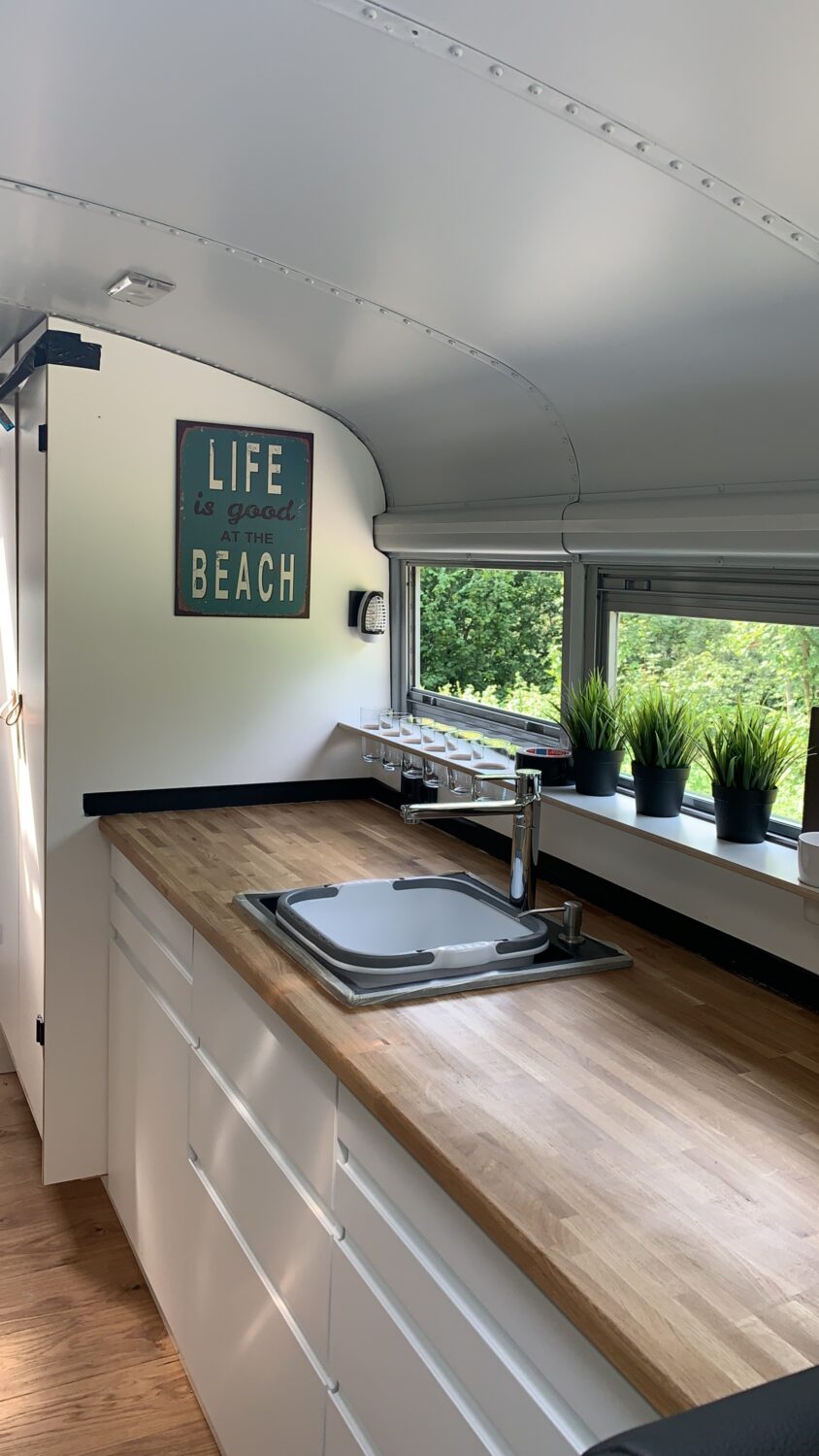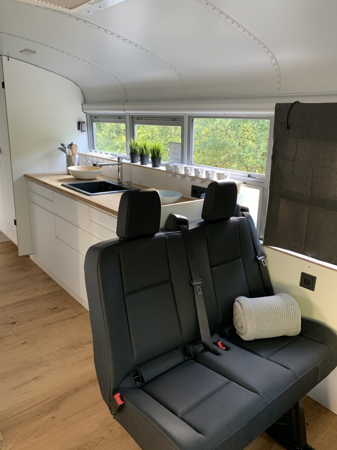 Wir haben Raymond am 06.06.2020 gekauft und bauen ihn seit dem 12.06.2020 zum Wohnmobil aus. Es wurde ein Eichenparkett verlegt und im Bad sind handlasierte, spanische Fliesen angebracht. Die Möbel und Wände haben wir aus Birke-Multiplexplatten gebaut. Wir haben eine Klimaanlage, jeweils 300 Liter Frisch- und Grauwassertanks. Verbaut wurde auch ein 125 Liter Gastank. Besonders stolz sind wir auf seine Farbe, ähnlich Porsche Kreide, und den vielen kleinen Details ebenso der Automatisierung. Man weiß nicht wo man anfangen und aufhören soll 😊