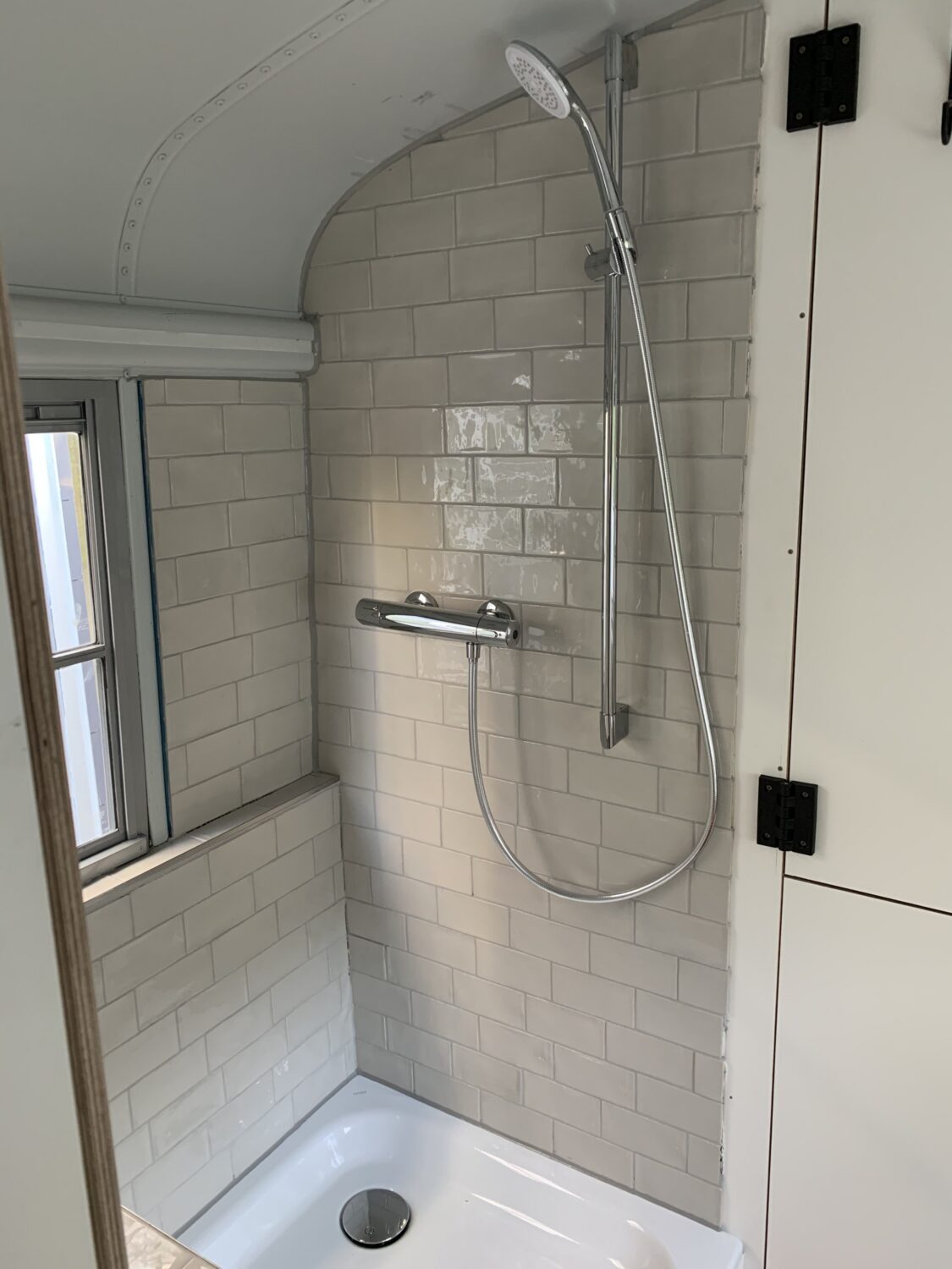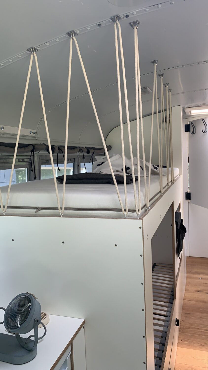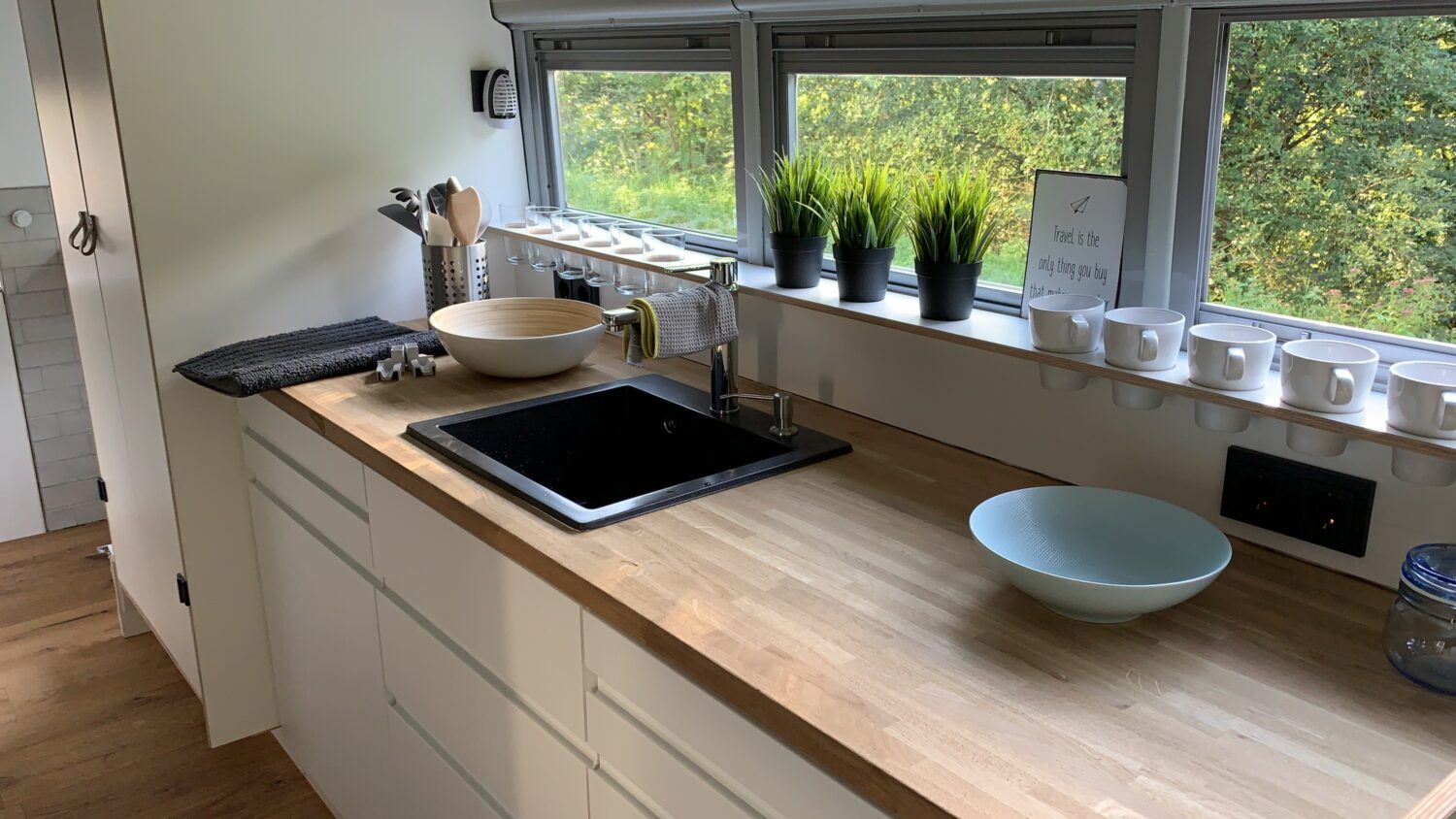 Wir haben Raymond am 06.06.2020 gekauft und bauen ihn seit dem 12.06.2020 zum Wohnmobil aus. Es wurde ein Eichenparkett verlegt und im Bad sind handlasierte, spanische Fliesen angebracht. Die Möbel und Wände haben wir aus Birke-Multiplexplatten gebaut. Wir haben eine Klimaanlage, jeweils 300 Liter Frisch- und Grauwassertanks. Verbaut wurde auch ein 125 Liter Gastank. Besonders stolz sind wir auf seine Farbe, ähnlich Porsche Kreide, und den vielen kleinen Details ebenso der Automatisierung. Man weiß nicht wo man anfangen und aufhören soll 😊