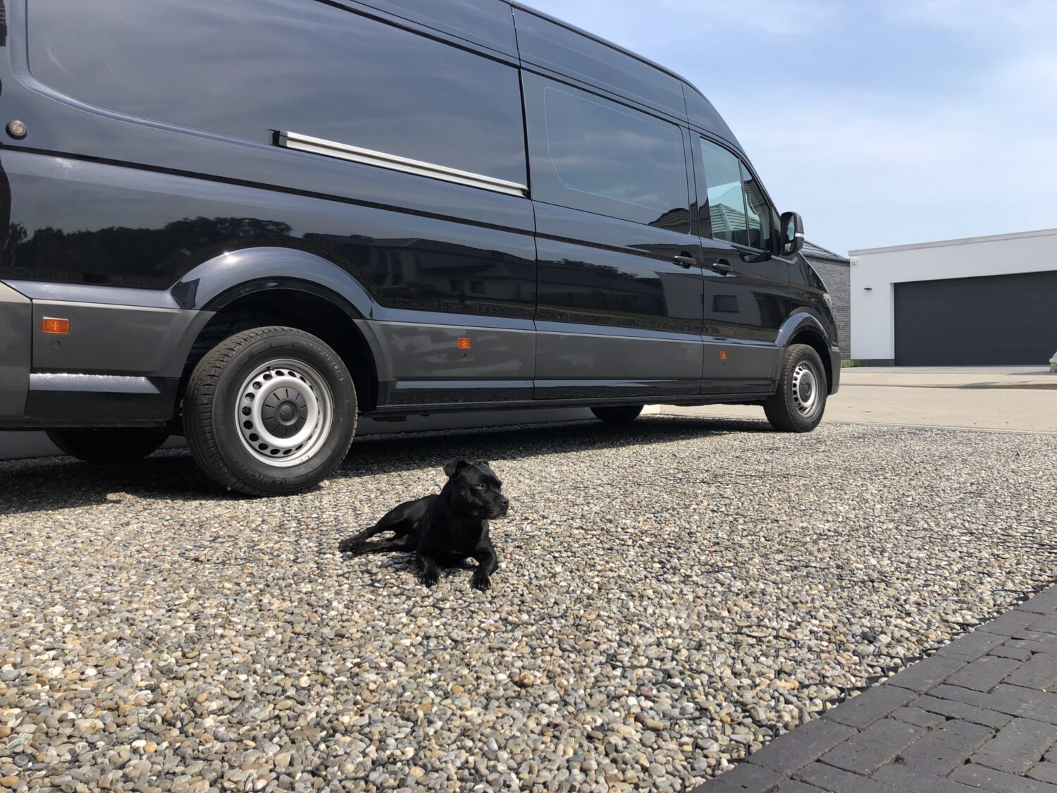 Der Ausbau hat leider noch nicht begonnen - nur die Planungen. Besonders stolz bin ich bisher also nur auf die Basis. Ein langer Crafter in schwarz mit zwei Schiebetüren und 3 Einzelsitzen in der zweiten Sitzreihe - für maximale Flexibilität. Beide Schiebetüren haben Fenster und auch die Hecktüren haben Scheiben.
