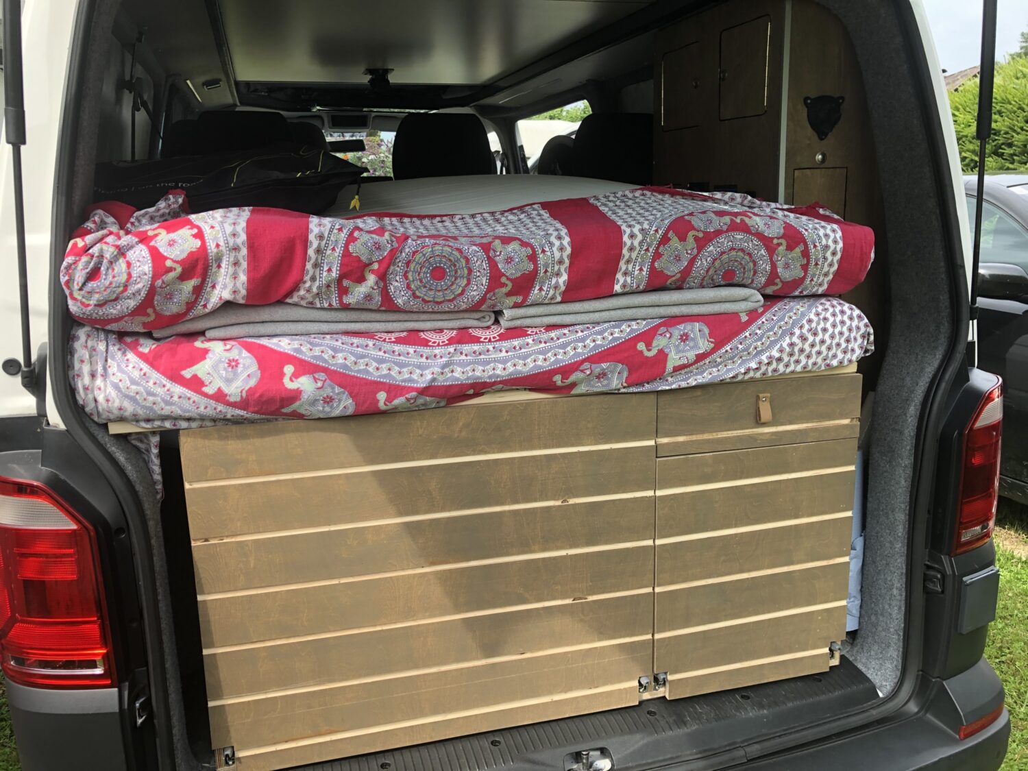 Wir haben uns in unseren Transporter eine 3er Bank und ein Klappschlafdach einbauen lassen. Der erst wurde auf Eigenregie umgebaut. Wir haben auf 2 Betten 4 Schlafplätze, eine Küche, und Solar. Die ganze Story seht ihr auf Instagram freuen uns immer über paar Herzchen oder neue Follower