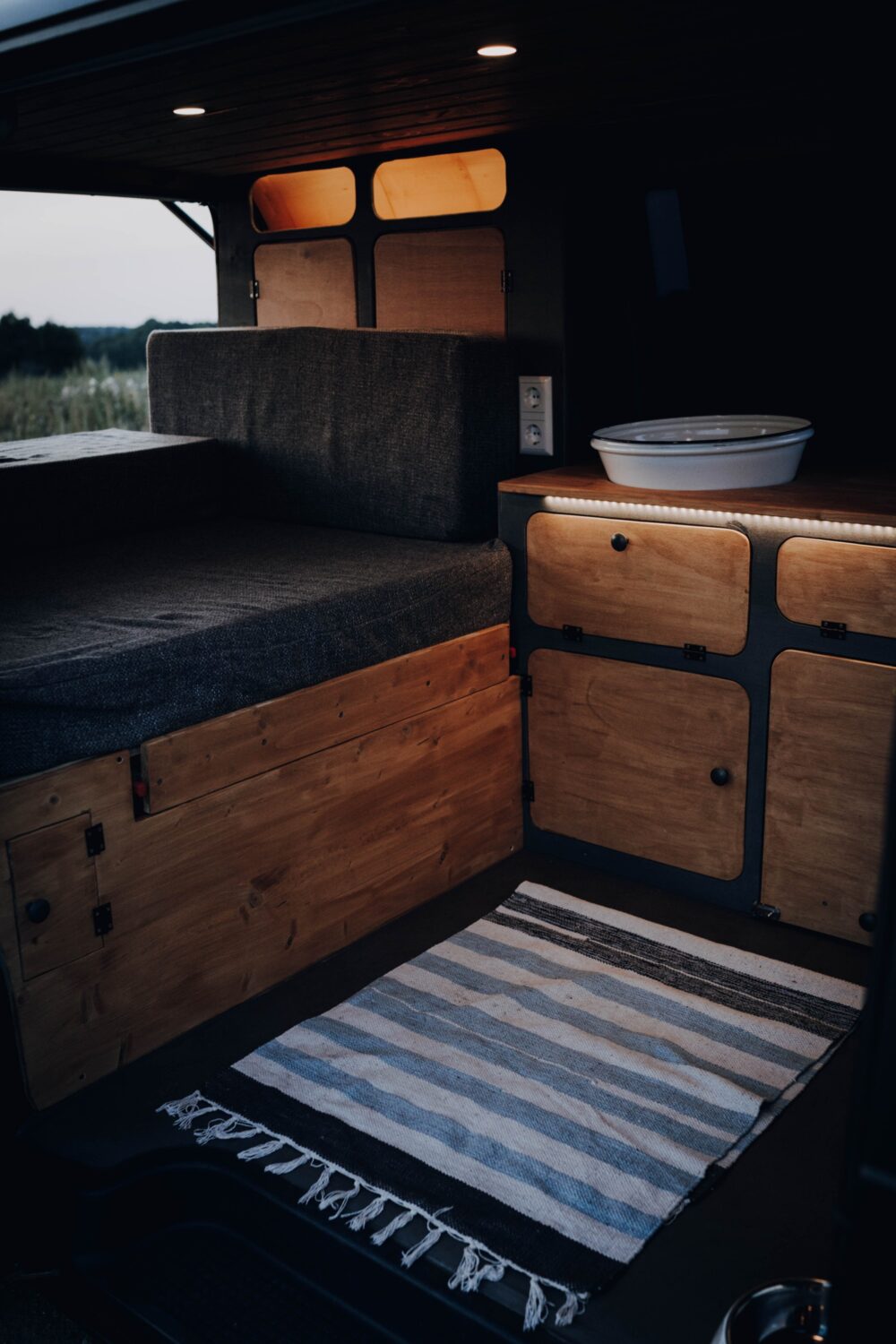 Mal eben schnell..... Der Kapitän ist Eigentlich ein Neben Projekt gewesen. Nach einem Wasserschaden wurde aus dem Multivan ein Vollblut Camper. Statt der MV Ausstattung wurde eine selbst entworfene Womo Ausstattung eingebaut . Ausbau zeit Ca 3 Monate, jeden Tag ohne Pause. Besonders Stolz bin ich auf mein Bett, da unser Hund Silas immer mit dabei ist wollte ich einen Möglichst Platzsparenden Auszug haben so kamen 300Kg Schwerlastauszüge ins Spiel. Siehe da wir haben ein Schwebendes Bett :).