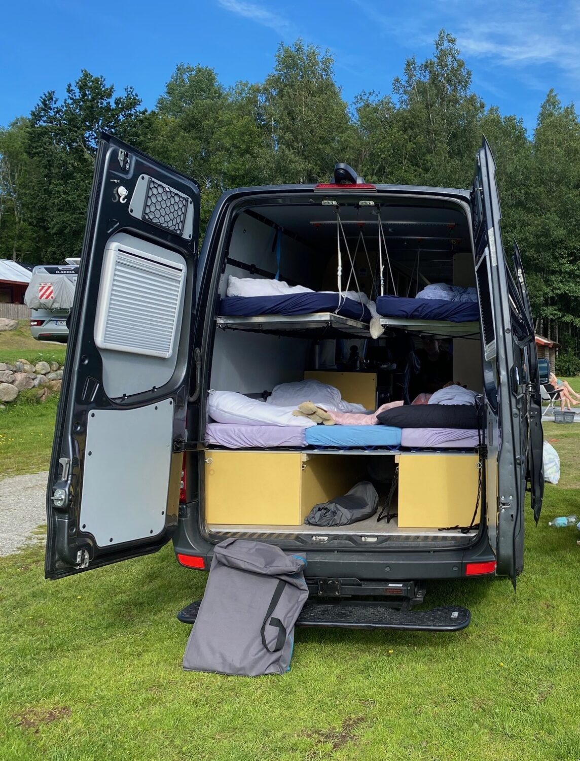 Bei unserer ersten Version waren wir gezwungen, alles in 3 Wochen umzusetzen, da wir Gert erst 3 Wochen vor Urlaubsbeginn gekauft hatten. Das Hauptproblem war dabei das ganze Material so kurzfristig heran zu schaffen, einzubauen... und die Elektrizität... meine Frau steht auf Kaffee. Ohne geht nix. Wir brauchten also dringend schnell heißes Wasser. ... und die nächste große Herausforderung war und ist Platz für 2 Erwachsene und 3 Kinder zu schaffen. Spielzeug, Klamotten, Schlafplätze... Aber: wir haben es hingekriegt! 5 Betten, Küche, Kühlschrank, Ablagen, Elektrizität! ...und da nach dem Urlaub = vor dem Urlaub ist, arbeiten wir jetzt an Version 2.0.