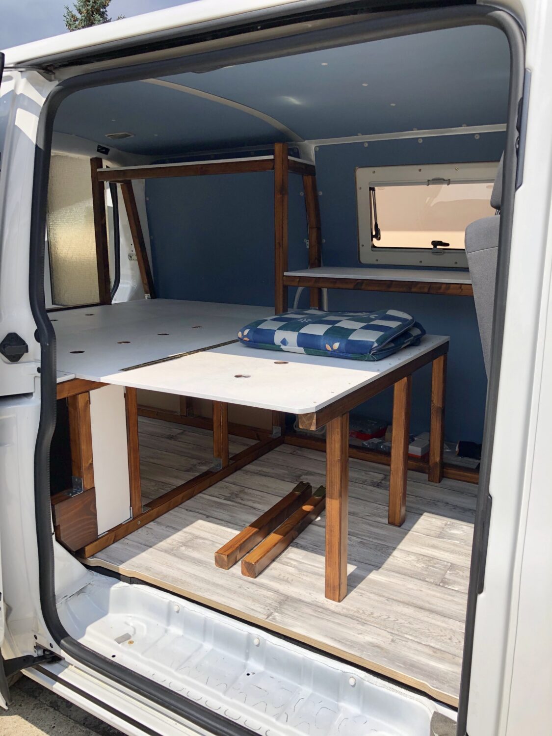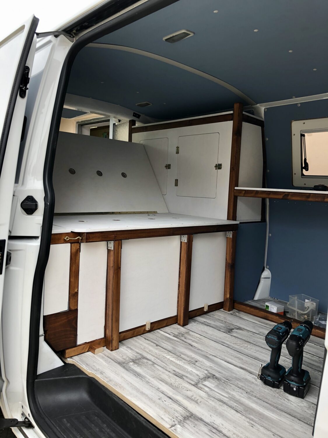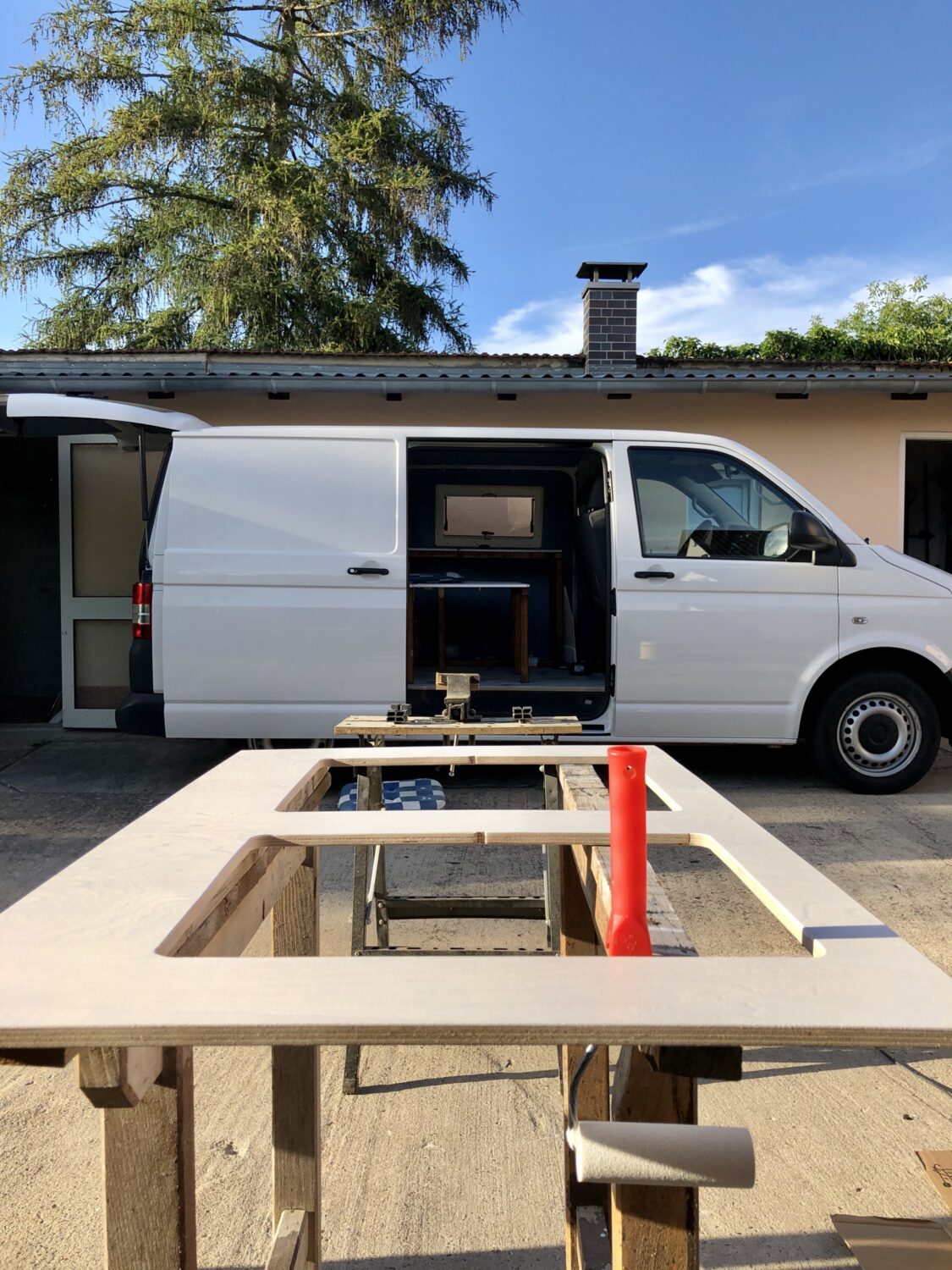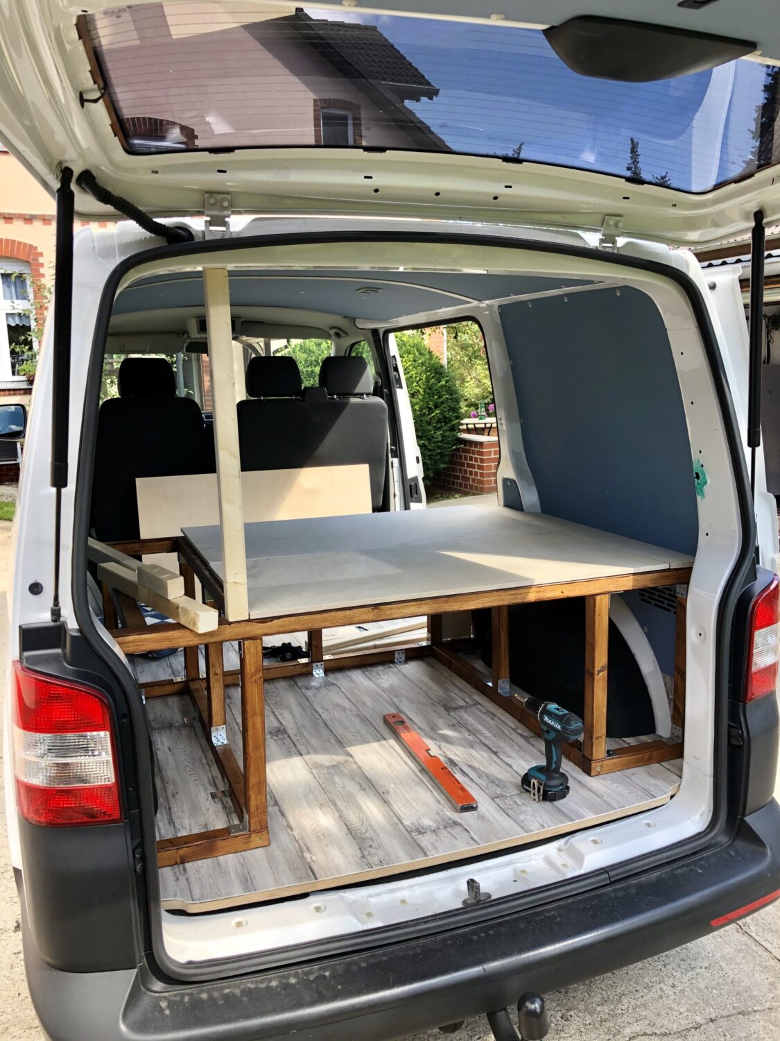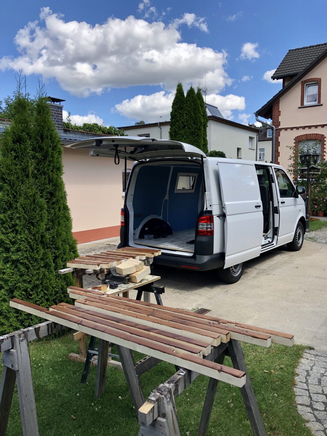 Der Ausbau hat nicht gedauert - er dauert noch immer. Ich habe den Bus erst nach über zehn Jahre nach Entstehung der Idee endlich gekauft und dieses Jahr im Sommer meine beiden Urlaubswochen für den Beginn des Ausbaus genutzt. In dieser Zeit ist die komplette Dämmung, ein neuer Boden, ein Ausstellfenster sowie der Möbelausbau, bestehend aus Klappbett und Schränken, fertig geworden. Noch in der Mache ist die Dachterrasse, der Heckauszug für die Küche und andere "Kleinigkeiten"... Echt stolz bin ich darauf, dass ich den Umbau zum größten Teil allein bzw. an entscheidenden Punkten mit Hilfe meines Vaters durchziehen konnte und trotz der projektüblichen Stolperfallen dennoch alles in etwa so geklappt hat, wie ich es mir vorgestellt habe. Die Kosten habe ich noch gar nicht überschlagen, allerdings hält es sich gefühlt noch echt im Rahmen, da ich den Ausbau eben komplett selbst gemacht habe und dabei vor allem Wert auf Funtionalität gelegt habe.