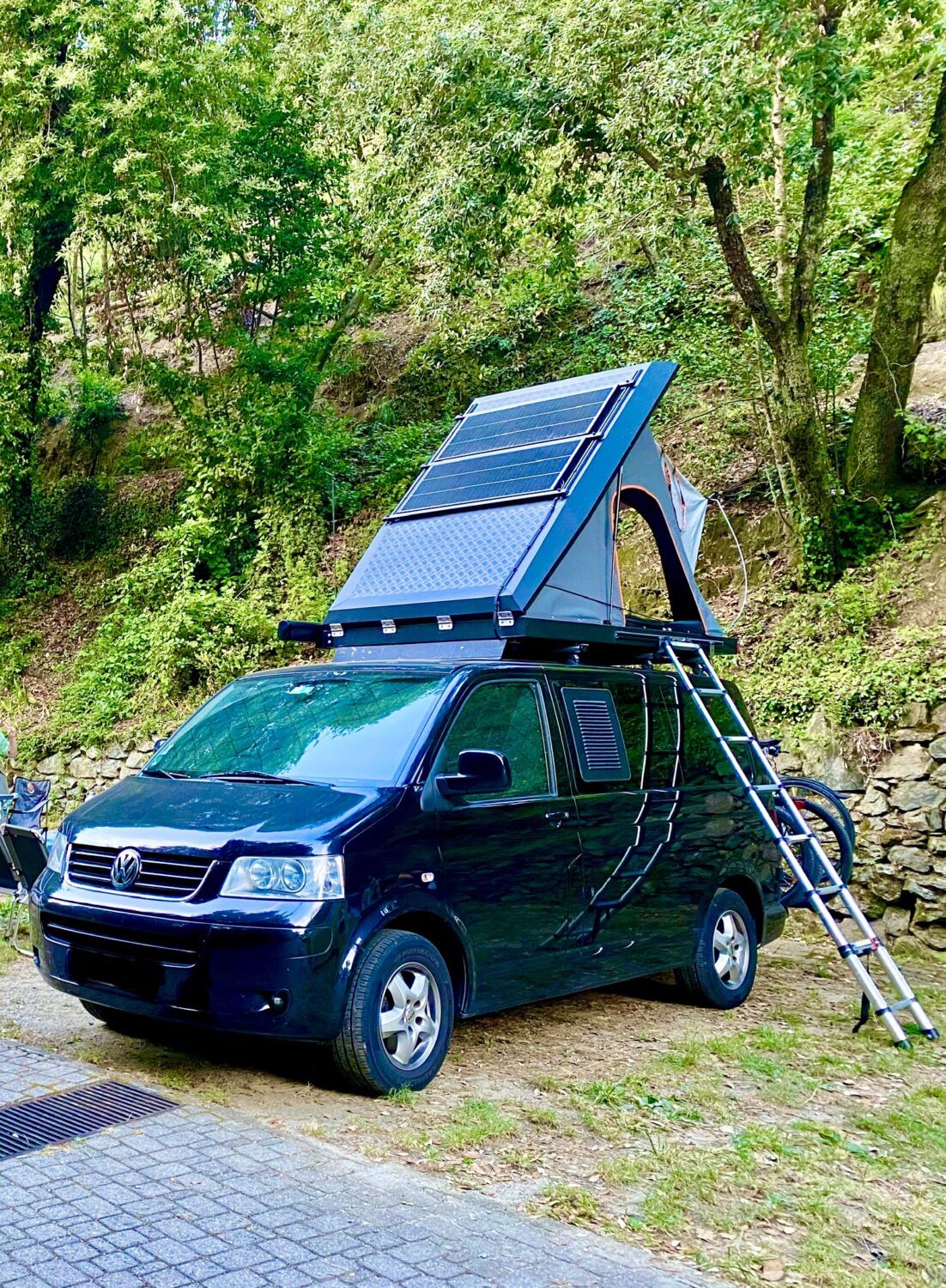 Dachzelt AluCab Expedition 3 Markiese Thule Omnistore 200W Solar mit Victron SmartSolar 75/15 Wohnraumbatterie mit Trennrelais Landstrom mit Fi und Schaudt Ladegeräte Luftstandheizung CB Funk Kompressor Kühlbox Mobicool FR40 Seitenauszug für Kühlbox Tisch und Drehkonsole für Beifahrersitz Heckbett mit Lattenrost 150x200 Ausziehbar mobile Dusche AHK Fahrradträger für 4 Fahrräder Auflastung auf 3250kg 2-8 Sitze möglich