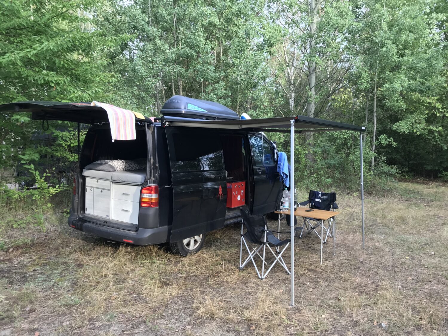 Da mir immer wieder etwas neues einfällt, ist der Ausbau quasi nie abgeschlossen:) Nächstes Projekt: Trennwand entfernen und neue Sitze einbauen. Geduscht wird bei uns aus dem Rohr außen am Bus!