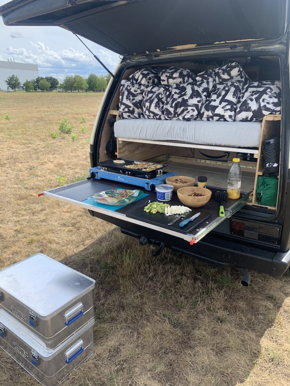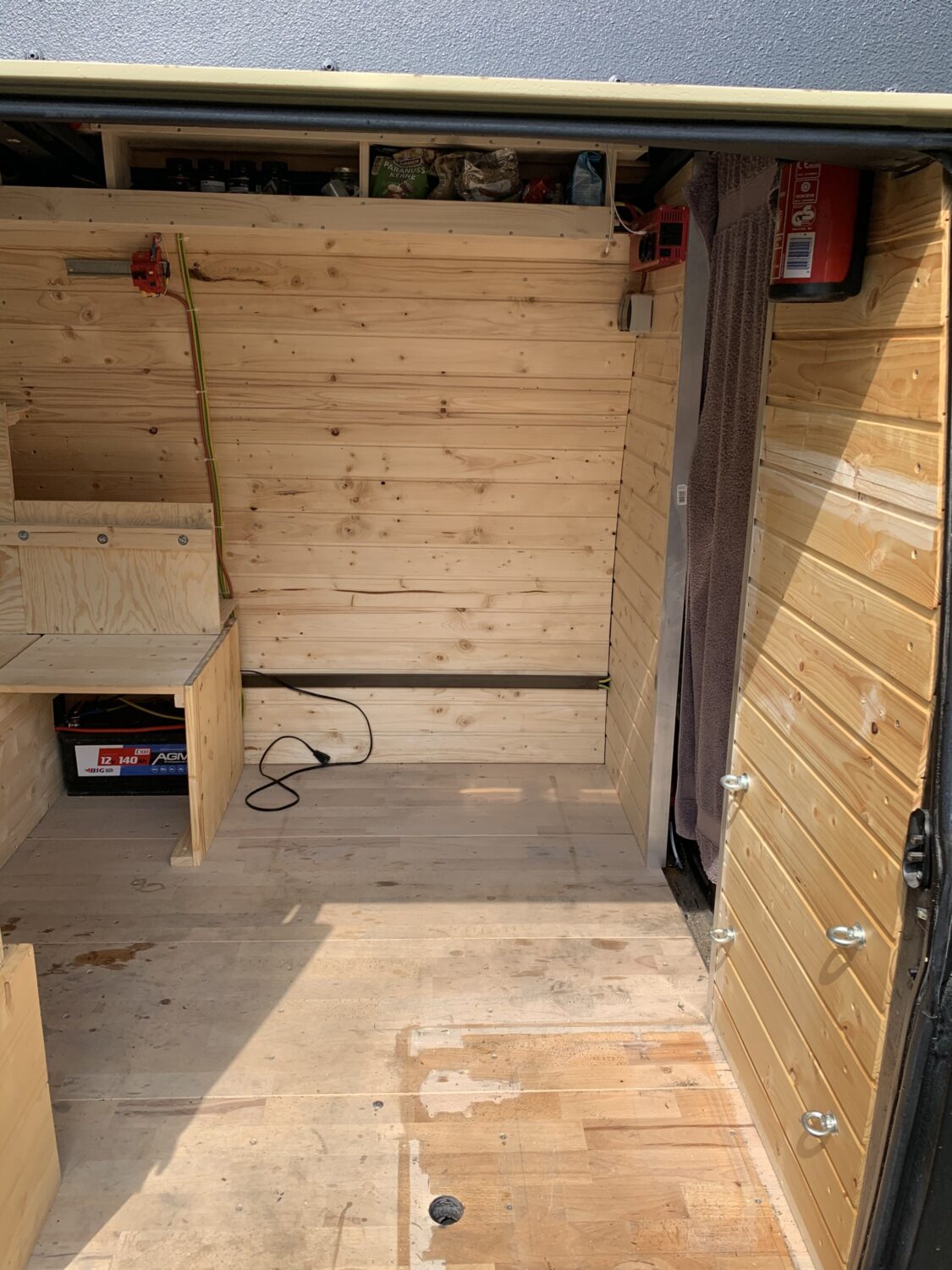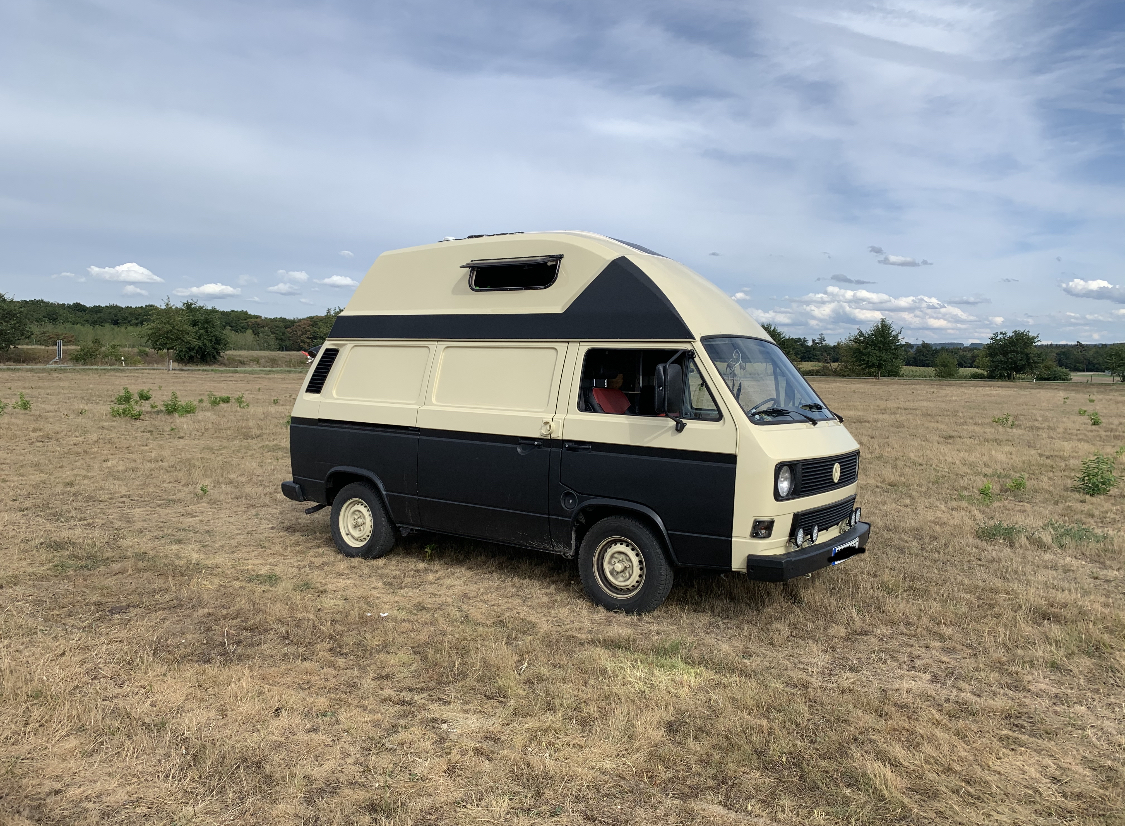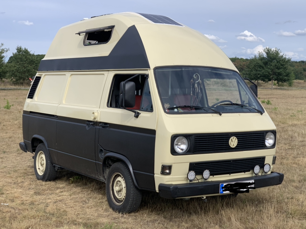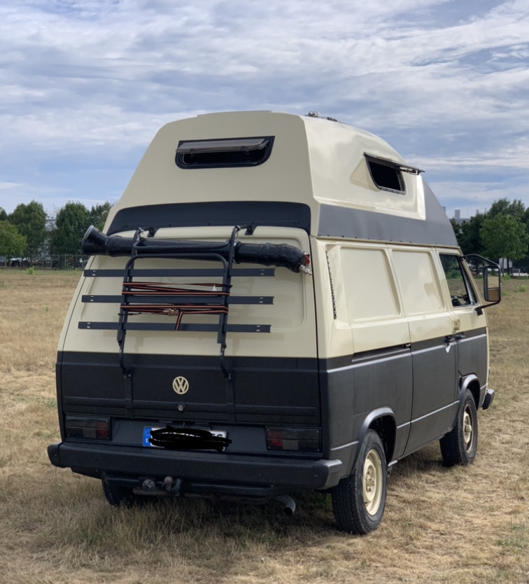 Hey zusammen. “” Der Ausbau inkl. Dachaufbau, Lackierung & Instandsetzung hat knapp ein Jahr gedauert. Alle Elemente sind so gebaut, dass sie jederzeit ausgebaut oder abgeändert werden können. Daher ist ein spontaner Umbau immer möglich. Durch die 3 Fenster im Dachaufbau gibt es immer genug Luftzirkulation. Zudem ist der gesamte Bus mit 19mm Armaflex XG isoliert & selbst bei heißen Temperaturen ist es im Bus gut auszuhalten. Falls es jedoch doch mal etwas zu warm werden sollte, befindet sich eine solarbetriebene 75Liter Kühlbox von Wemo im Van deren Fächer flexibel aufgeteilt werden können auf Kühl- & / oder Gefrierfach. Somit steht immer eine Abkühlung bereit. Das Wasch-/Spülbecken ist mit einem 30Liter Frischwassertank ausgestattet. Mit Hilfe einer Fußpumpe wird das Wasser in den Wasserhahn gebracht. Das Abwasserrohr führt direkt unter den Bus in einen 45Liter Grauwassertank. Am Gepäckträger ist ein Rohr montiert in dem 10Liter Wasser Platz finden, z.B. zum duschen oder einfach nur kurz abwaschen. Im Kofferraum befindet sich unter dem Bett eine Konstruktion aus Schwerlastschienen & einer 21mm starken Holzplatte. Diese dient während der Fahrt als Stauraum, kann aber bei Stopps auch ausgezogen & zur Kochstelle oder zum Outdoor Bett umfunktioniert werden. Weiteren Stauraum bietet die Fläche über der Fahrerkabine & die installierten Regale bzw. Fächer im Bus. Das Bett ist umbaubar, sodass eine Sitzgelegenheit entstehen kann. Auf dem Dach sind 2 Solarpanel mit 200 Watt verbaut, zur Überprüfung gibt es im Bus den Bluetooth Charge Controller MPPT 75|15. Durch die Solaranlage werden die beiden AGM Batterien im Innenraum geladen. Zusätzlich gibt es noch einen Landstromanschluss. Elektronische Geräte wie Handy, Laptop, etc. können über den Spannungswandler geladen werden. Selbst der Reiskocher oder Maschinen wie z.B. eine Stichsäge laufen ohne Probleme über den Spannungswandler. Durch Solarenergie & die Wassertanks besteht die Möglichkeit ein paar Tage autark zu sein.