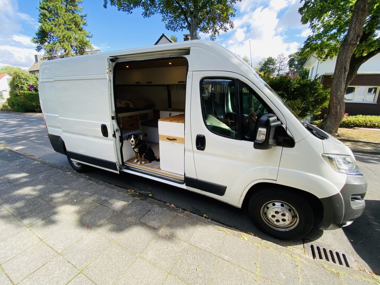 Der Bus selber hat 10 tausend gekostet, für den Ausbau haben wir nochmal ca. 9-10 tausend zusätzlich bezahlt. Wir sind sehr stolz auf die ganzen Holz Verkleidungen, die Tisch Auszüge, hinten haben wir Schwerlastauszüge drin, und einen ausziehbaren Tisch zum Entspannen an der frischen Luft :)