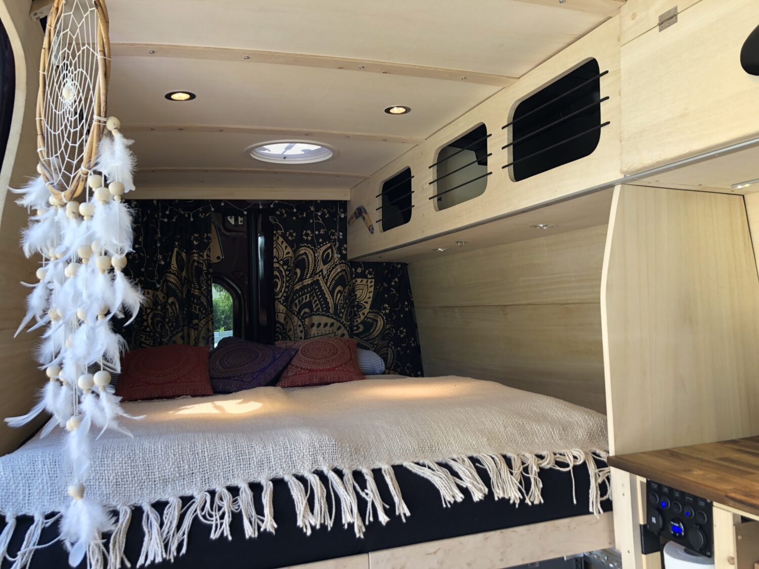 Selbstausbau in drei Monaten - ganz fertig ist er aber noch nicht :) Vorwiegend mit Paulowniaholz dadurch sehr leicht (2,7T leer) Bett ist klappbar dadurch bleibt ein enorm großer Laderaum erhalten, was aus Hobbygründen für uns maßgeblich beim Layout war. 100Ah Lithium, 150W Solar, Spüle und Kompressor-Kühlbox.