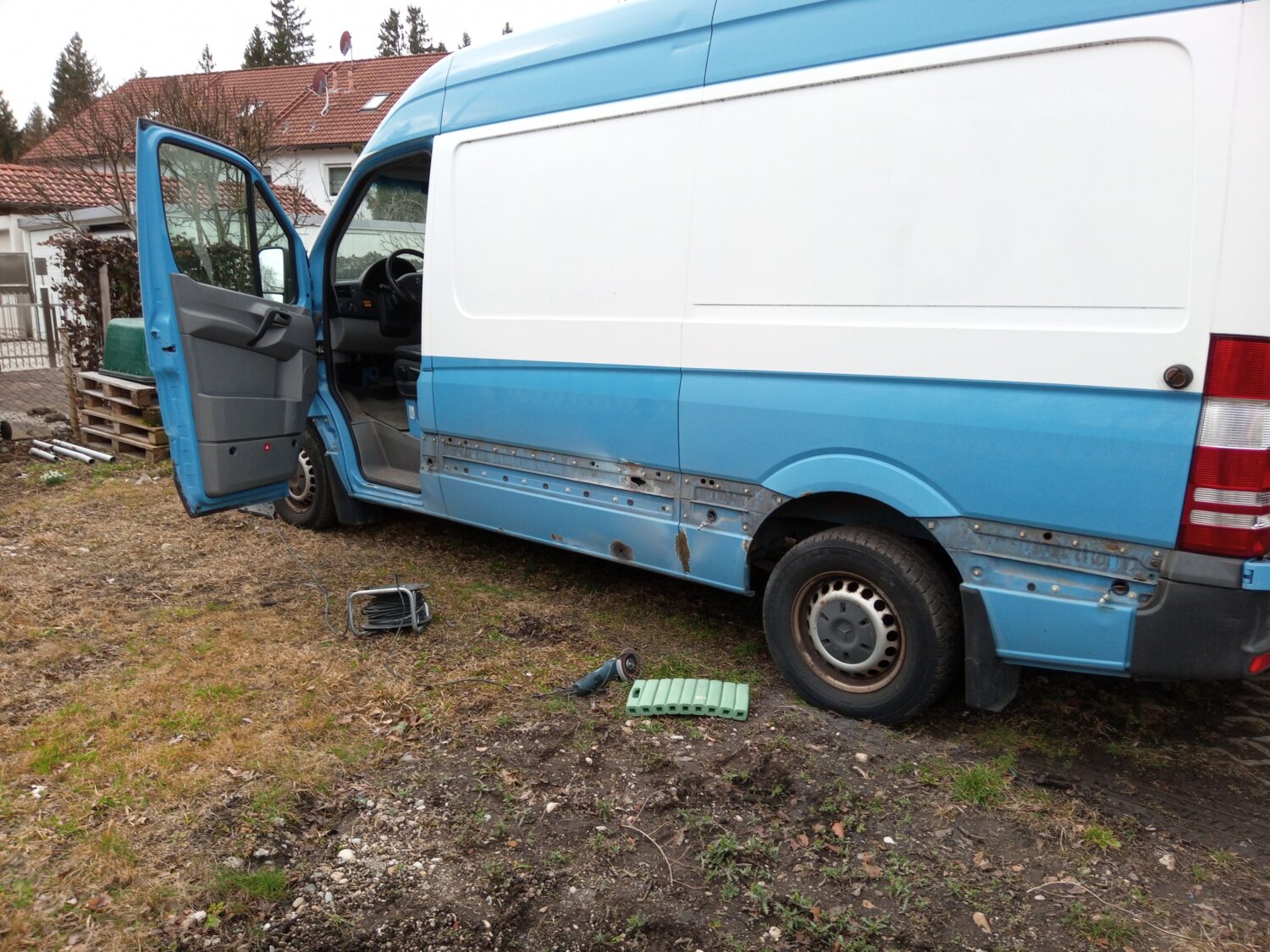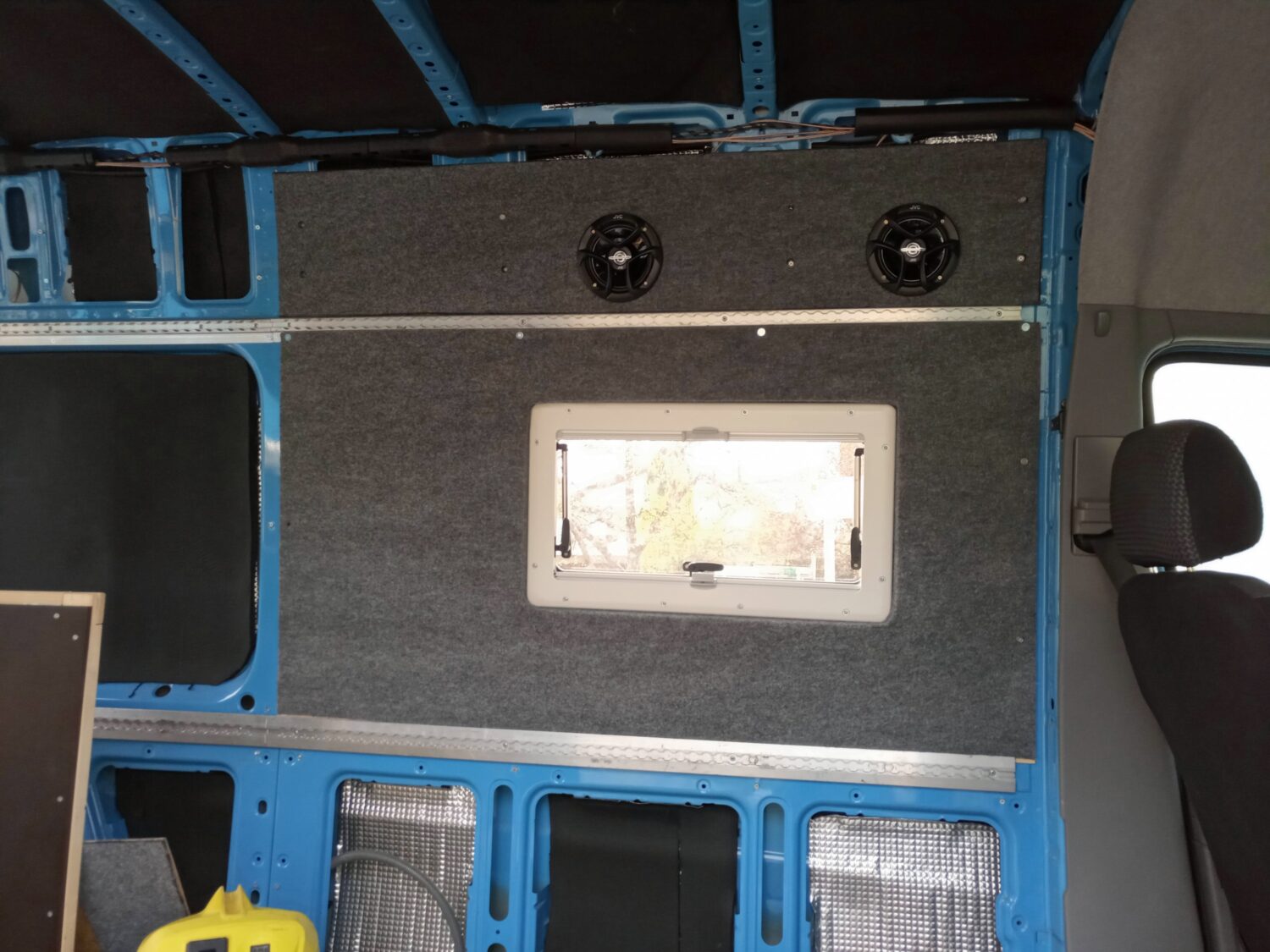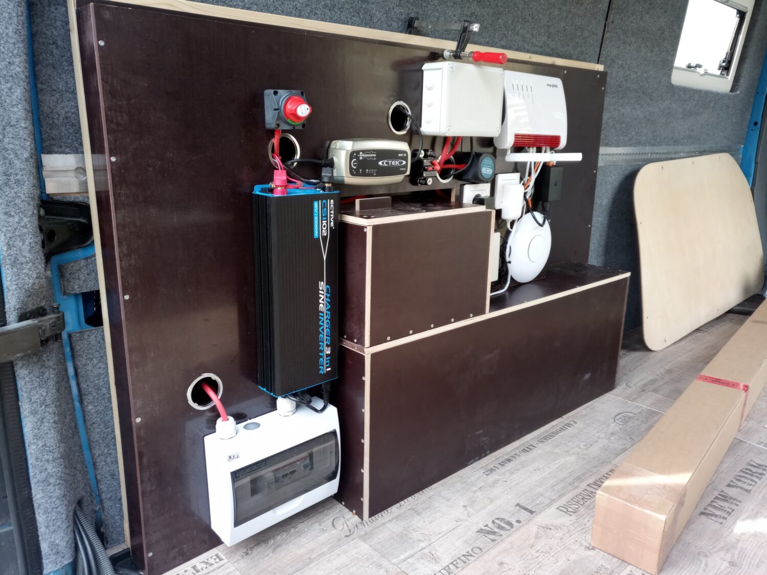 Insgesamt der dritte Bus den ich ausbaue, die ersten beiden waren VW Bullis (T5). Nachdem wir zukünftig zu dritt reisen werden, musste das Auto nun wachsen. Meine Philosophie für den Umbau. 80 % des Umbaus brachen 20% Zeit, die restlichen 20 % mach ich nicht…. Plan: Da das Auto auch für den ein oder anderen Tag „Home--Office herhalten muss, hab ich mich sehr mit der Technik gespielt. Fest verbautes WLAN und Smart Home Steuerung ist für mich aufgrund meines Berufs kein Problem. Vorbereitung für Beamer etc sind bereits eingeplant Wir stehen auf Camping Plätzen, habe also immer Strom (230V), somit kein Solar. Für die kalten Tage ist eine elektrische Fußbodenheizung als Wandheizung zweckendfremdet worden und bietet somit zwischen 5-15 C ein angenehmes Klima. Alles unterhalb hätten wir noch eine 5,5 KW Standheizung (ich frag mich warum diese vom Vorbesitzer eingebaut wurde). Frischwasser, Dusche, Toilette brauchen wir am Camping Platz auch nicht, daher wurde hierauf auch verzichtet. Wir fahren Räder die nicht günstig sind, ich wollte diese daher im Auto haben, eine Garage hierfür ist unter dem Bett. Kosten: Gesamtkosten lagen bei rund 7.000 Euro inkl. Fahrzeug (exkl. Kühlschrank der schon vorhanden war). Auch hier bin ich der Meinung das es sicher besser und schöner geht, aber jeder baut seit Auto und darf das selbst entscheiden. Kommendes Jahr kommen noch andere Reifen und ein Zusatzsitz hinzu (geplante Kosten rund 2.000 Euro). Arbeitszeit: Ich will es nicht wissen das ich es als Spaß und Freizeit betrachte aber ich schätze auf ca. 120 h. Meine Fehler: Mit den Fenstern bin ich nicht zufrieden, diese sind zu klein und falsch positioniert. Das Bett hätte 10 cm niedriger sein können. Ein Dachfenster kommt ggfs. kommendes Jahr noch und das Fenster im Heck würde ich nicht mehr aus Glas nachrüsten.