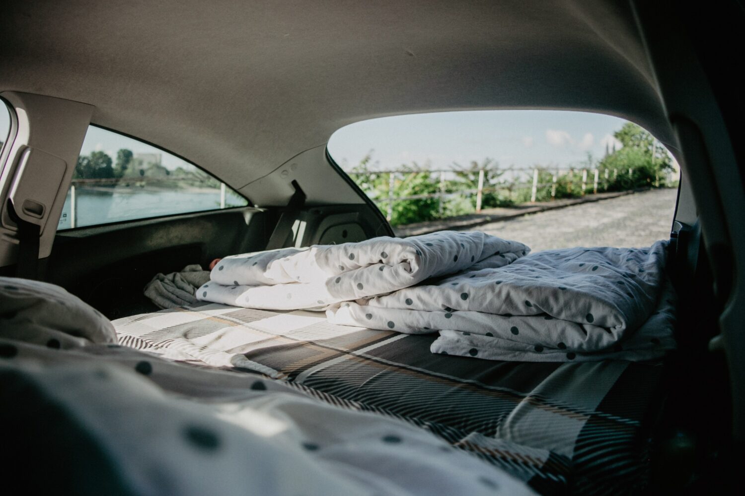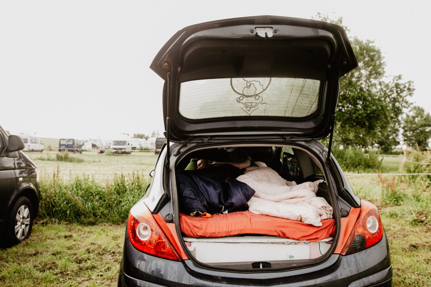 Der Ausbau unserer freeda ging recht zügig, da wir im Vergleich zu großen Vans natürlich auch viel weniger zu tun haben. Trotzdem haben wir alles drin, was wir für kleine und große Reisen brauchen. Neben der Liegefläche, die den meisten Raum einnimmt, haben wir Stauraum im Kofferraum, sowie in unserer Dachbox, einen Tisch, der gleichzeitig das Fußteil unseres Bettes darstellt und viele weitere kleine Extras. Der reine Ausbau unserer freeda hat uns weniger als 100€ gekostet und ermöglicht uns nun Reisen, wann und wohin wir wollen.
