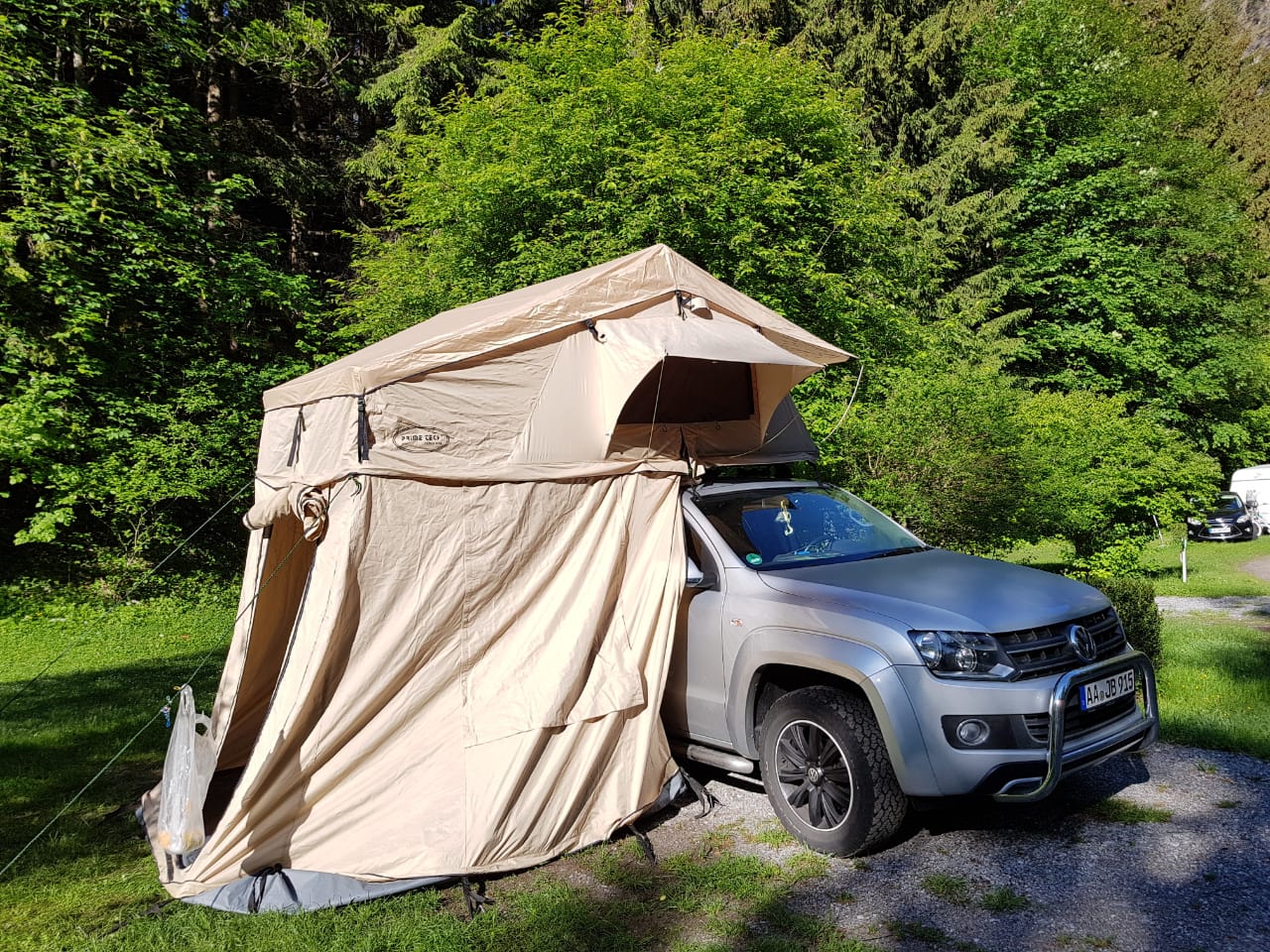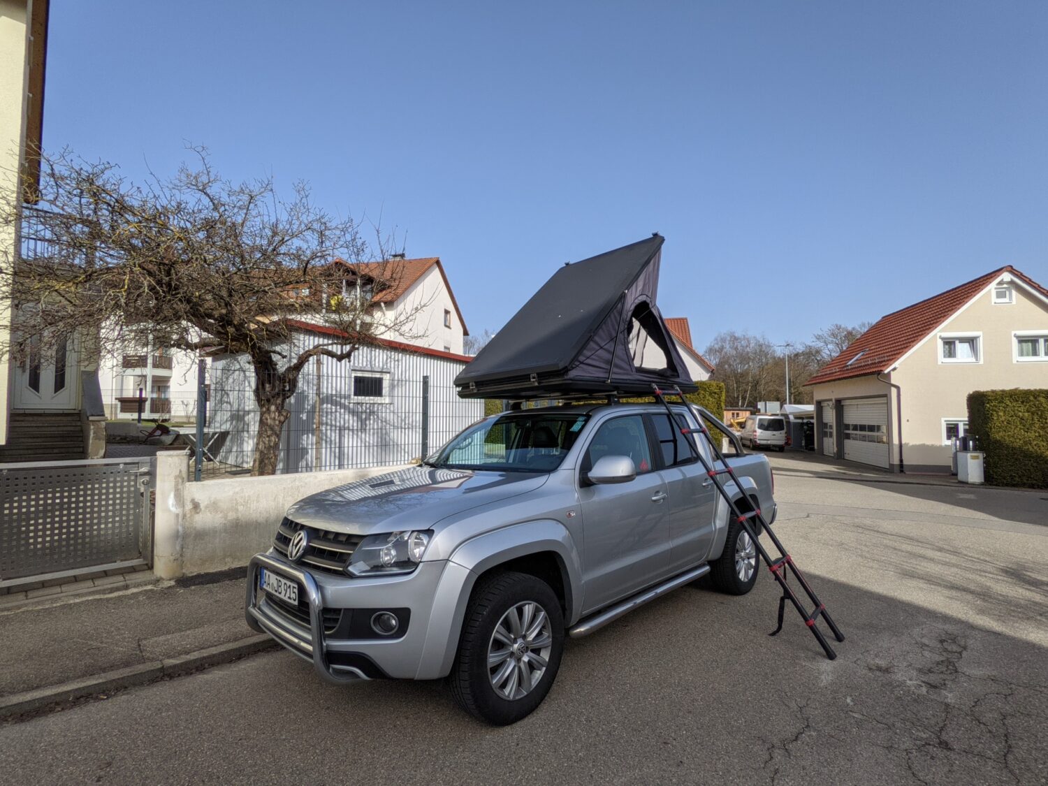 Der Ausbau besteht eigentlich nur aus einem Dachzelt:). Das wird aber in den nächsten Wochen durch ein Alu Hardcover Dachzelt getauscht:) Ansonst habe ich eigentlich nur eine alte PA Transportbox mit dem nötigsten Zeug dabei: Gaskocher, Wasser, Spülzeug, Geschirr und eine 12v Ã°à ¸à ¡Ã¿.