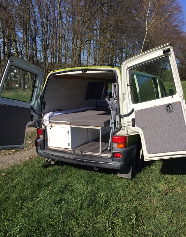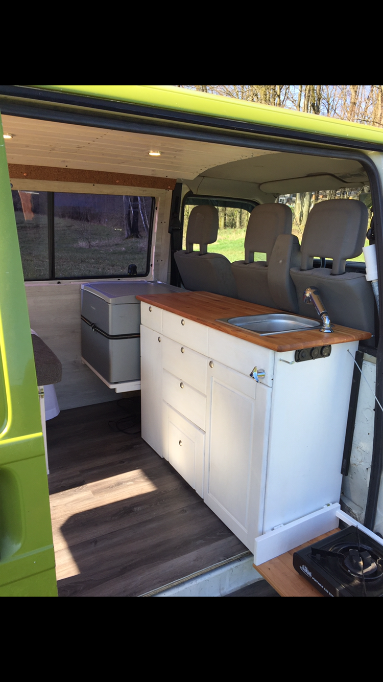 Der Ausbau hat ziemlich genau ein Jahr gedauert. Natürlich haben wir nicht ständig daran gearbeitet. Wir haben versucht so günstig wie möglich weg zu kommen, daher haben wir alte Kommoden als Basis verwendet. Wie lange der Ausbau stabil bleibt wird sich zeigen . Aber dafür, dass wir NULL Erfahrung hatten, sind wir fürs Erste sehr zufrieden 👍