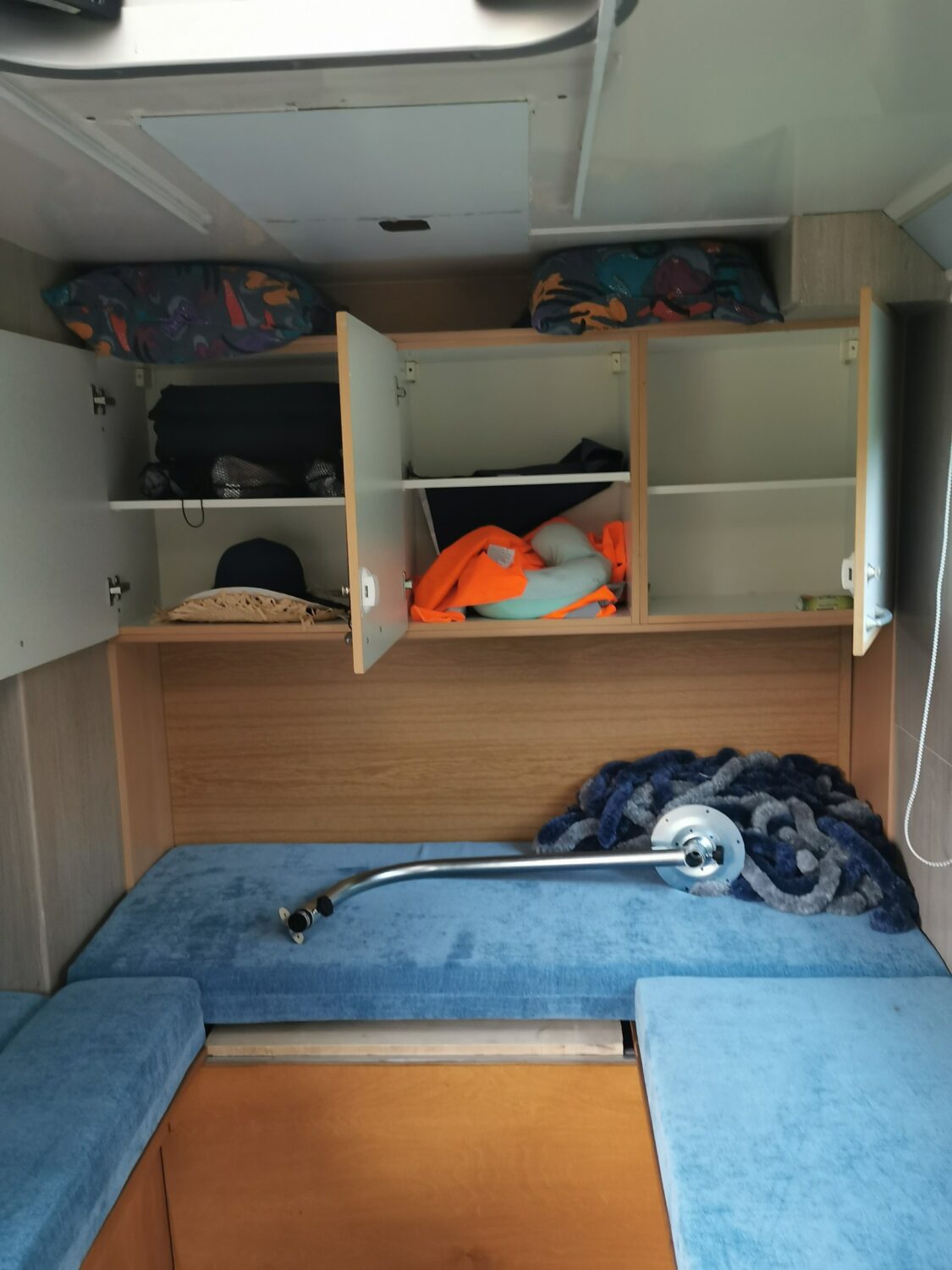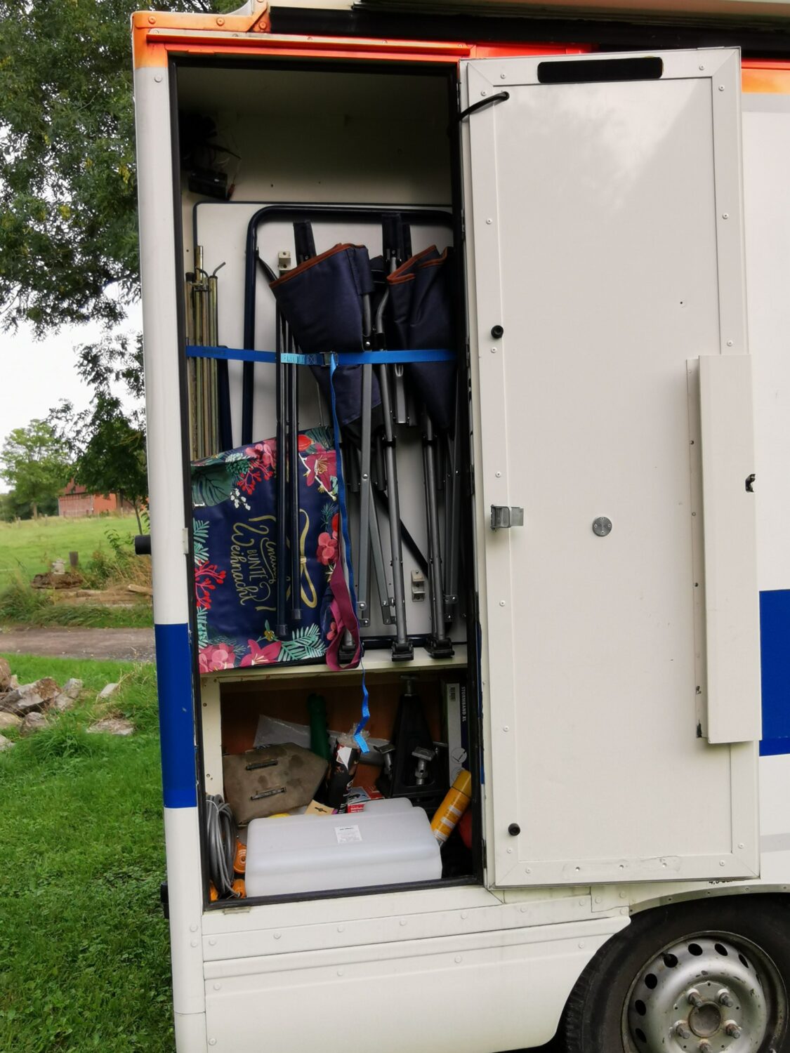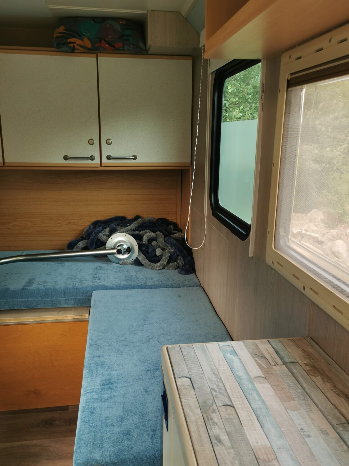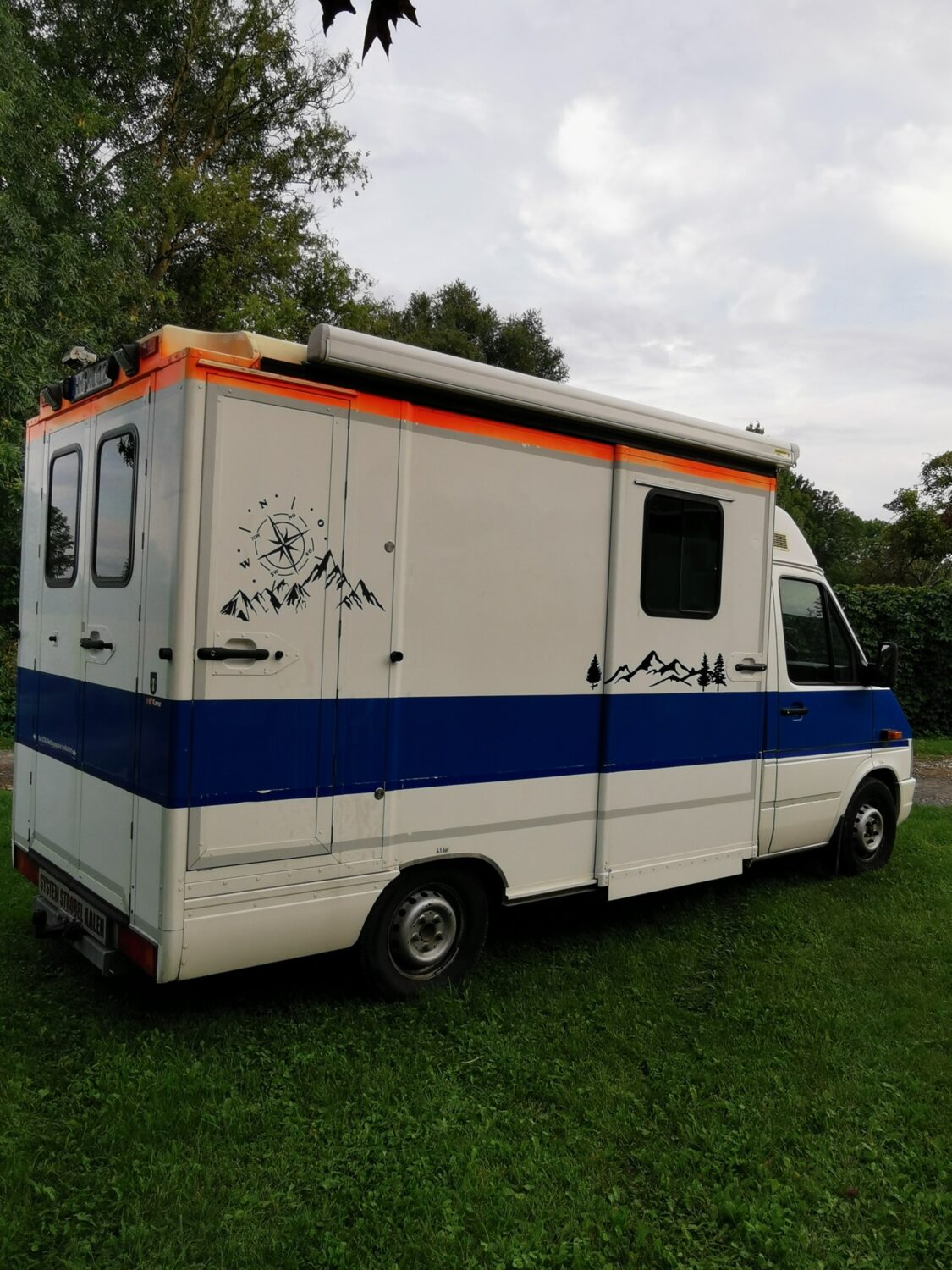 Wir haben den RTW seit 2014 Ein teil der Ausstattung aus dem RTW haben wir behalten, es wäre ja eine Schande die Profischränke weg zu schmeißen. Eingebaut haben wir eine Sitzgruppe in u form die durch eine Mittelplatte in ein 160cmX190cm großes Bett umgebaut werden kann. Einen Kühlschrank von Klarstein und eine Spüle zum abwaschen und für eine Katzenwäsche ist verbaut, eine dusche haben wir nicht dabei da wir meistens auf Campingplätzen stehen und dort duschen. Für die grobe Dusche ist eine Außendusche mit da bei. Als Toilette haben wir ein Portapotti an Bort welches bei Standzeiten im abgedunkelten Fahrerhaus zwischen den Sitzen steht , das wir mit einem Rollo abtrennen können.