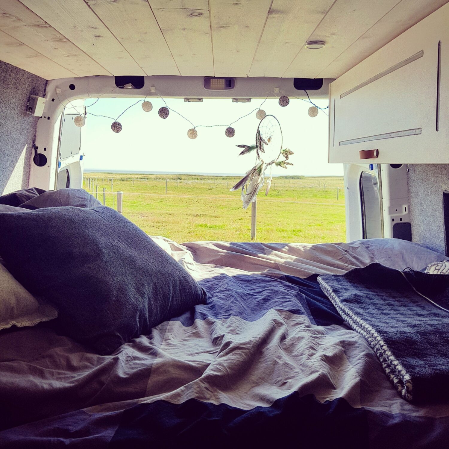 Unser Ausbau hat ein Jahr gedauert, meist in Teilzeit an den Wochenenden. Es war sehr viel Arbeit, die wir am Anfang sicherlich etwas unterschätzt haben. Beim Ausbau waren uns folgende Dinge wichtig: festes Bett, große Küche, die Möglichkeit autark zu sein, Standheizung und Stauraum. Wir haben zwei Solarpanelen a 100W auf dem Dach, somit 12V und 230V, 45l Frischwassertank im Van und dem entsprechend den passenden Abwassertank unter dem Van verbaut. Besonders stolz sind wir auf unsere Heckfenster, die wir vollständig alleine eingebaut haben. Kleines add on, wir haben im Heck eine Sitzbank eingebaut für unzählige Sundowner.