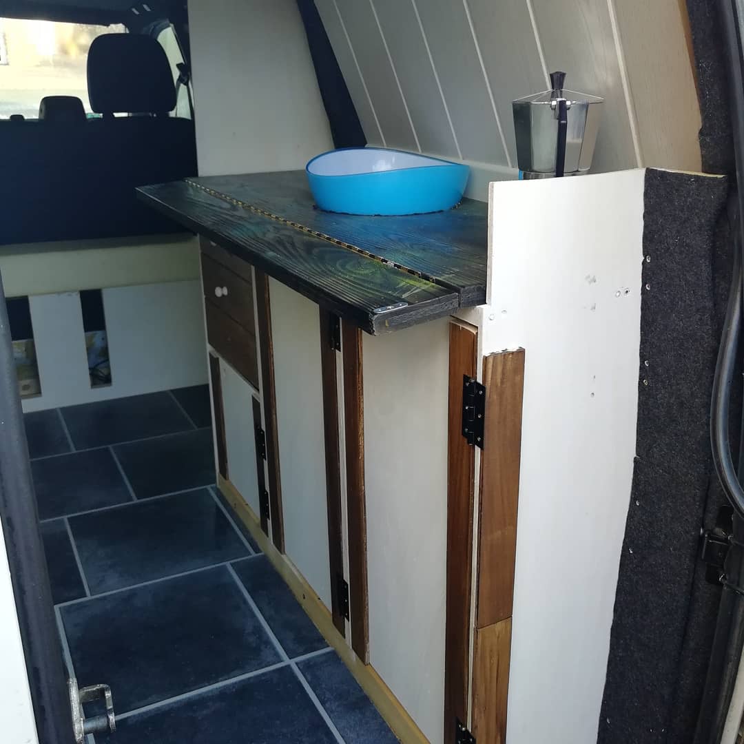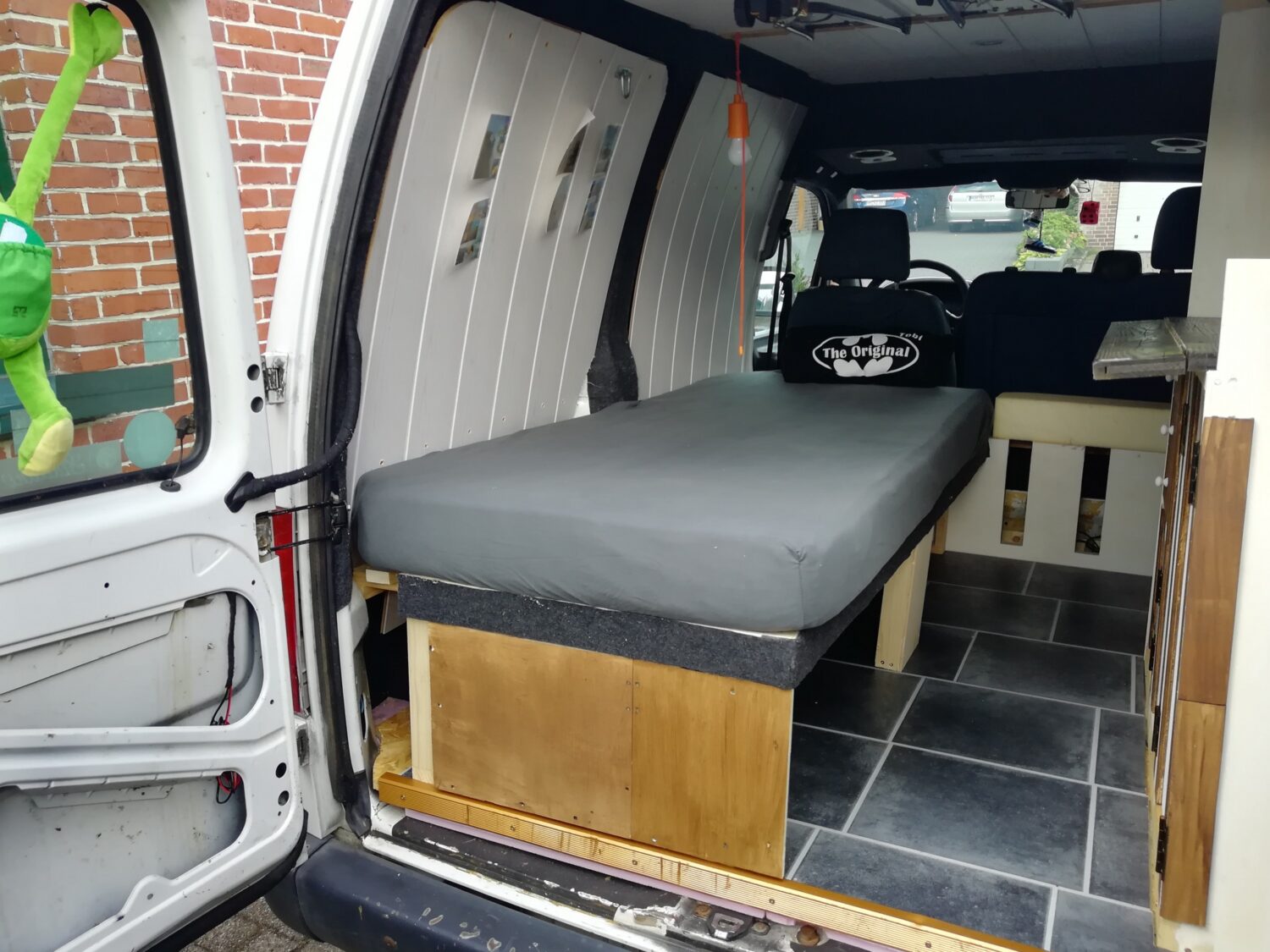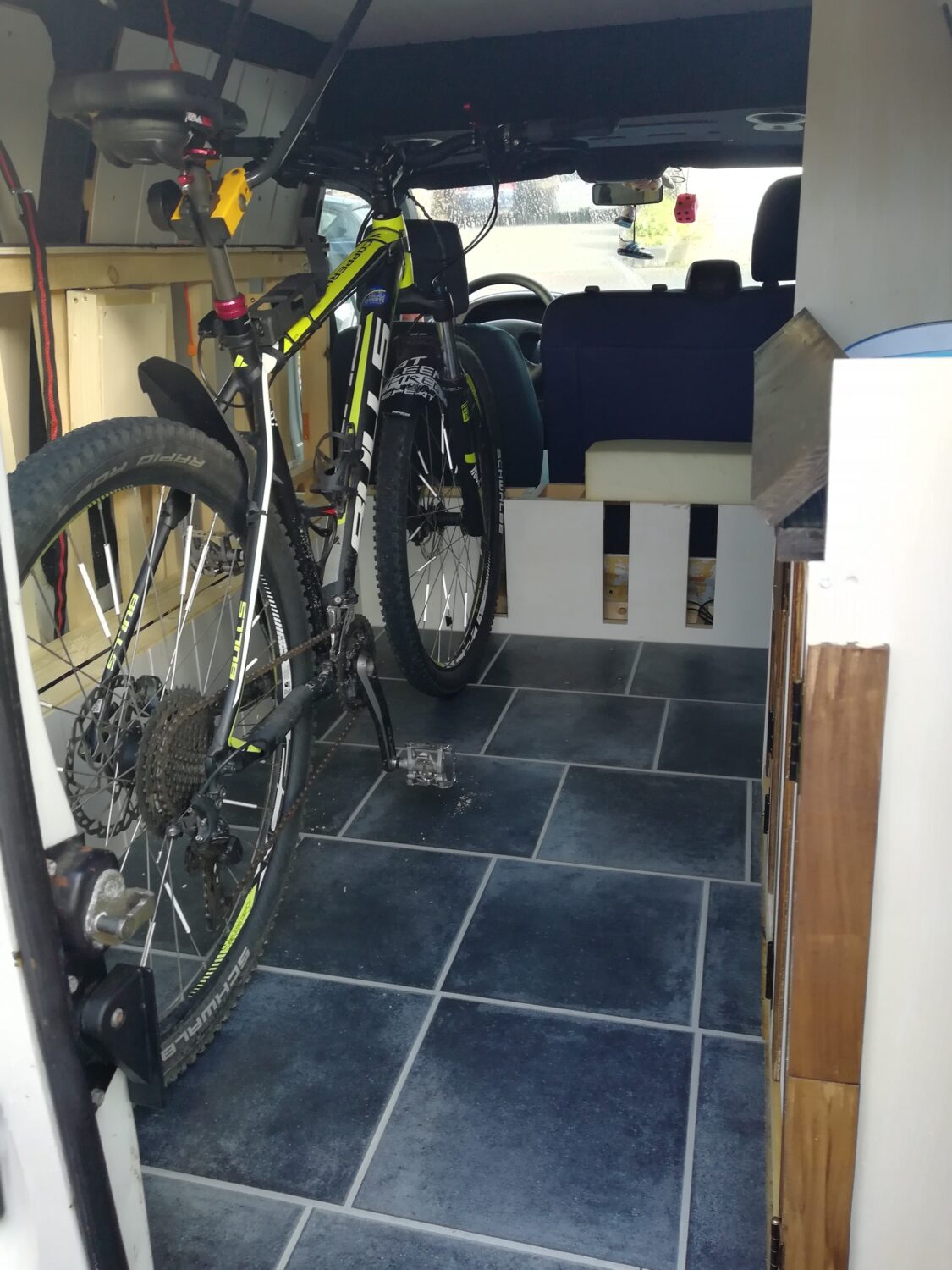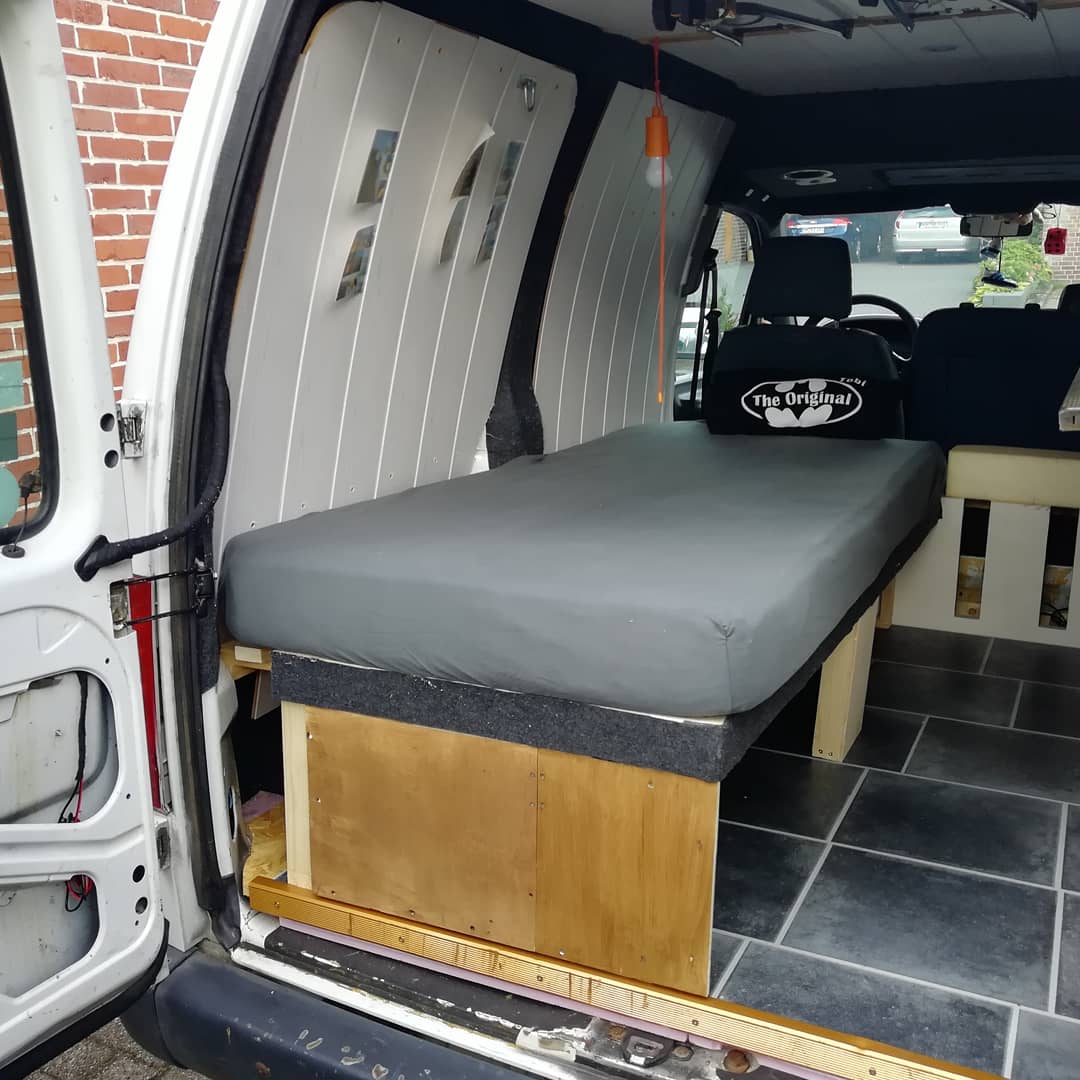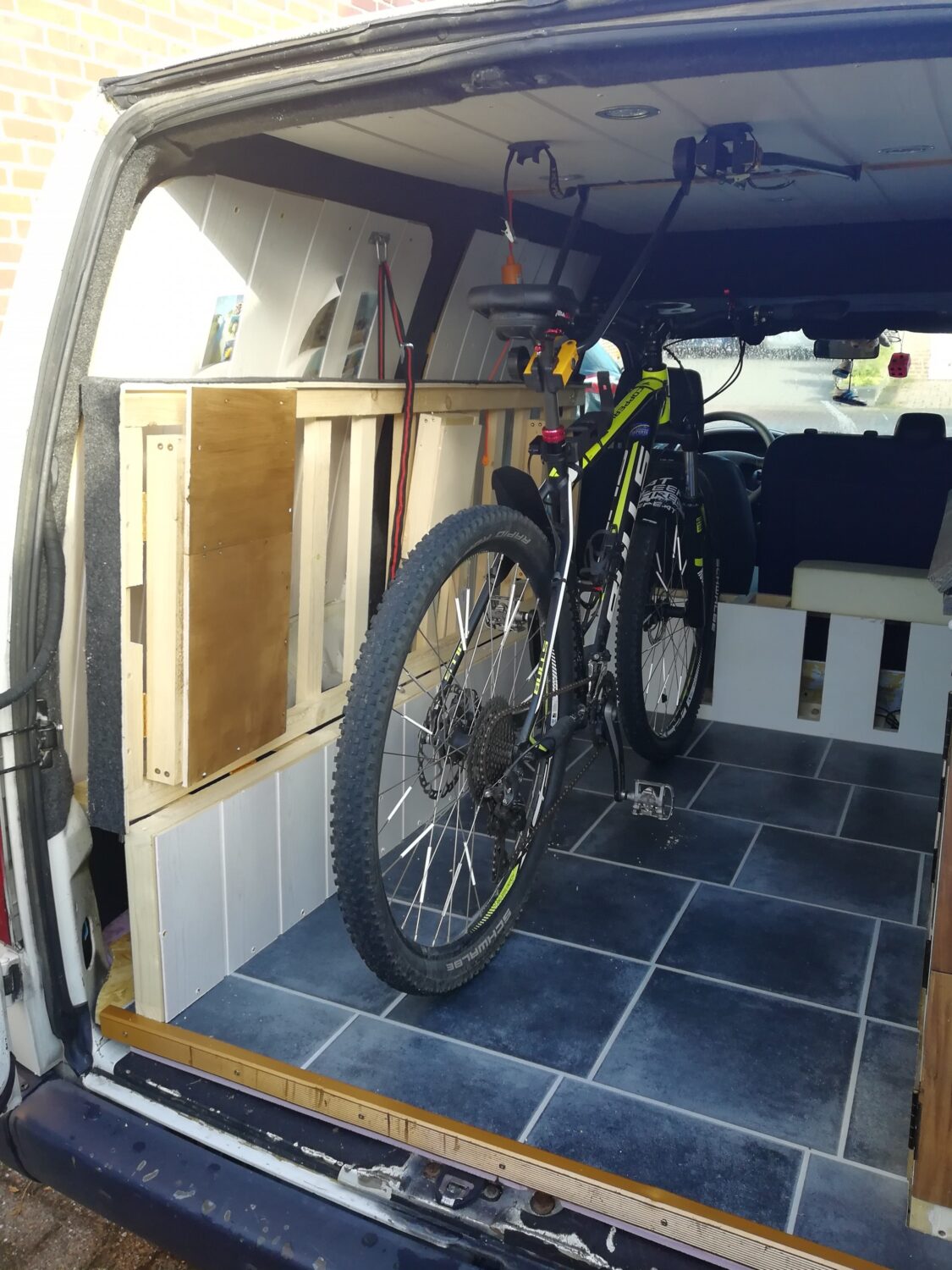 Ist derzeit noch nicht ganz fertig und ist ein Corona-Low-Budget Projekt. Der Innenausbau hat inklusive Material für Elektrik bisher keine 500 Euro gekostet. Dafür sind aber auch nur Basics verbaut da "Vanlife" hier nicht im Vordergrund stand, sondern einfach nur das die Möglichkeit besteht mehrere Mountainbikes trocken mitnehmen zu können. Einen bequemen Schlafplatz gibt es trotzdem und ein kleiner Küchenblock ist auch mit eingezogen.