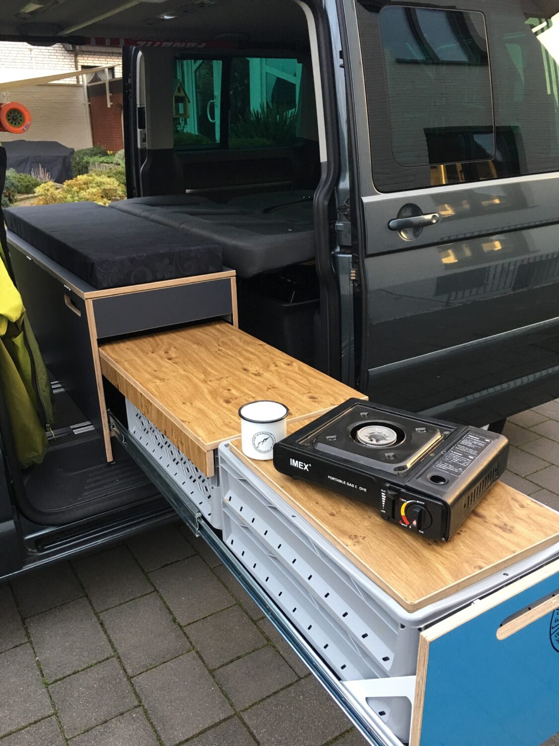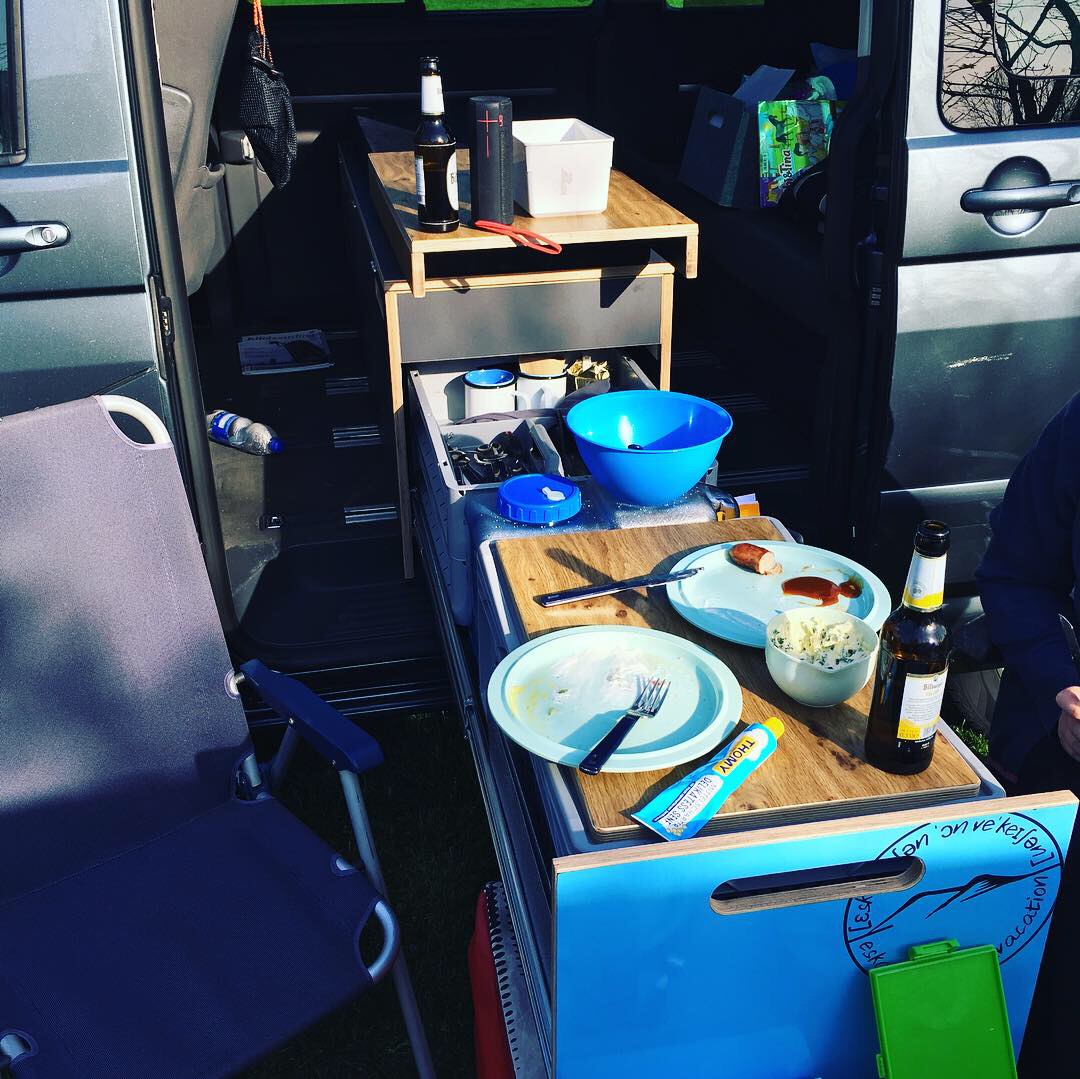 Umgebaut um zu zweit auch gut ohne Caravan zu übernachten...