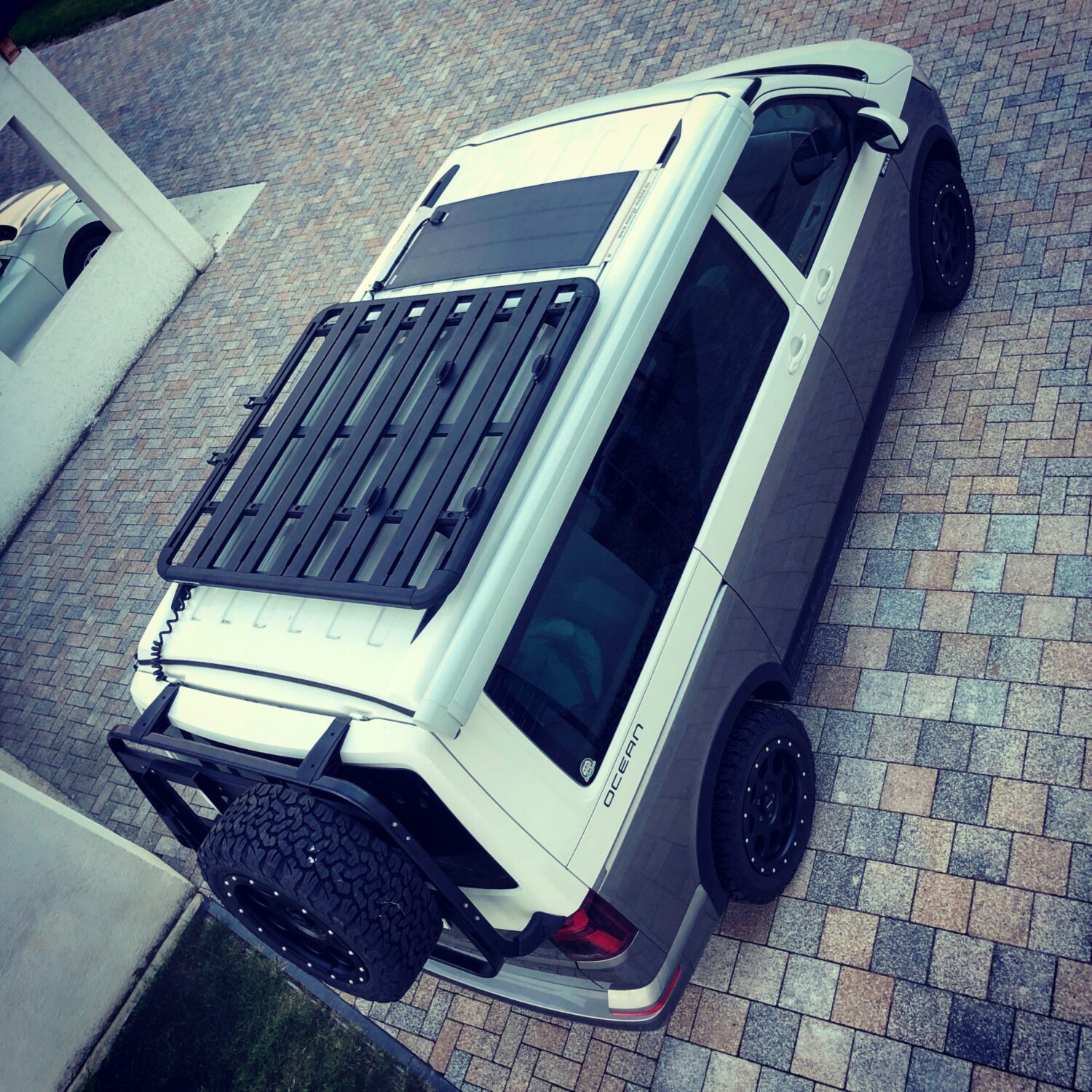 Ist ein California Ocean mit vielen Extras aussen wie Innen. Innen: - Schubladen Erweiterung - Dickere Matratze Oben - Regale im Schrank - Teppich - Heckauszug Aussen: - Höherlegung Seikel Dessert HD mit Kong - Delta4x4 Felgen mit BF Godrich KO2 - Bergeösen Vorne und Hinten - Folierung im Unteren Bereich (Schwarz) - Dachträger - Heckträger für Kanister und Ersatzrad. - Unterbodenschutz aus 6mm Alu - 95 W Solar - T6.1 LED Rückleuchten in Dunkel - Alles Chrom schwarz Coming soon: - Getriebe Untersetzung - Schnorchel .... :-)