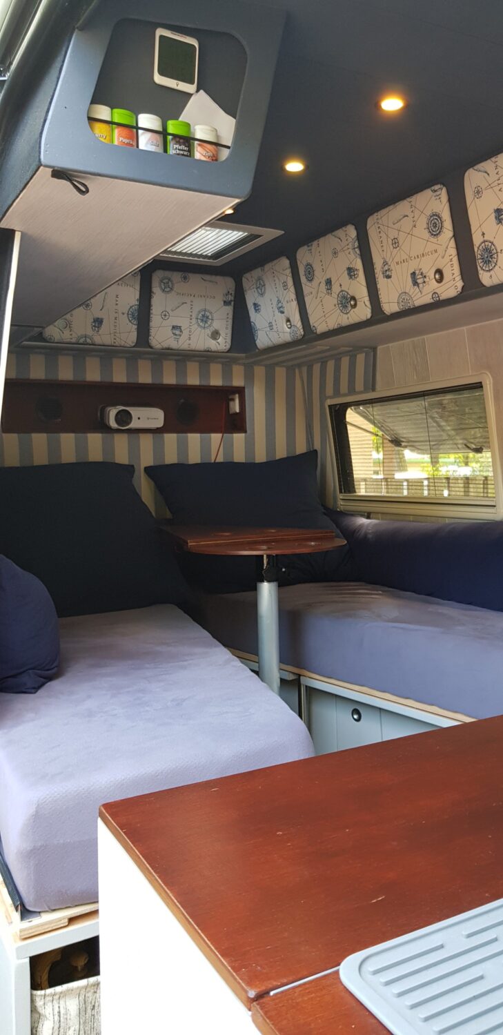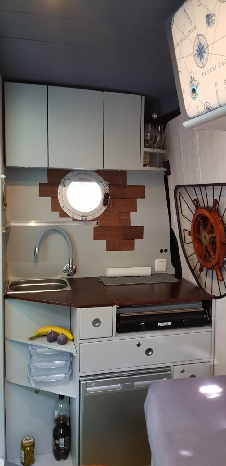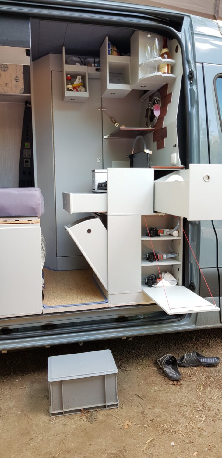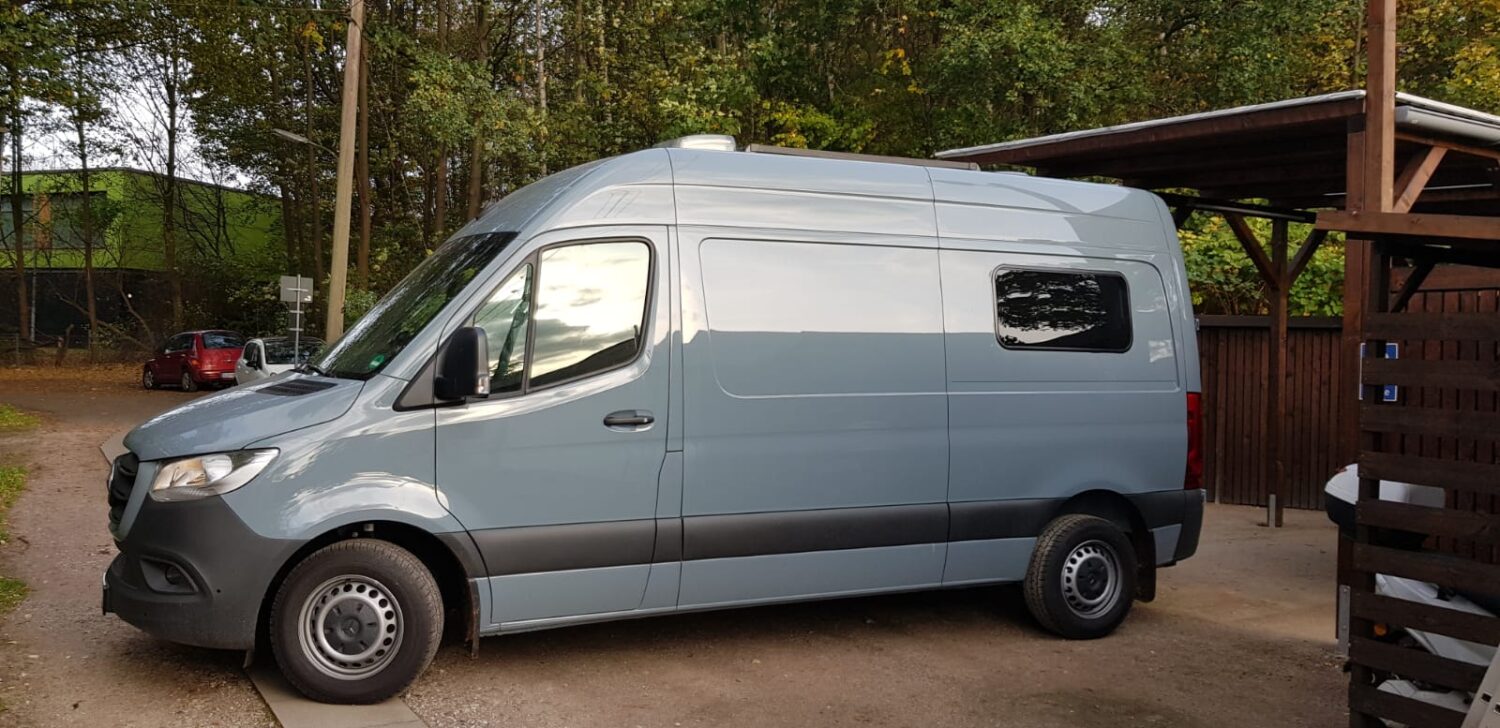 Wir haben uns einen neuen Sprinter geholt und 7 Monate lang jede freie Sekunde den Ausbau umgesetzt. Zum Glück stand der Plan bereits beim Kauf bis ins letzte Detail. 80L Frischwasser, 57L Grauwasser, 300 Watt Solar, 400 Ah Batterien... ergo 3 Tage autark stehen ist kein Problem. Besonders stolz sind wir auf jedes einzelne Detail. Zum Bespiel: das Bad ist gleichzeitig ein Schrank, wenn wir fest stehen; der Beamer mit 1,40m Leinwand; das riesige Bett (1,78x 1,95)... usw. :)