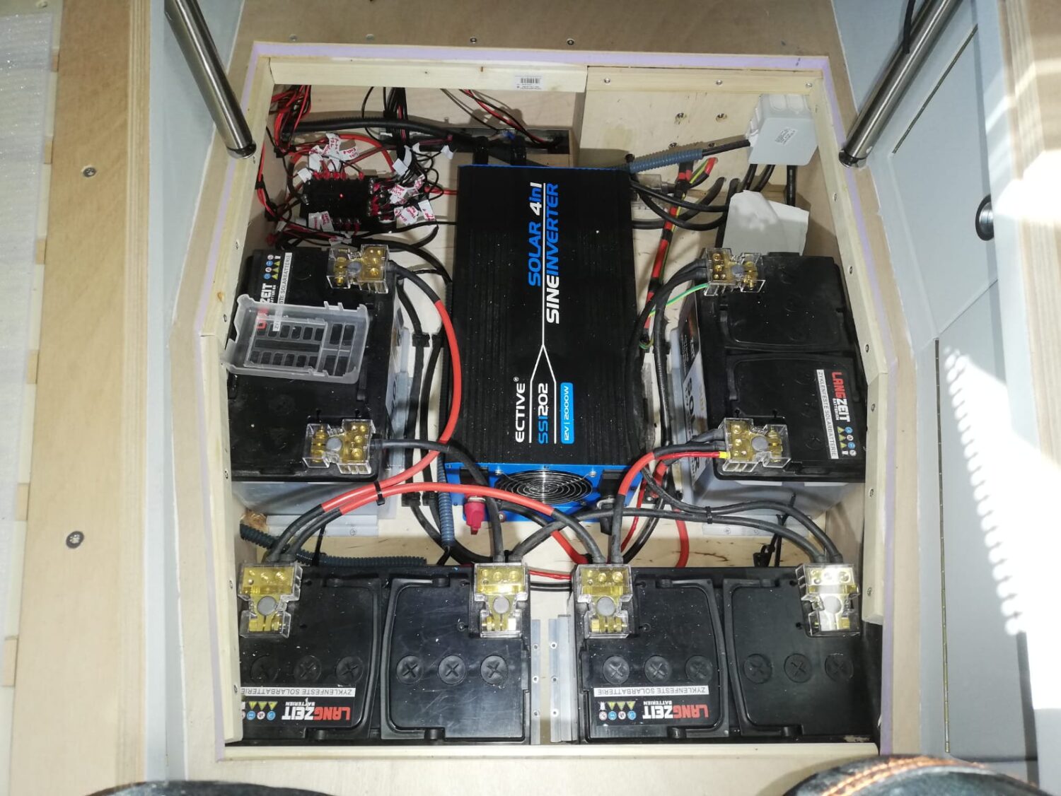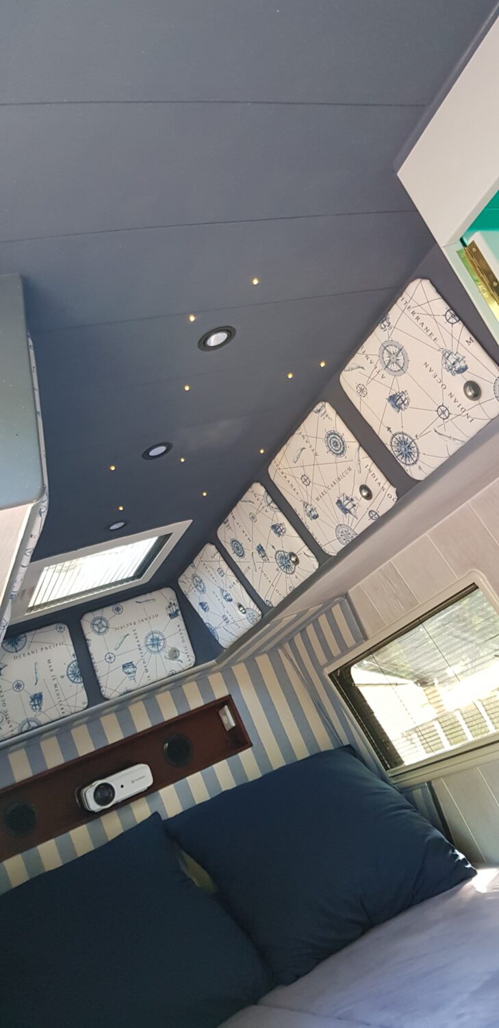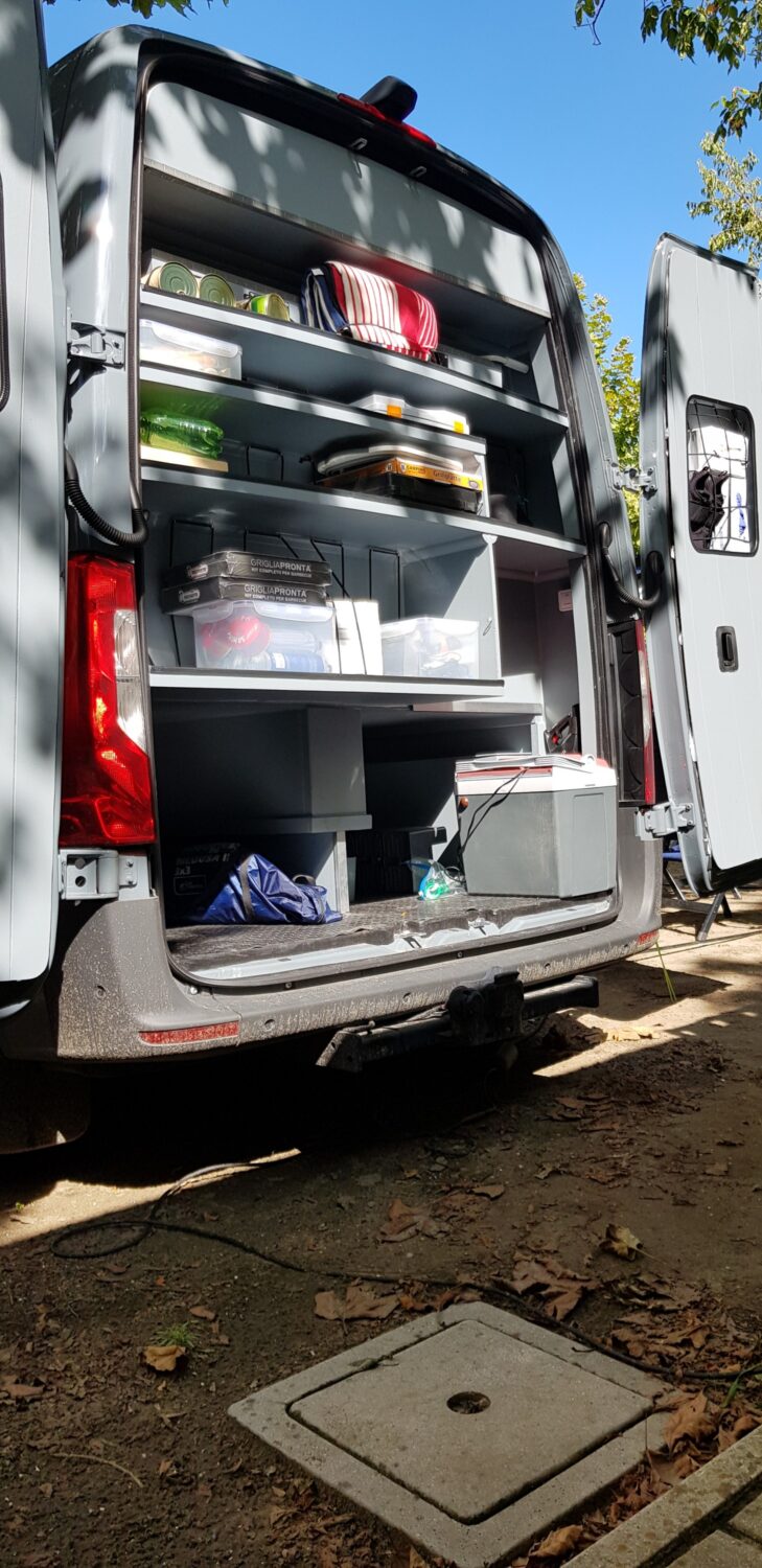 Wir haben uns einen neuen Sprinter geholt und 7 Monate lang jede freie Sekunde den Ausbau umgesetzt. Zum Glück stand der Plan bereits beim Kauf bis ins letzte Detail. 80L Frischwasser, 57L Grauwasser, 300 Watt Solar, 400 Ah Batterien... ergo 3 Tage autark stehen ist kein Problem. Besonders stolz sind wir auf jedes einzelne Detail. Zum Bespiel: das Bad ist gleichzeitig ein Schrank, wenn wir fest stehen; der Beamer mit 1,40m Leinwand; das riesige Bett (1,78x 1,95)... usw. :)